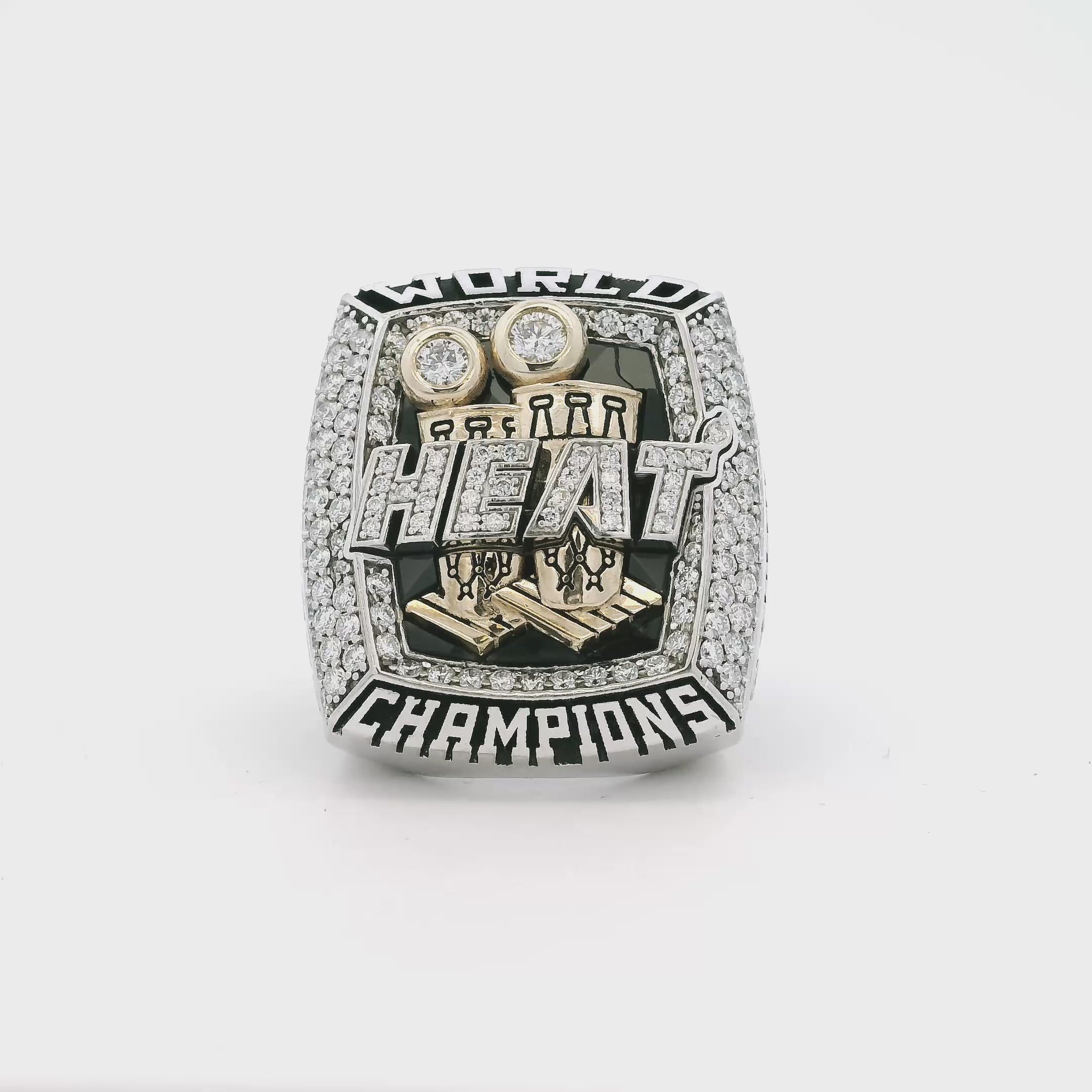 • Championship ring with 'HEAT' and 'CHAMPIONS' text on a white background