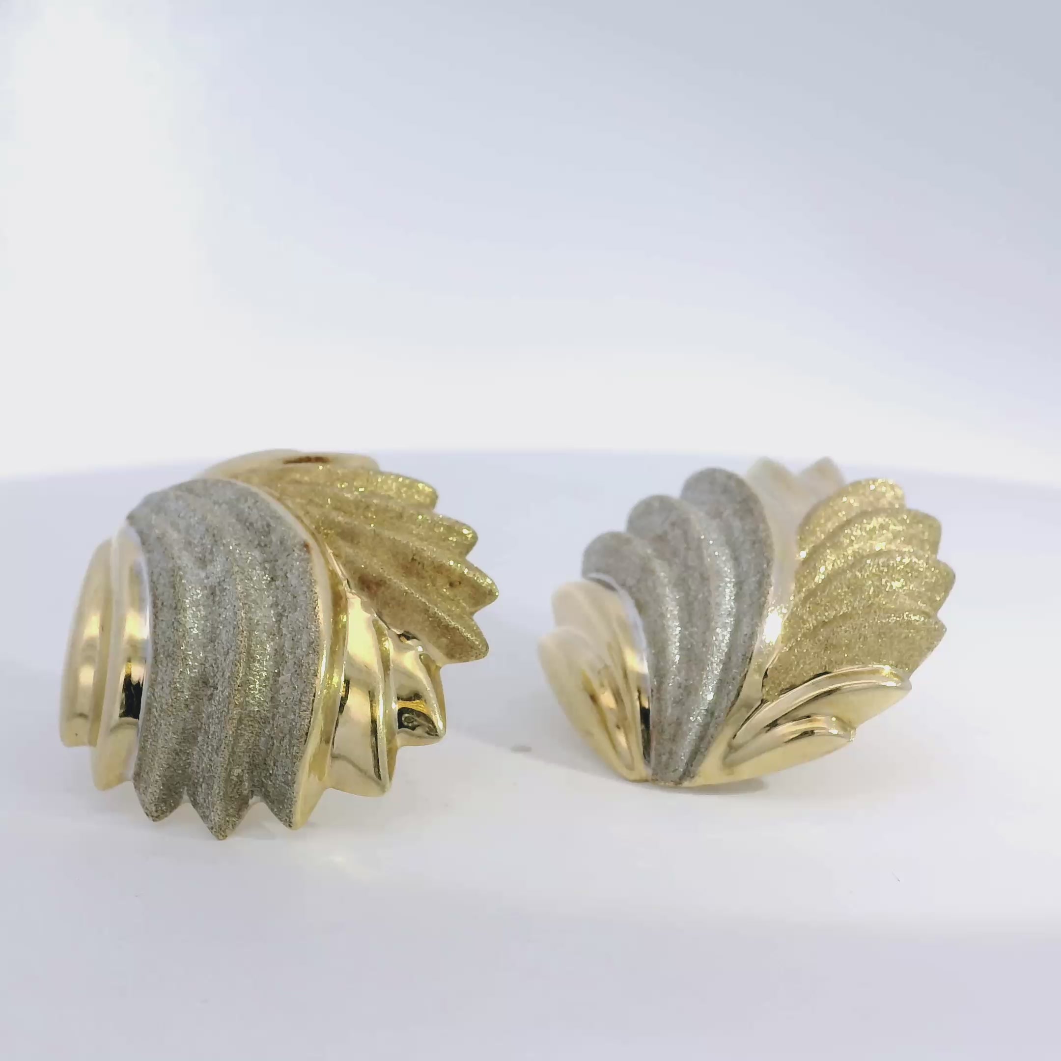 14k Yellow Gold Shell Earrings with Brushed Silver and Gold