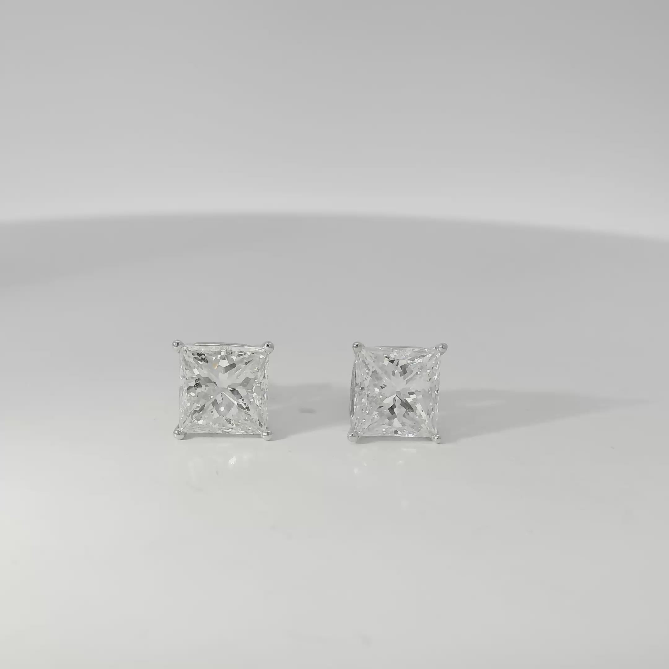 14k White Gold 4.88ctw GIA Certified Natural Princess Cut Diamond Earring Studs