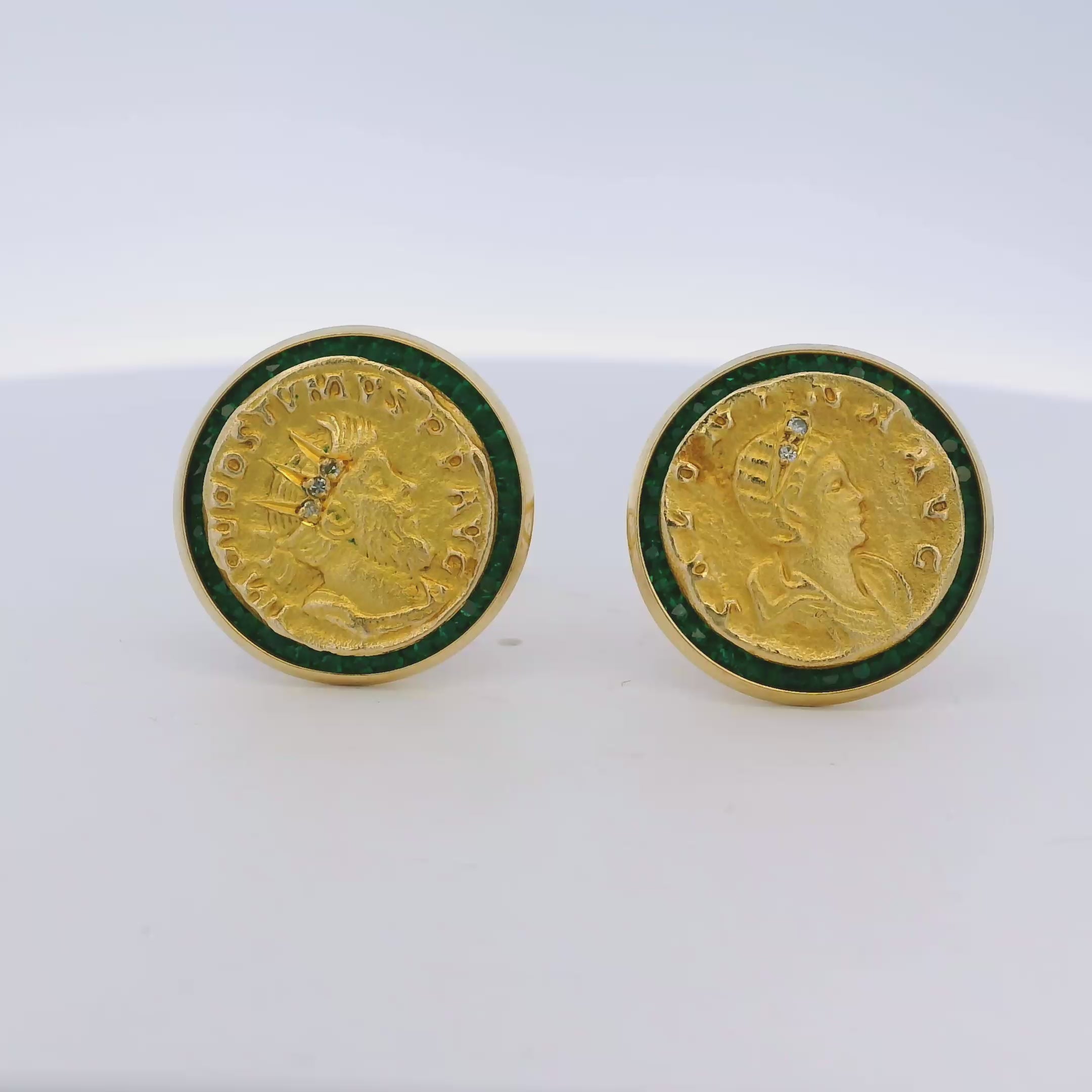 • 14k Yellow Gold and Emerald Coin Cufflinks
