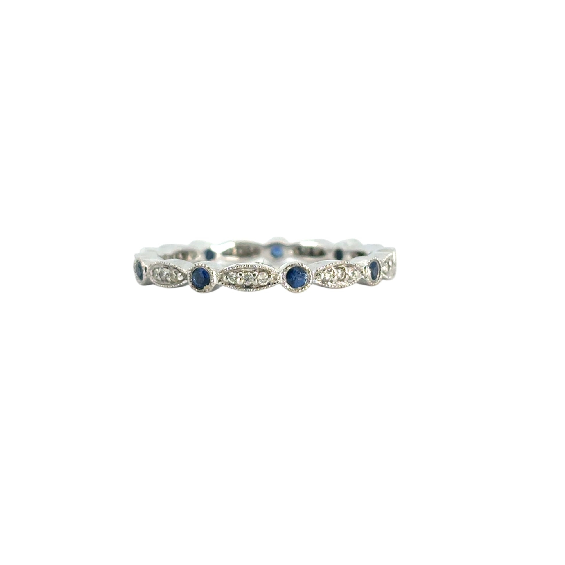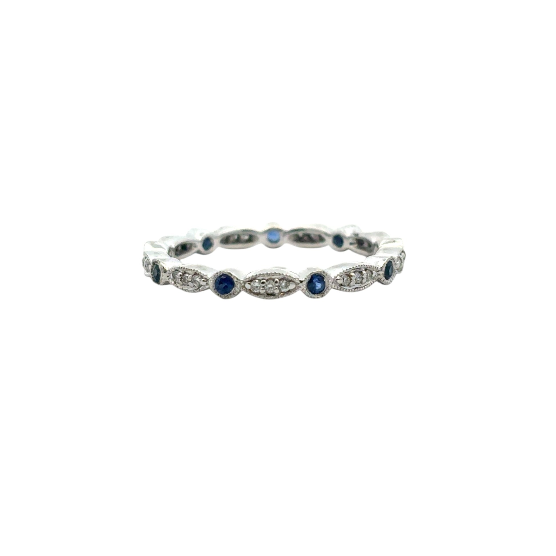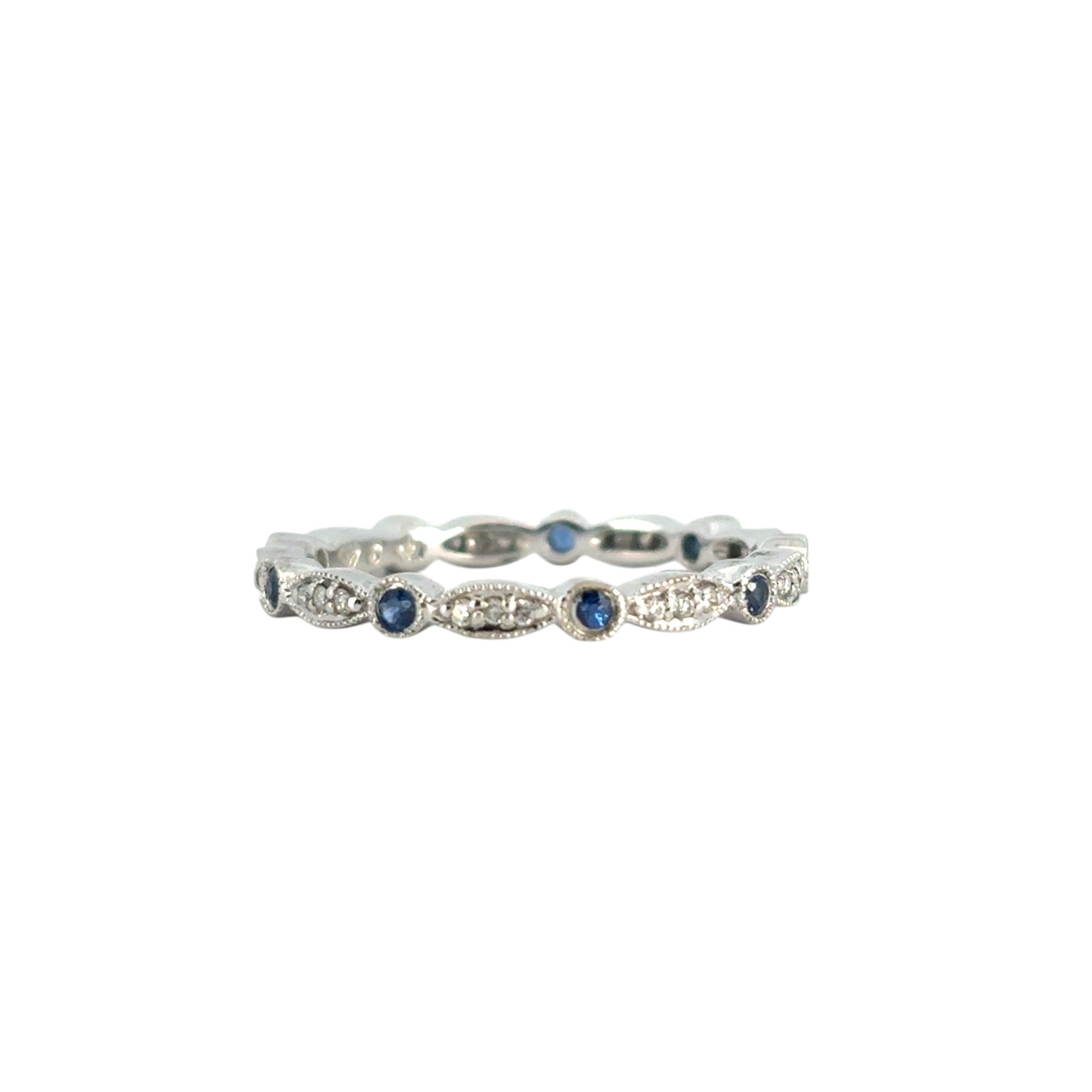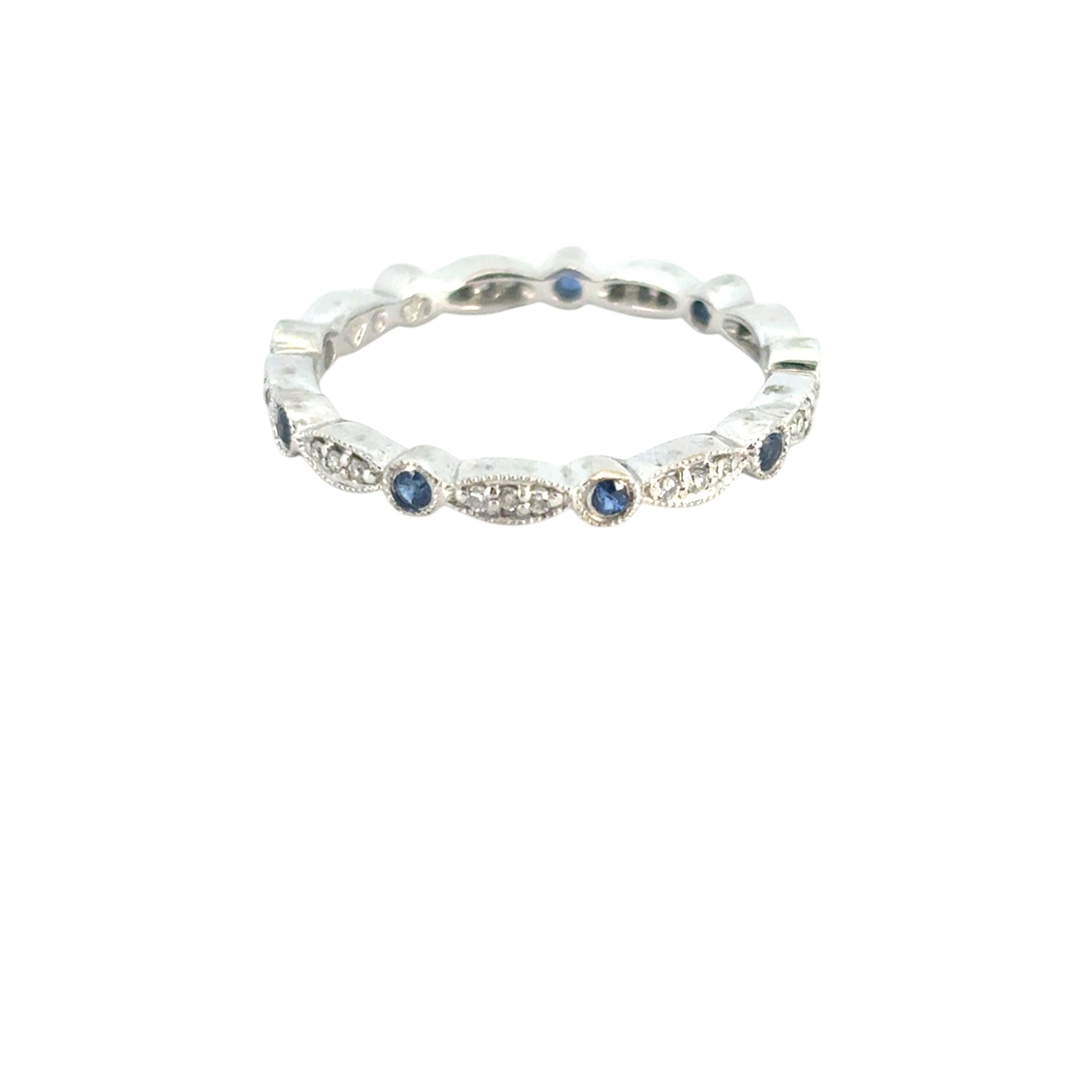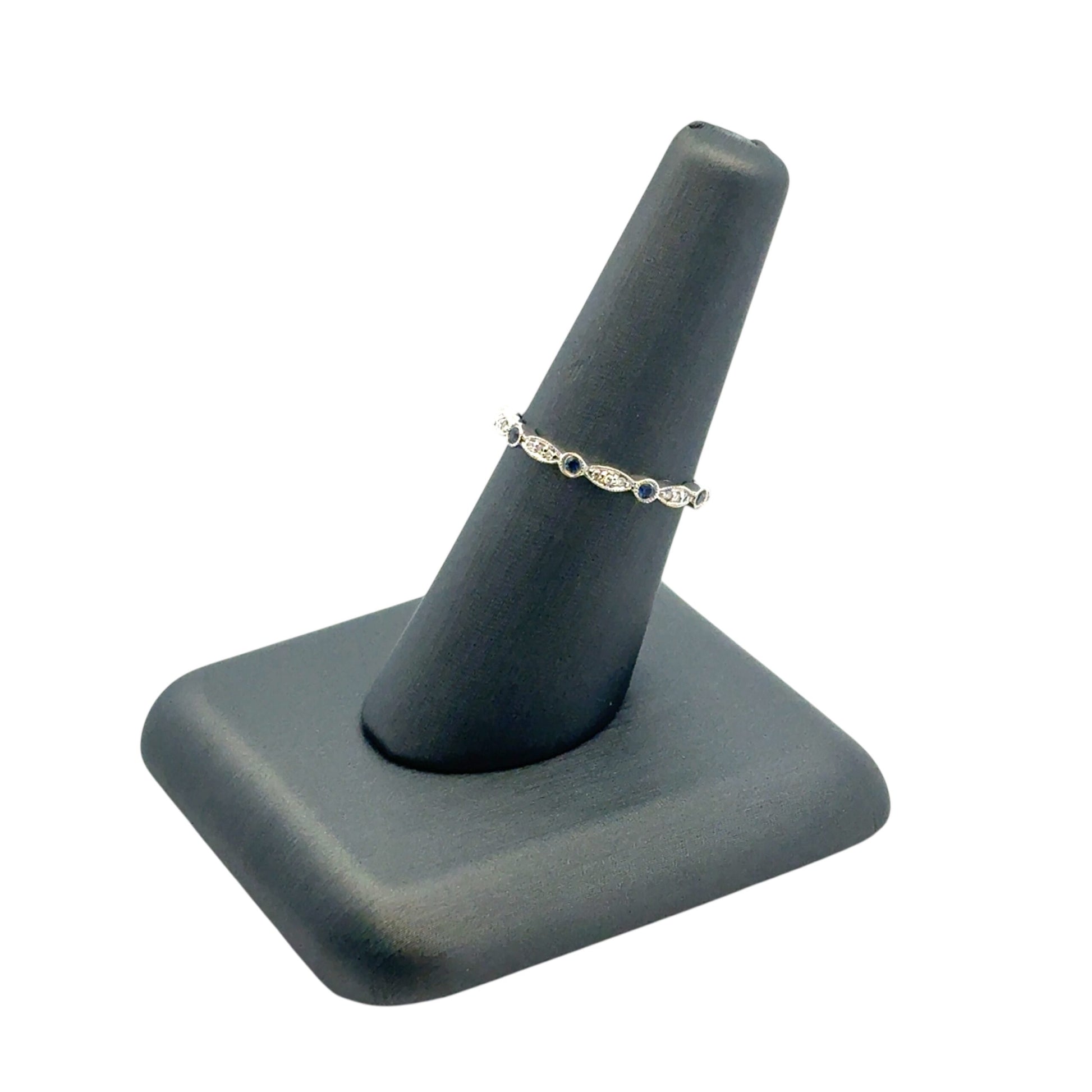 14k White Gold Stackable Blue Sapphire and Diamond Ring