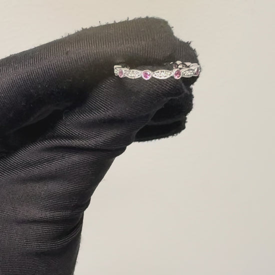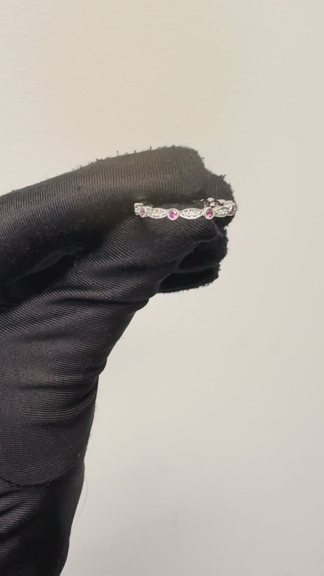 Add a pop of color and a touch of elegance to your jewelry collection with this 14k white gold stackable ring, designed for effortless layering or stunning solo wear.
