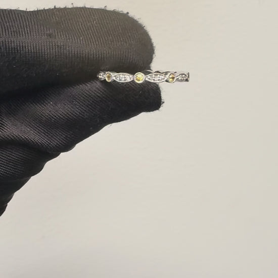 14k White Gold Stackable Yellow Sapphire and Diamond Ring