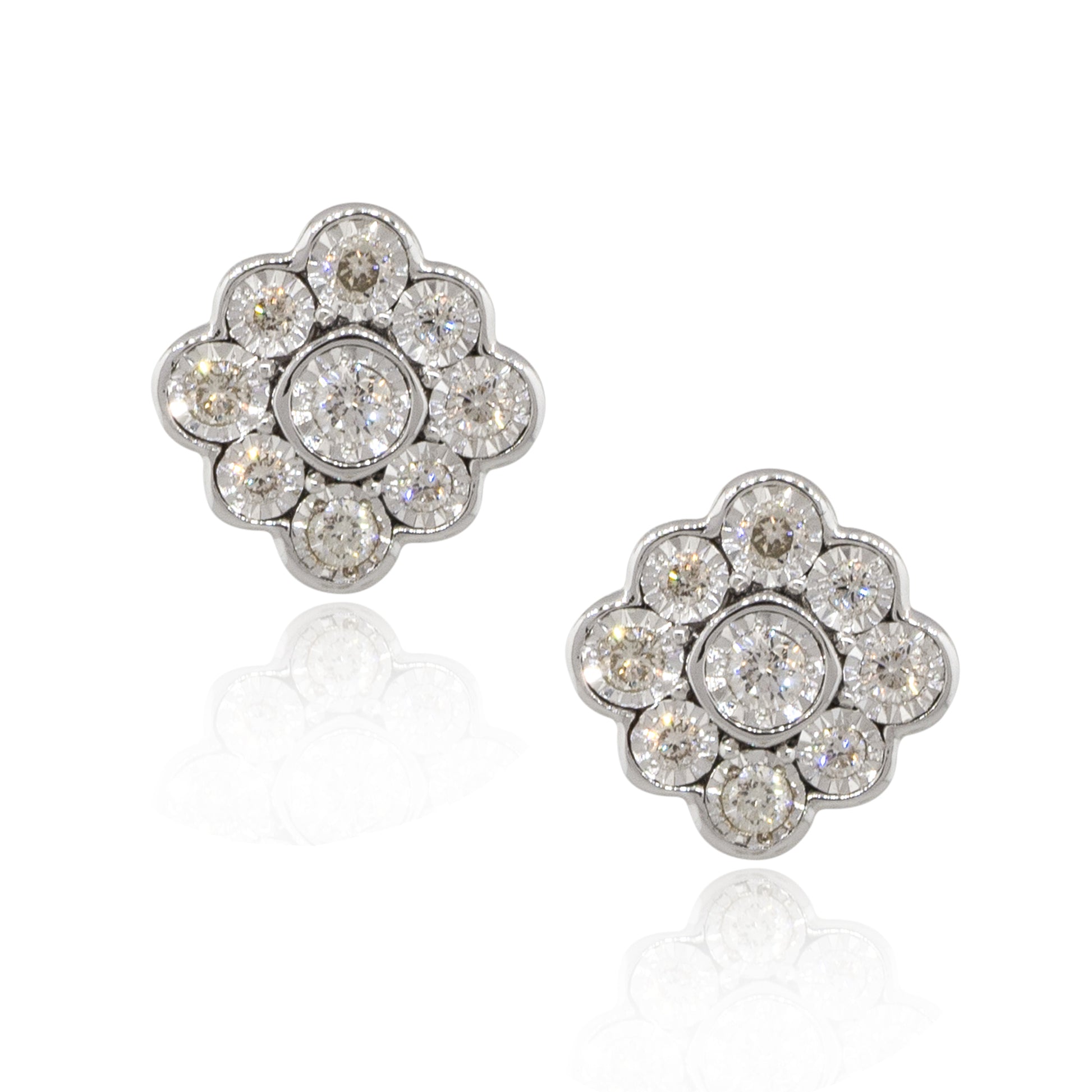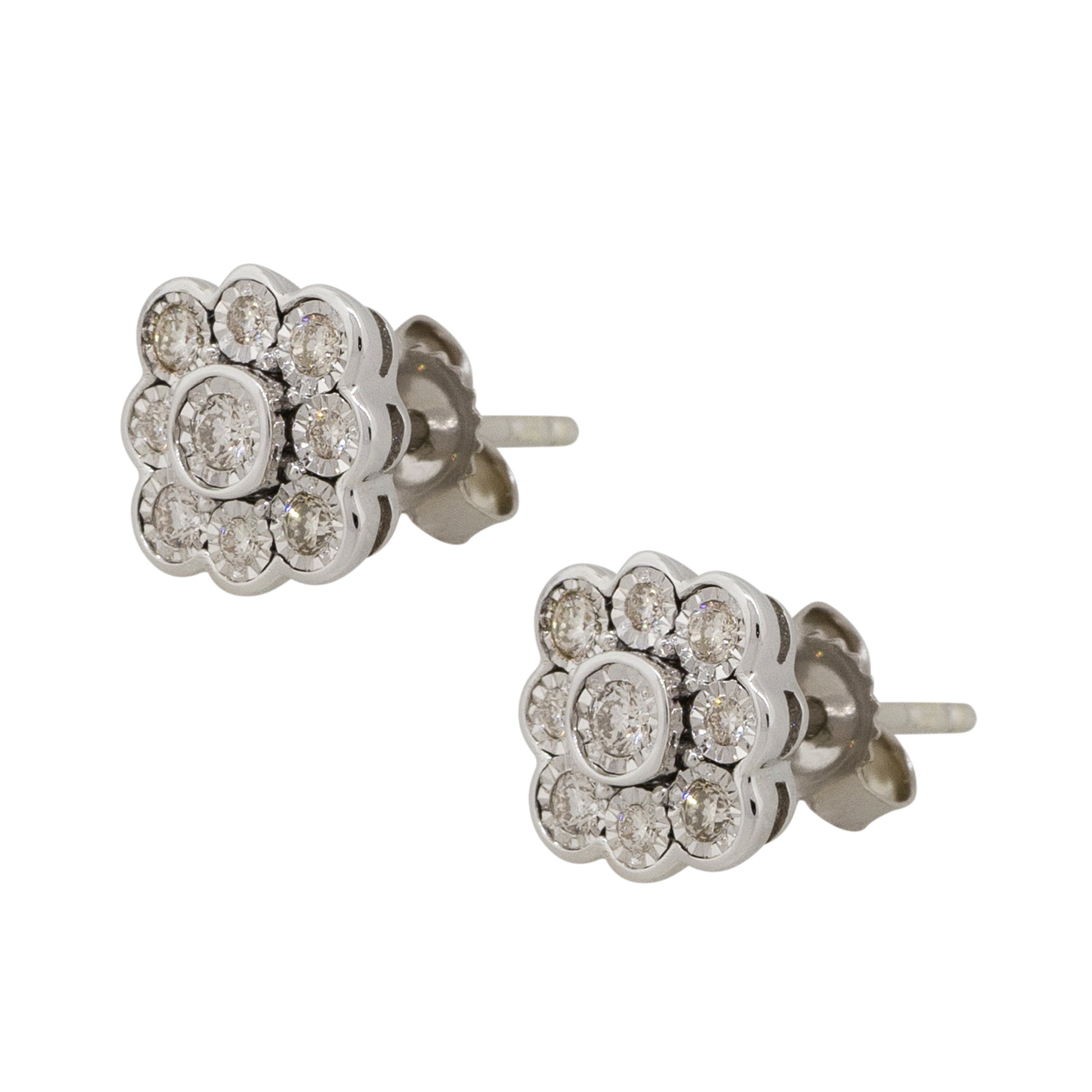 14k White Gold 0.25ctw Round Diamond Floral Stud Earrings