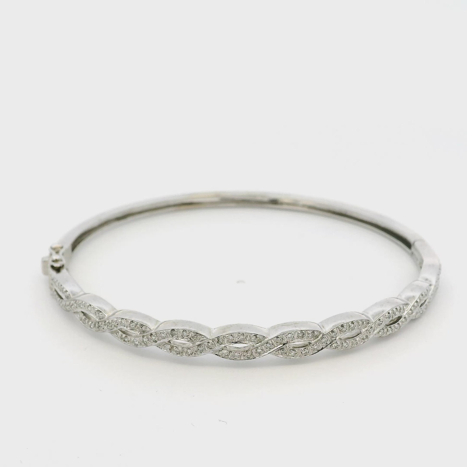 This vibrant 0.85ctw Twisted Diamond Bangle is in excellent condition and ready to ship!