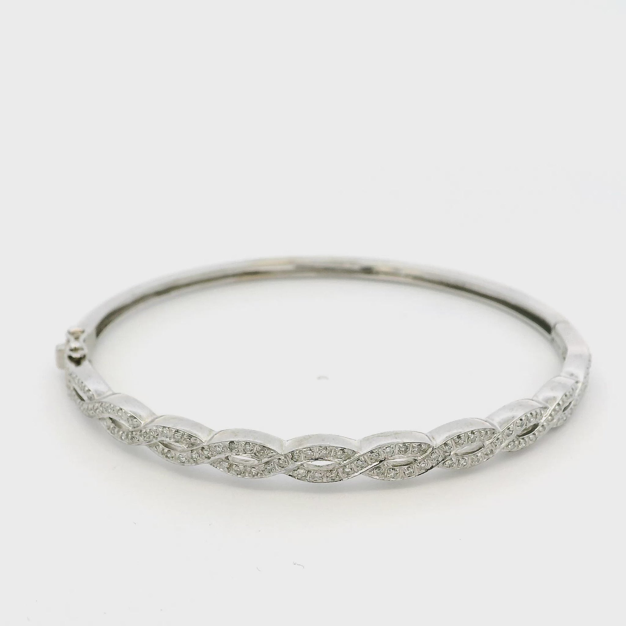 14k White Gold 0.85ctw Twisted Style Diamond Bangle Bracelet