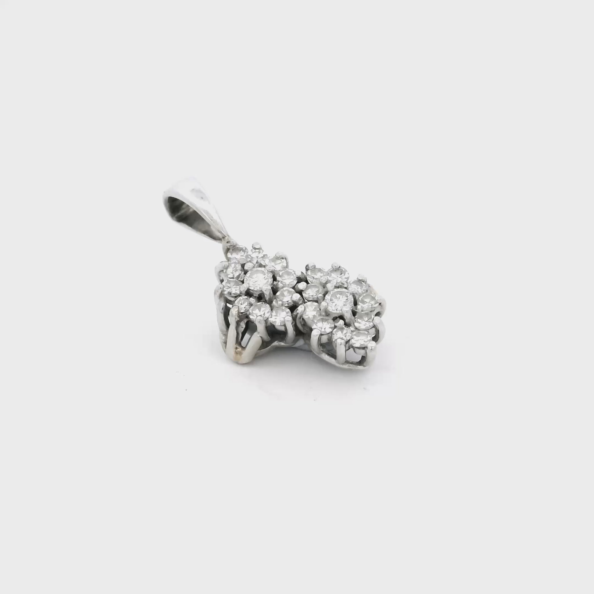 14k White Gold 0.88ctw Diamond Two Flowers Pendant