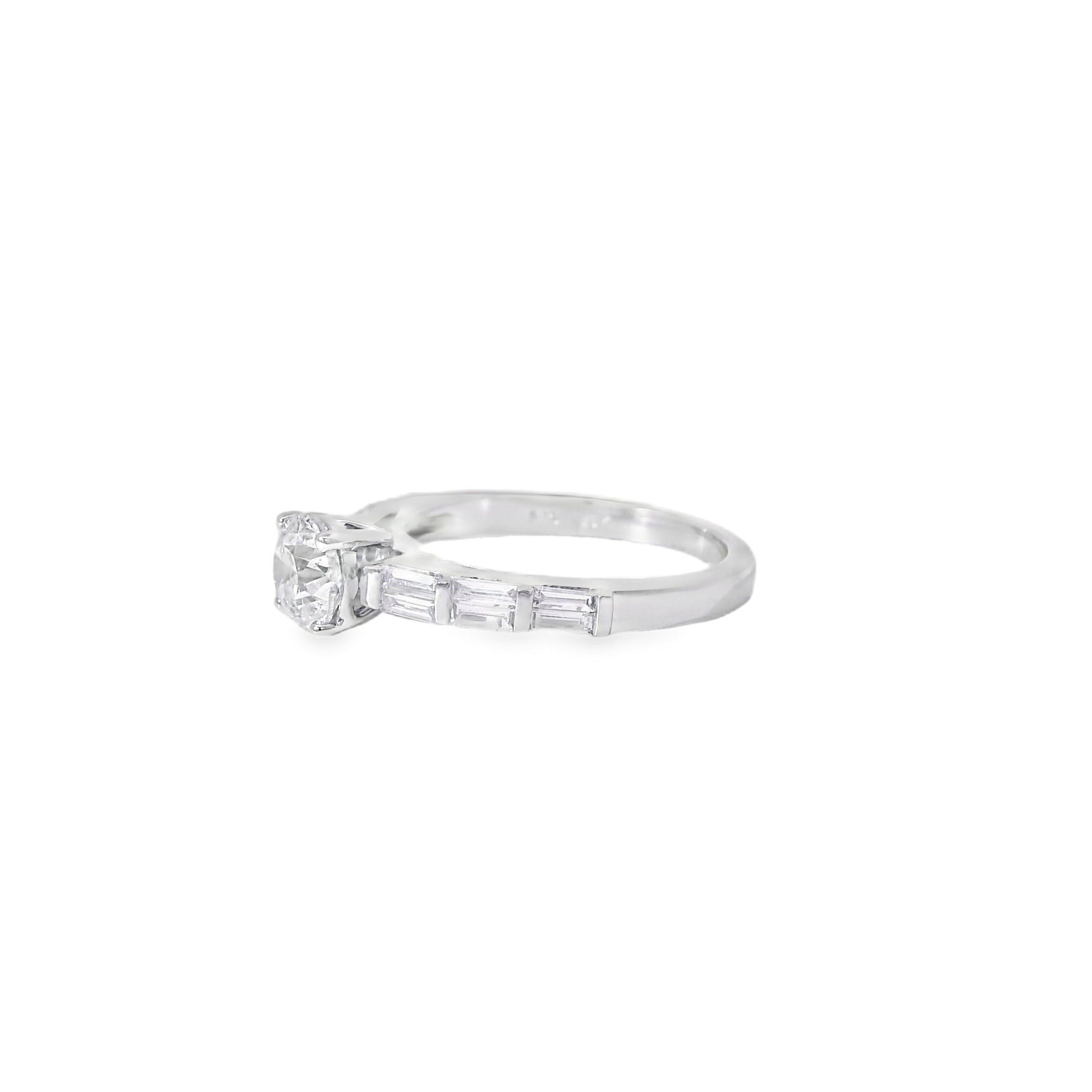 14k White gold 0.93ctw Baguette Cut accented by 1.01ctw Round Brilliant Diamond Ring