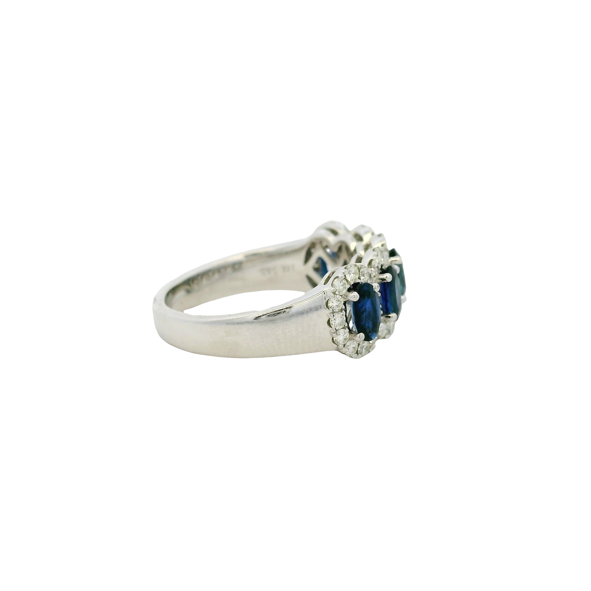14k White Gold 1.54ctw Oval Sapphires with 0.57ctw Pave Diamonds Ring