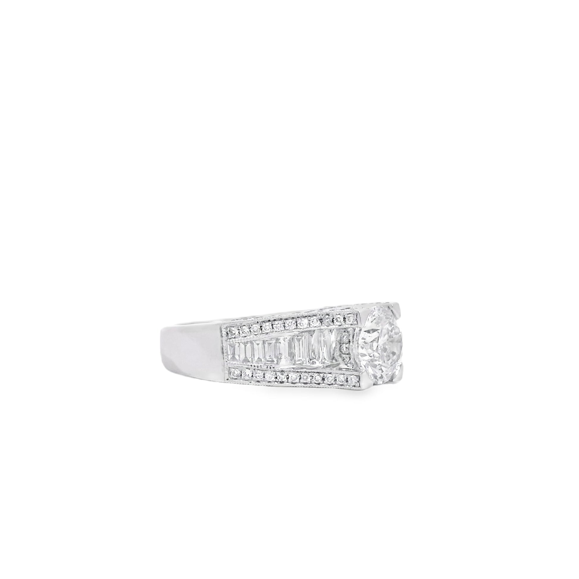 14k White Gold 1.67ct Round Brilliant and Baguette Diamond Engagement Ring