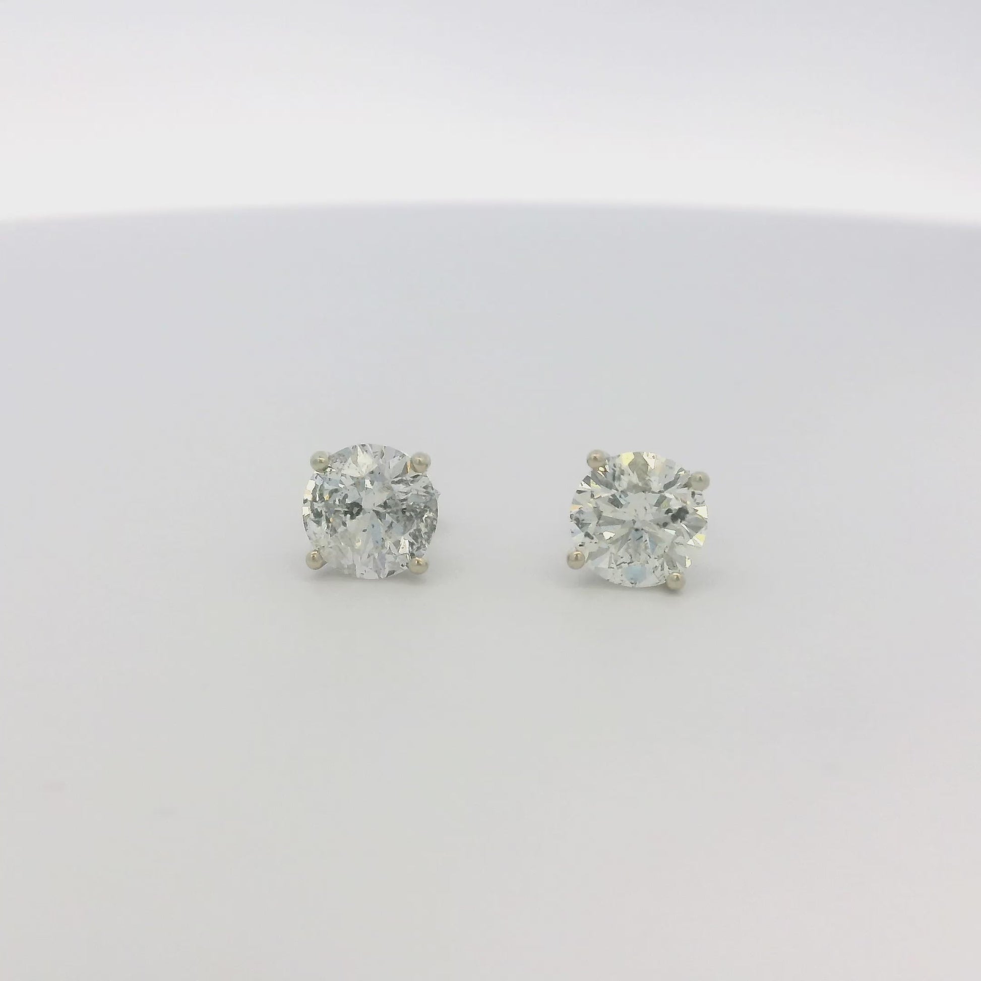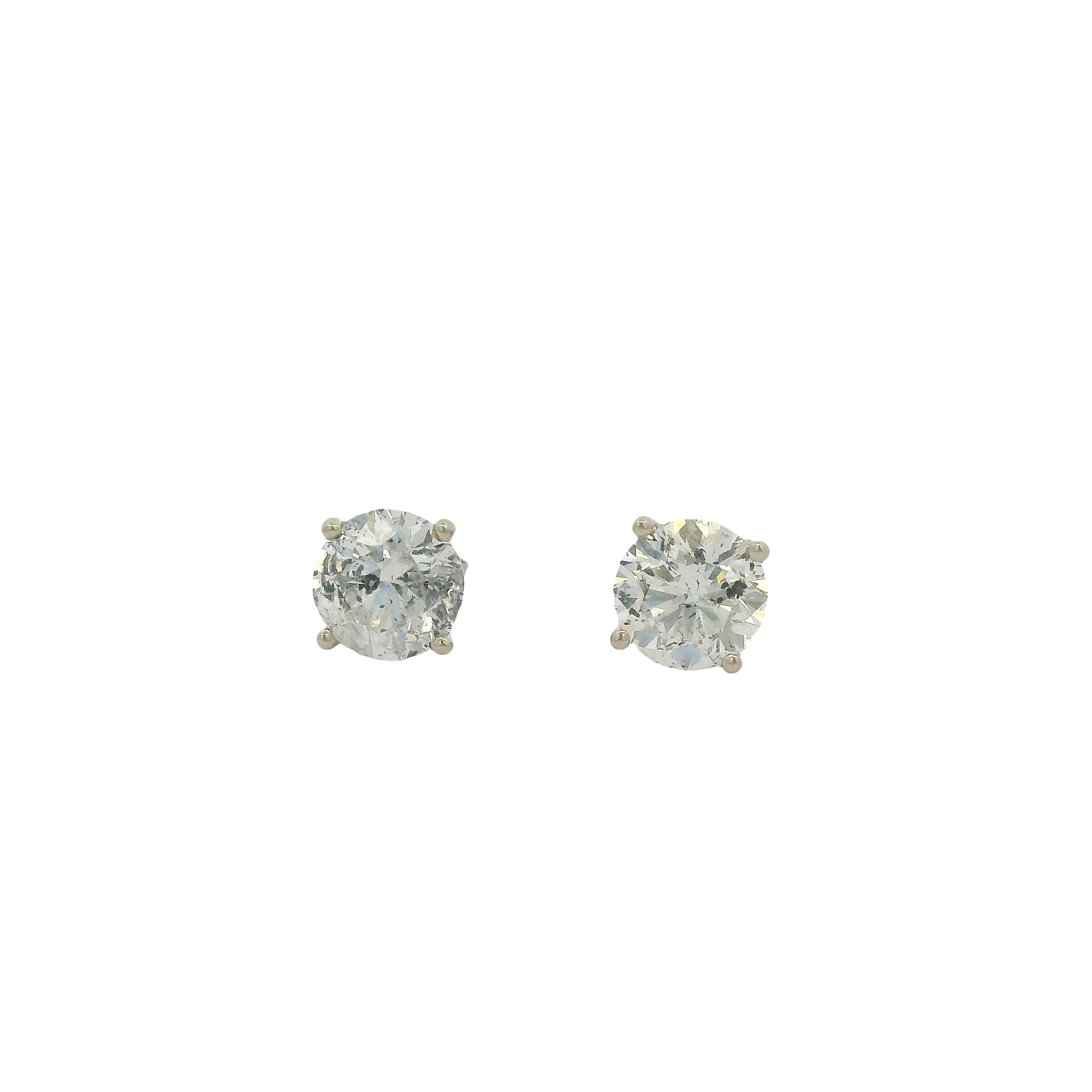 Add a touch of refined elegance to your collection with these timeless 14k White Gold Diamond Stud Earrings. Featuring two dazzling natural round brilliant diamonds totaling approximately 1.94 carats, these studs deliver sophisticated sparkle with exceptional fire and brilliance.