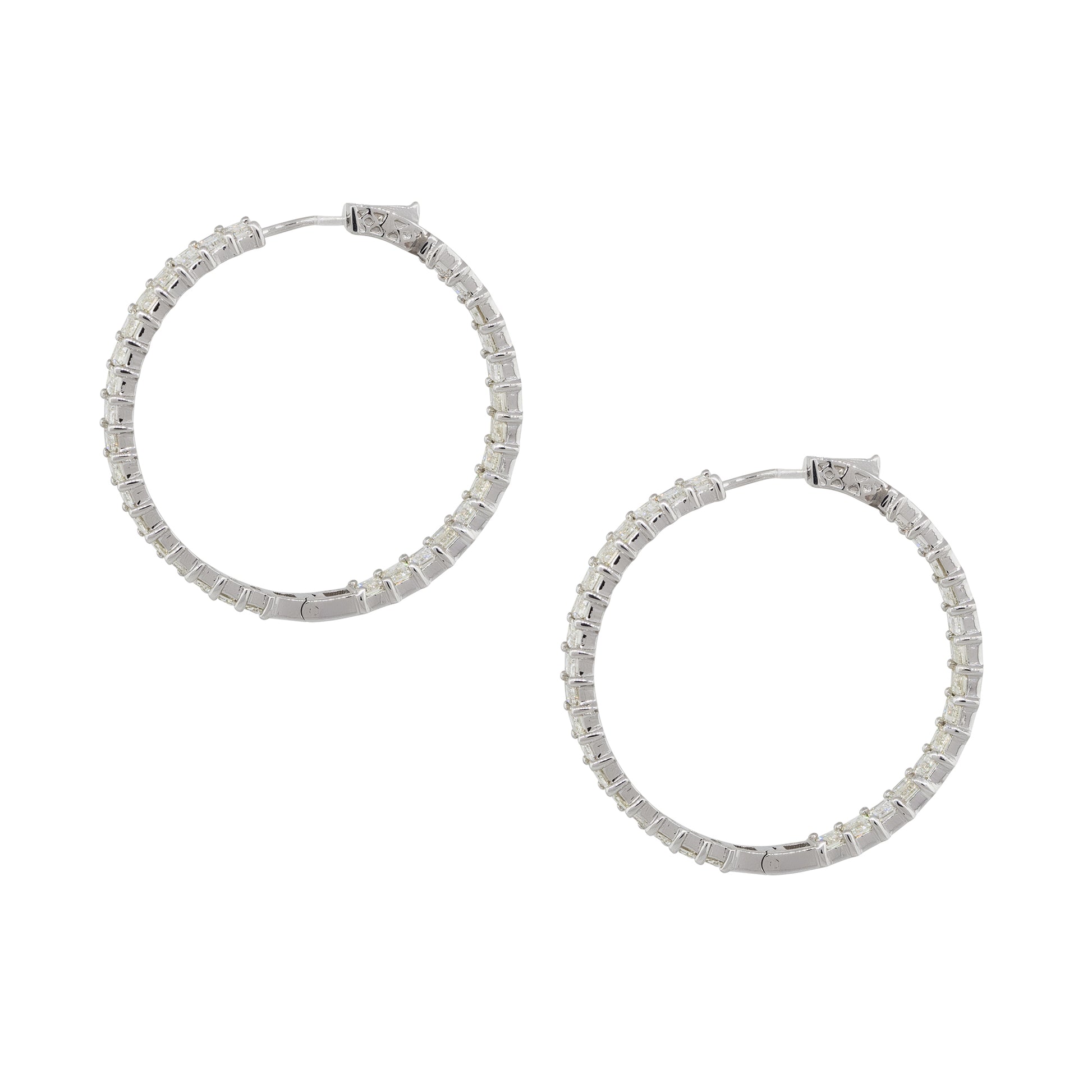 Stunning Sparkle – 14k White Gold 11.75ctw Baguette Diamond Inside Out Hoops