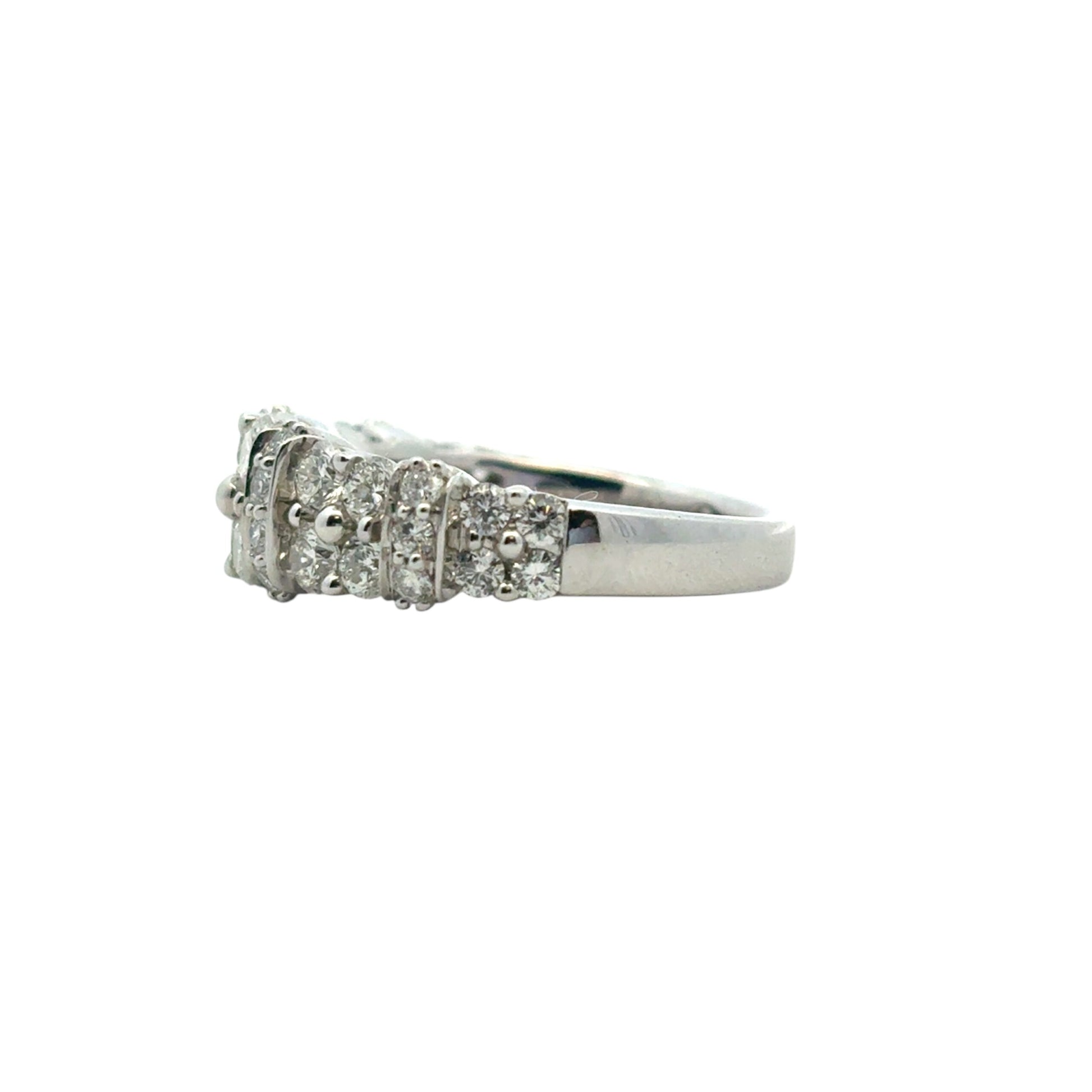 Turn heads and capture hearts with this stunning 14k White Gold 2 Row Diamond Ring, a luxurious statement of timeless beauty and modern sophistication. Crafted from luminous white gold and adorned with approximately 1.43 carats of natural round diamonds, this ring delivers radiant sparkle with every movement.