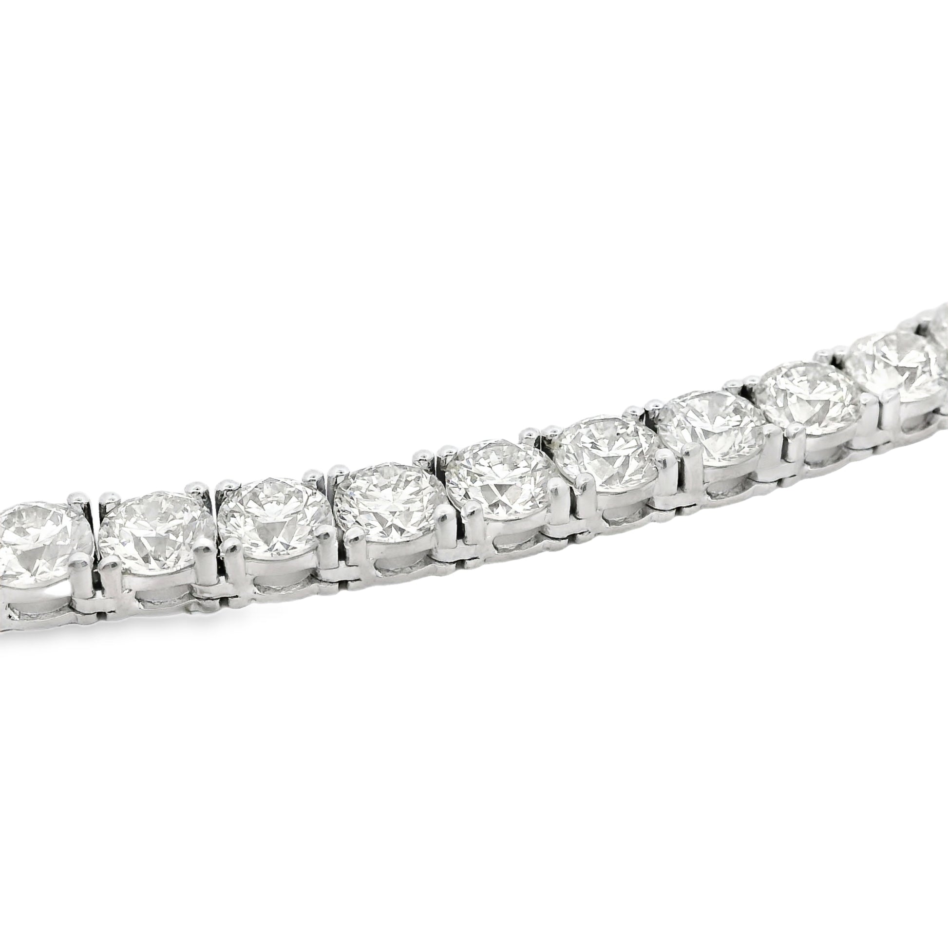 The diamonds are beautifully matched and graded G to H in color with VS clarity, offering exceptional fire, clarity, and radiance from every angle. Measuring 22 inches in length, this tennis necklace provides an elegant drape that feels both substantial and graceful, making it ideal for formal occasions or elevated everyday wear.