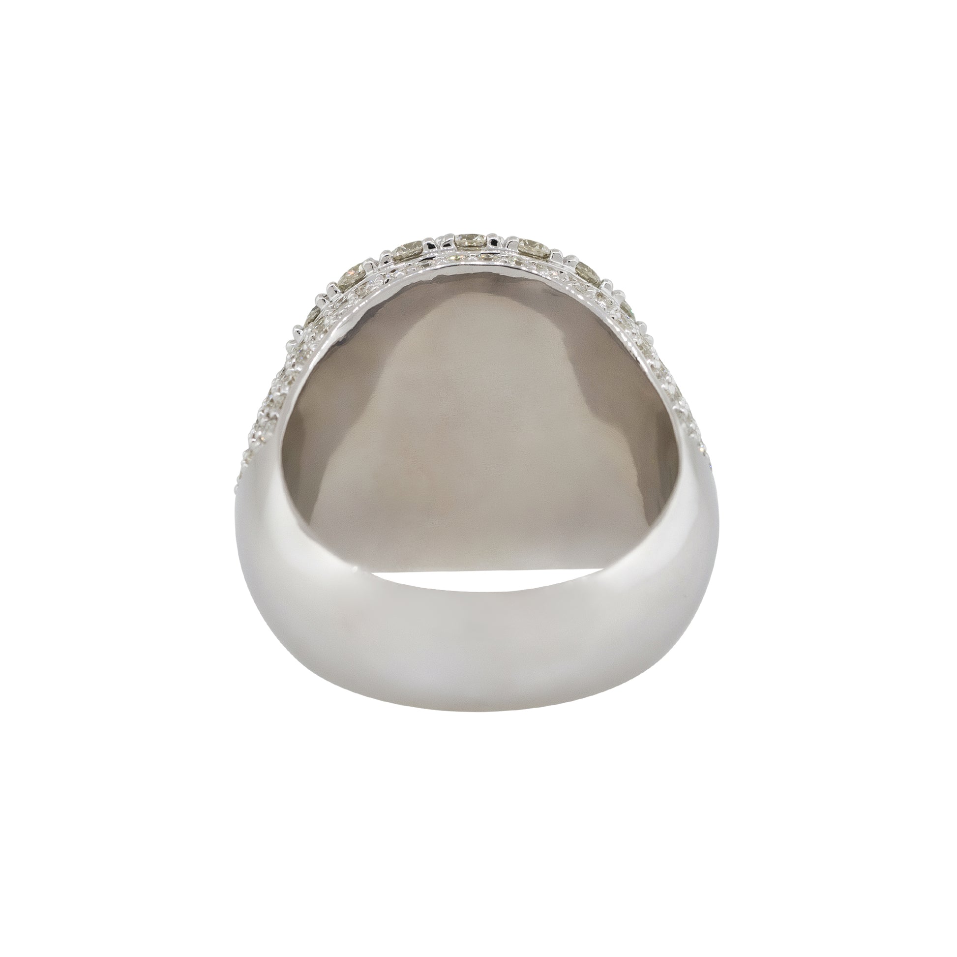 The diamonds are G/H in color and VS in clarity, meticulously set to create dimension, depth, and visual impact. The substantial size and 20.9g weight make this ring feel as luxurious as it looks—ideal for those who appreciate bold design with fine craftsmanship.