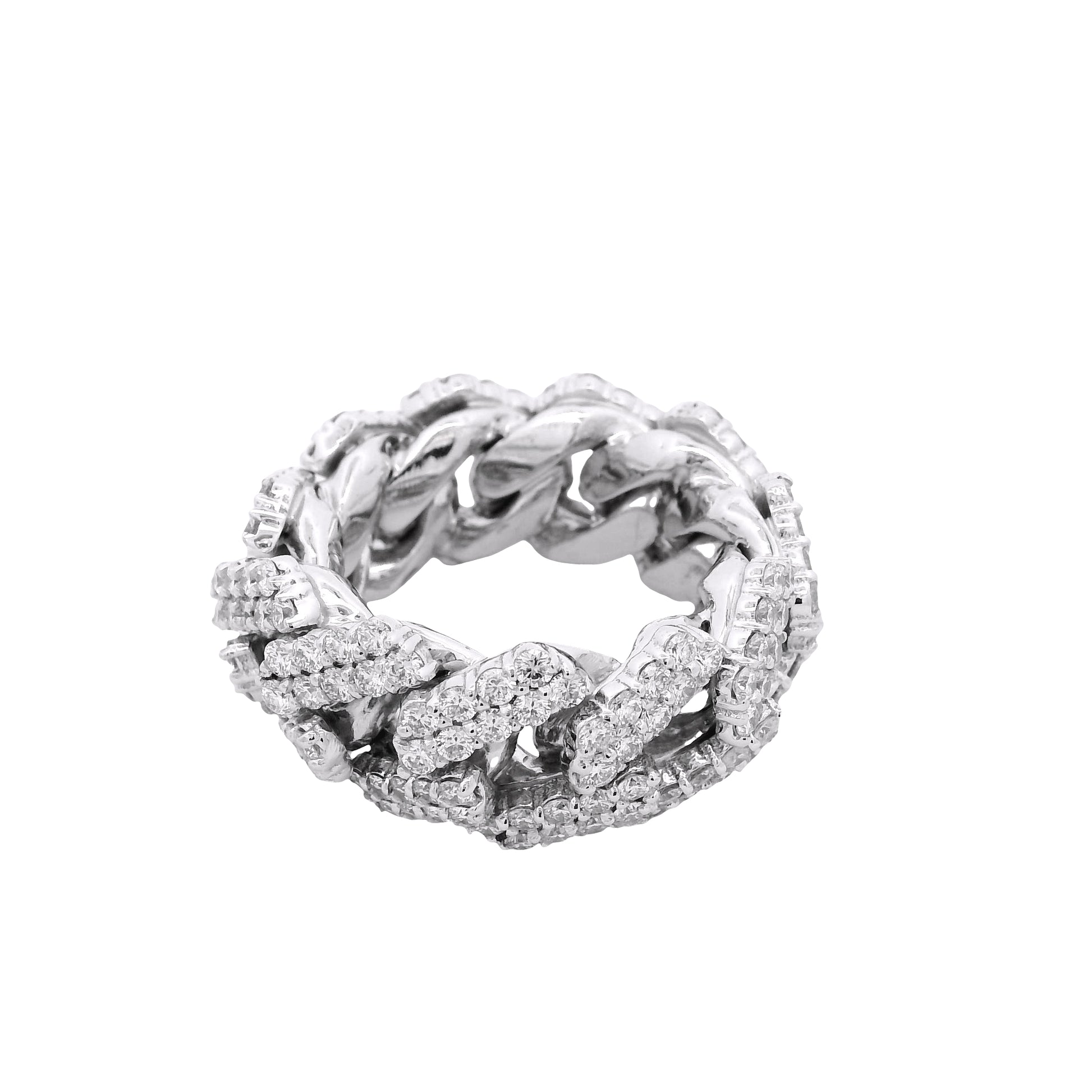 Sized at 10, this ring is ideal for those who appreciate bold, contemporary fine jewelry with timeless appeal. Whether worn as a statement piece or a standout addition to a luxury collection, this diamond Cuban link ring exudes confidence and sophistication.