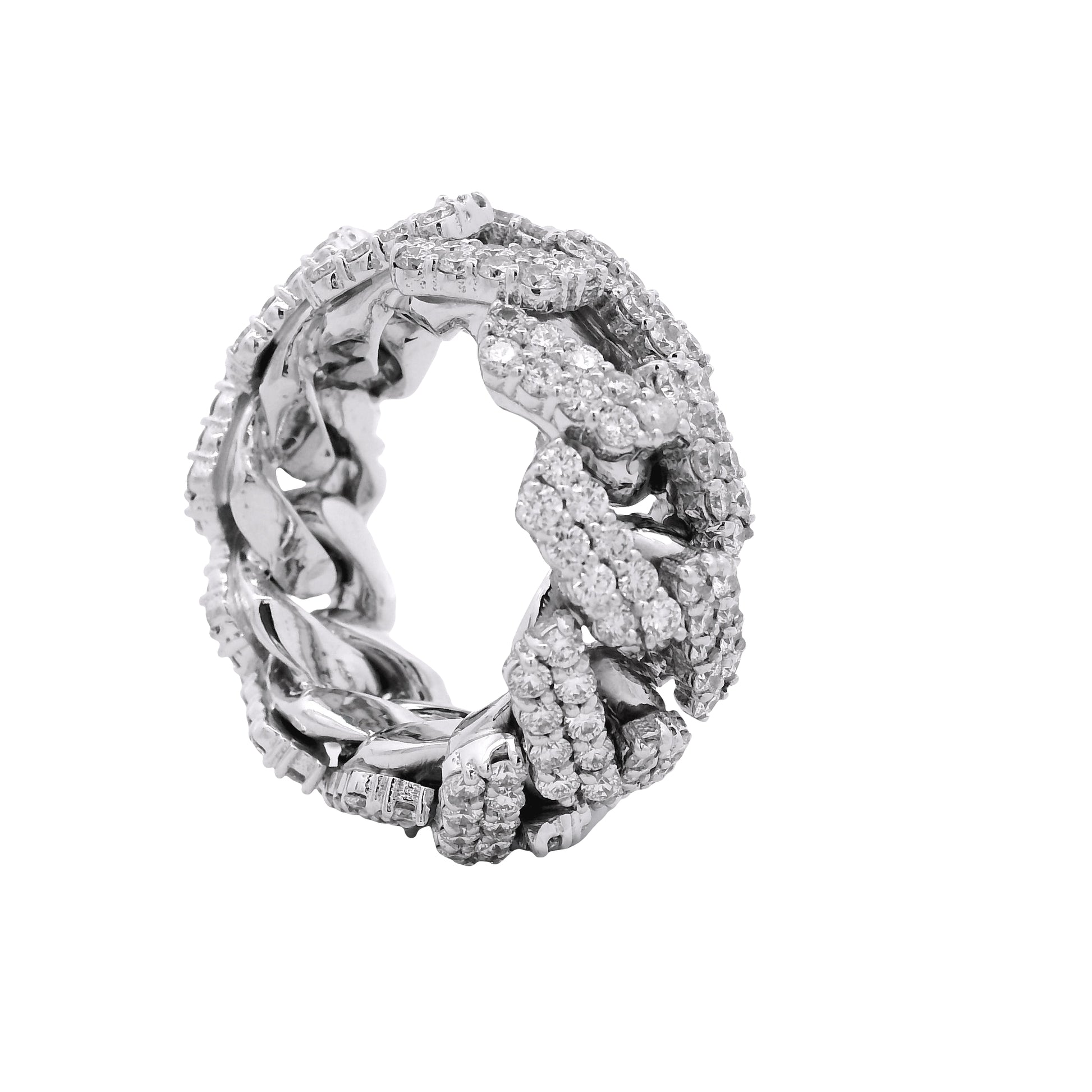 14k White Gold 6.95ctw Natural Round Diamond Cuban Link Ring