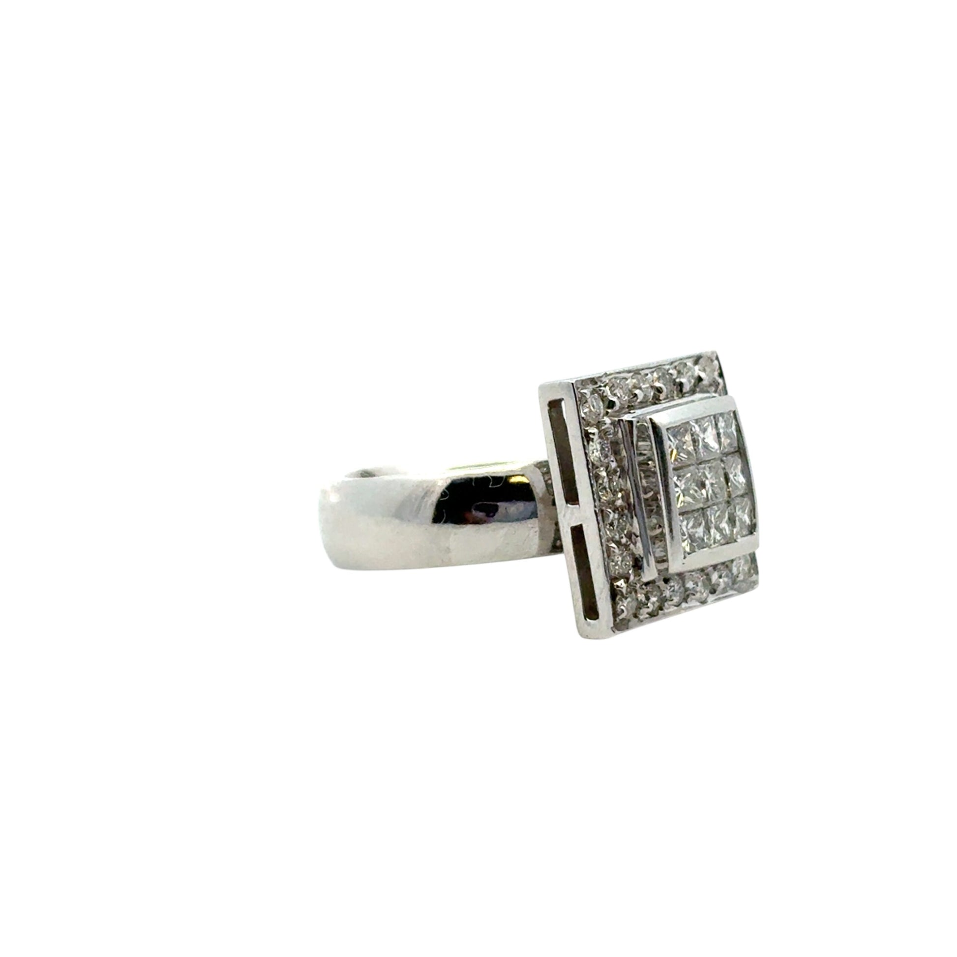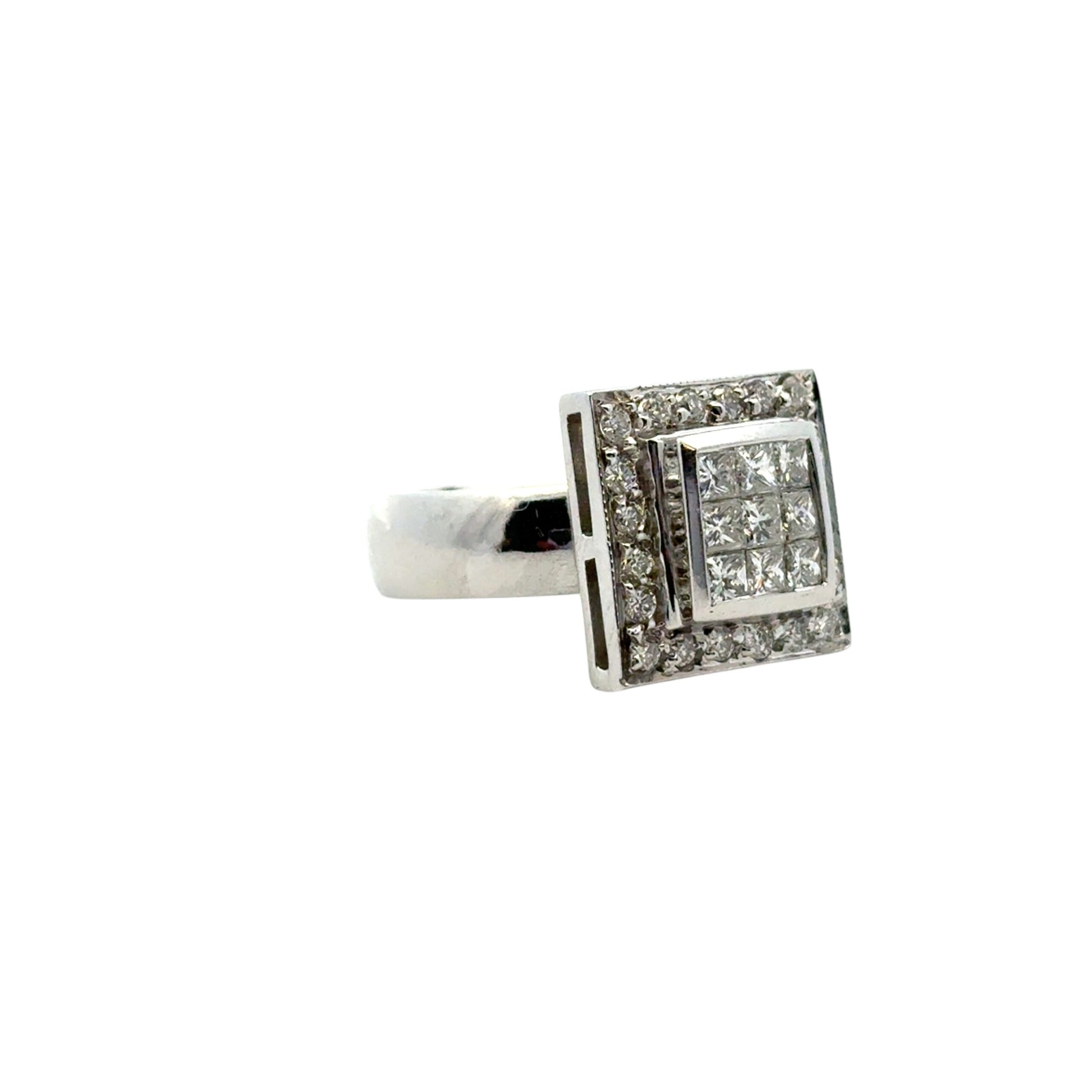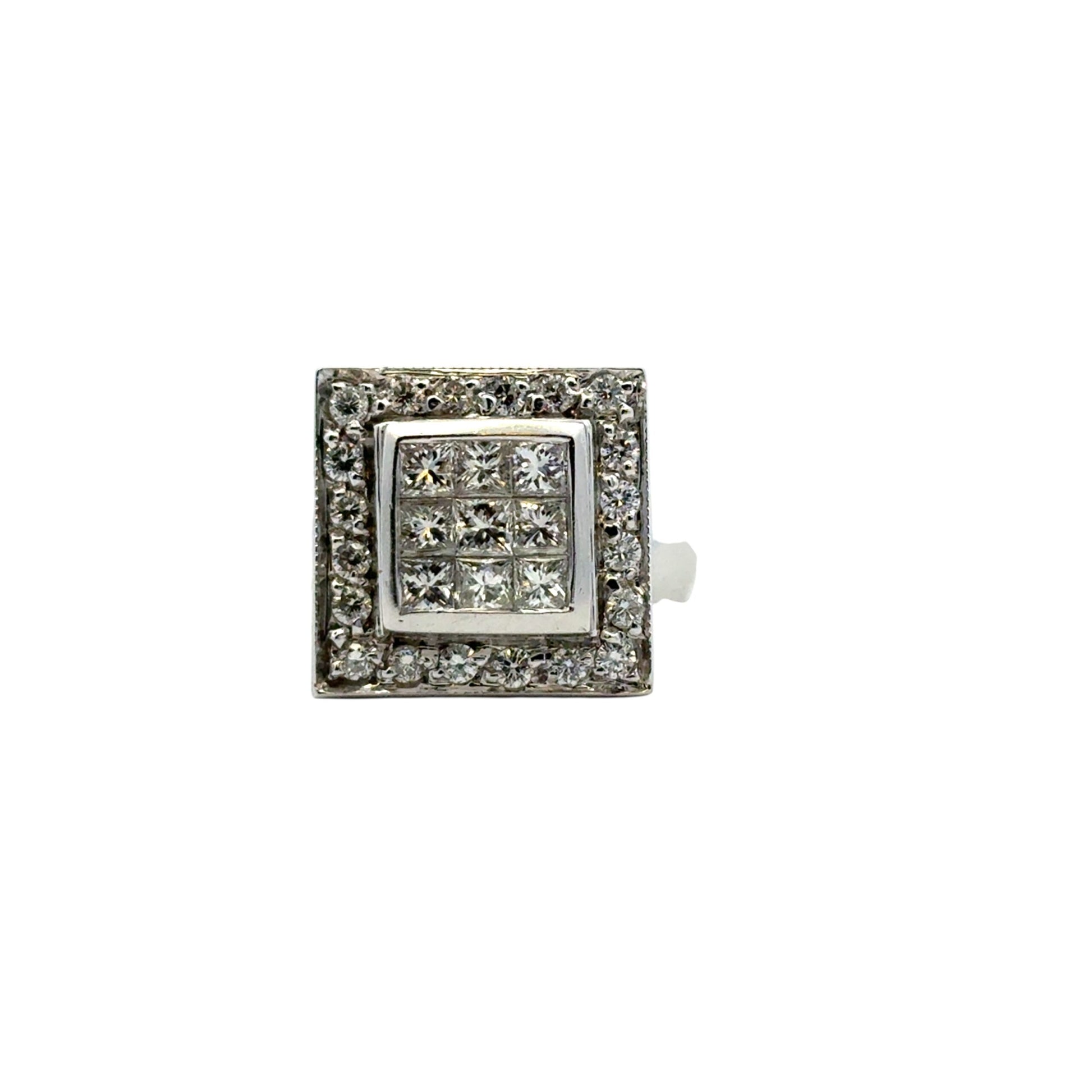 Make a bold and brilliant statement with this exquisite 14k White Gold Square Diamond Ring, showcasing a striking geometric design and a dazzling 0.73 carats total weight of natural diamonds.