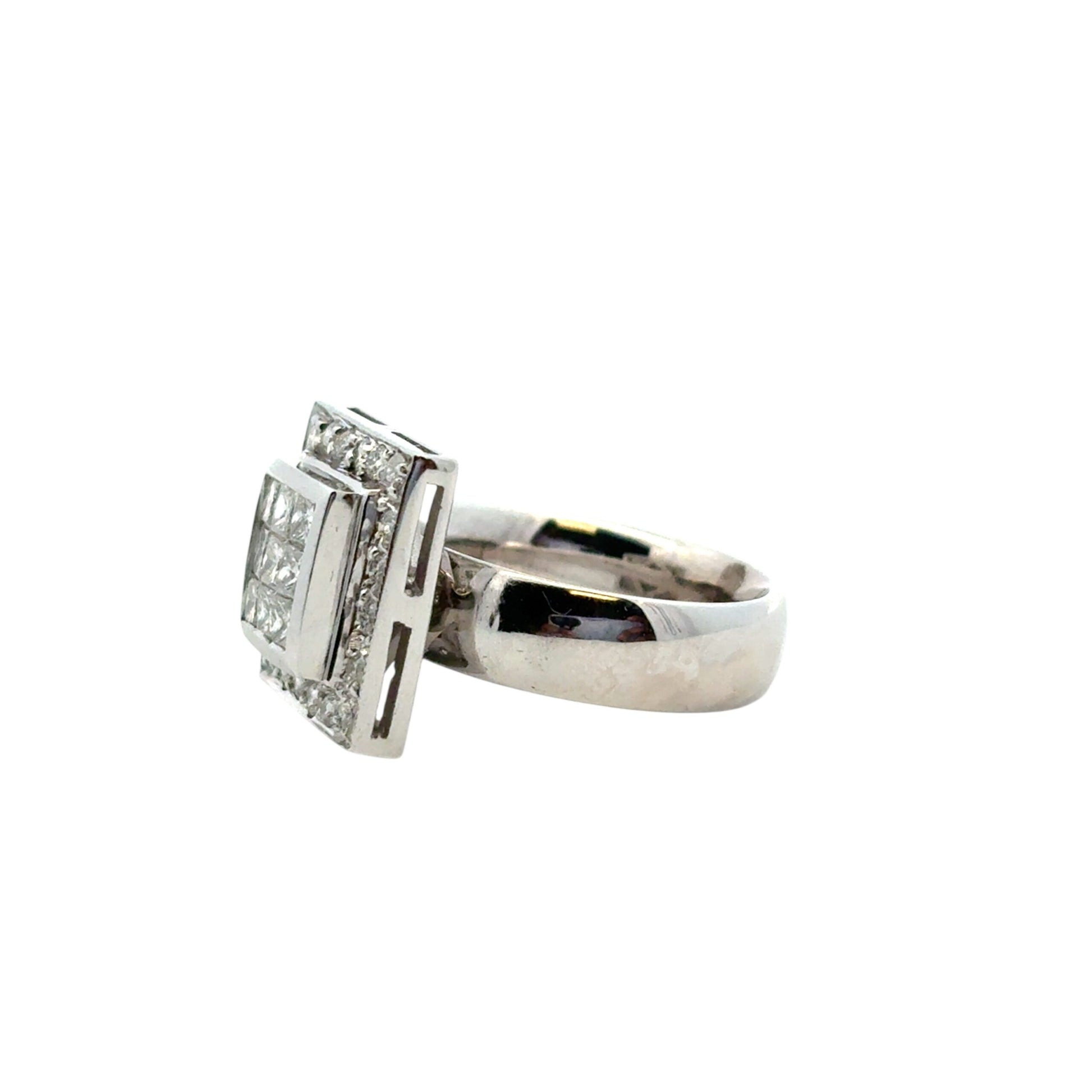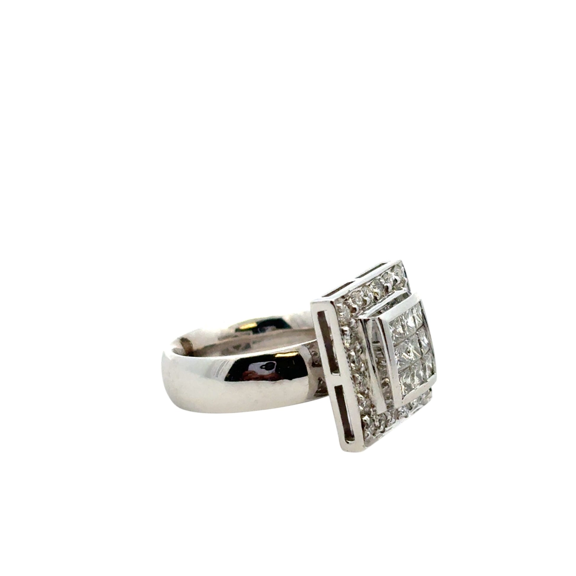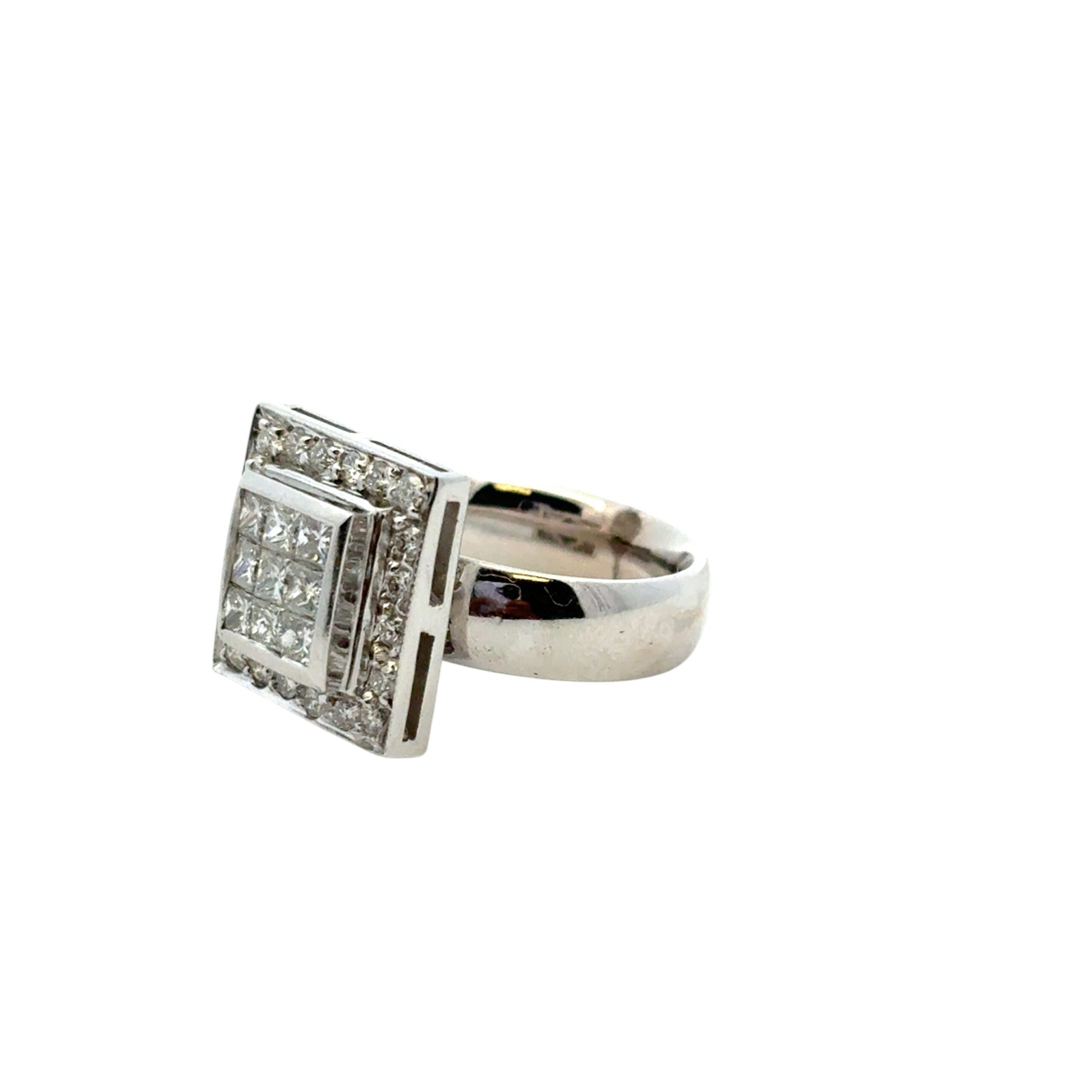 Make a bold and brilliant statement with this exquisite 14k White Gold Square Diamond Ring, showcasing a striking geometric design and a dazzling 0.73 carats total weight of natural diamonds.