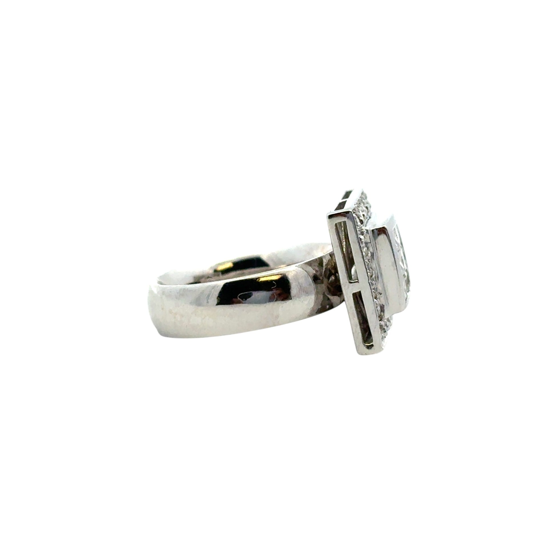 | Matching Ring | This ring has matching earrings: 18k White Gold Rhombus approx. 0.82ctw Square Diamond Earrings (G14737). |