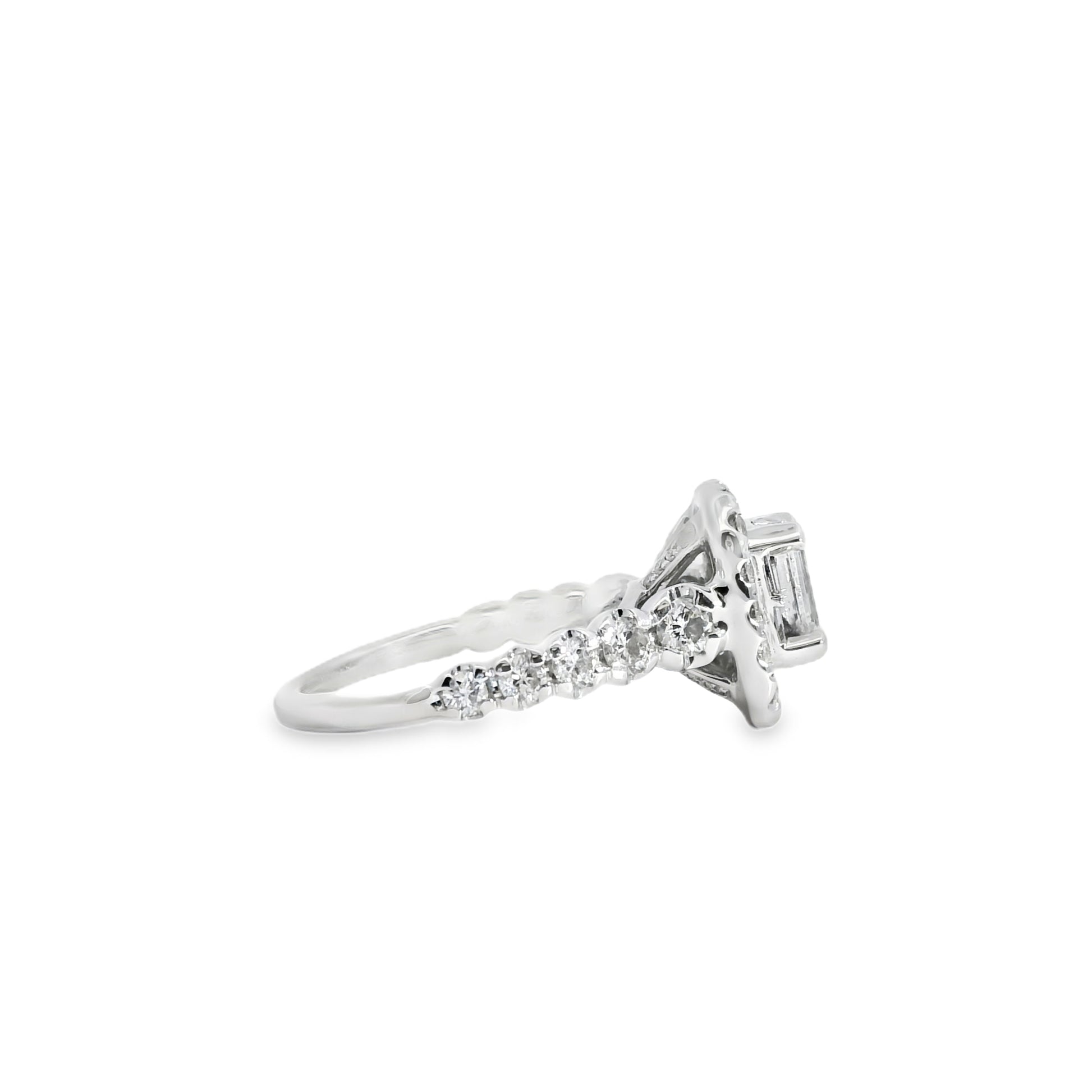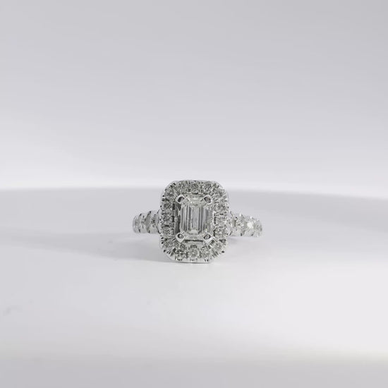 This elegant 14k White Gold Emerald Cut Diamond Engagement Ring Set showcases a timeless blend of sophistication and brilliance. At its center and along the setting, the ring features approximately 0.90 carats total of emerald cut diamonds, beautifully complemented by 1.00 carat total weight of round brilliant diamonds for added sparkle and dimension.