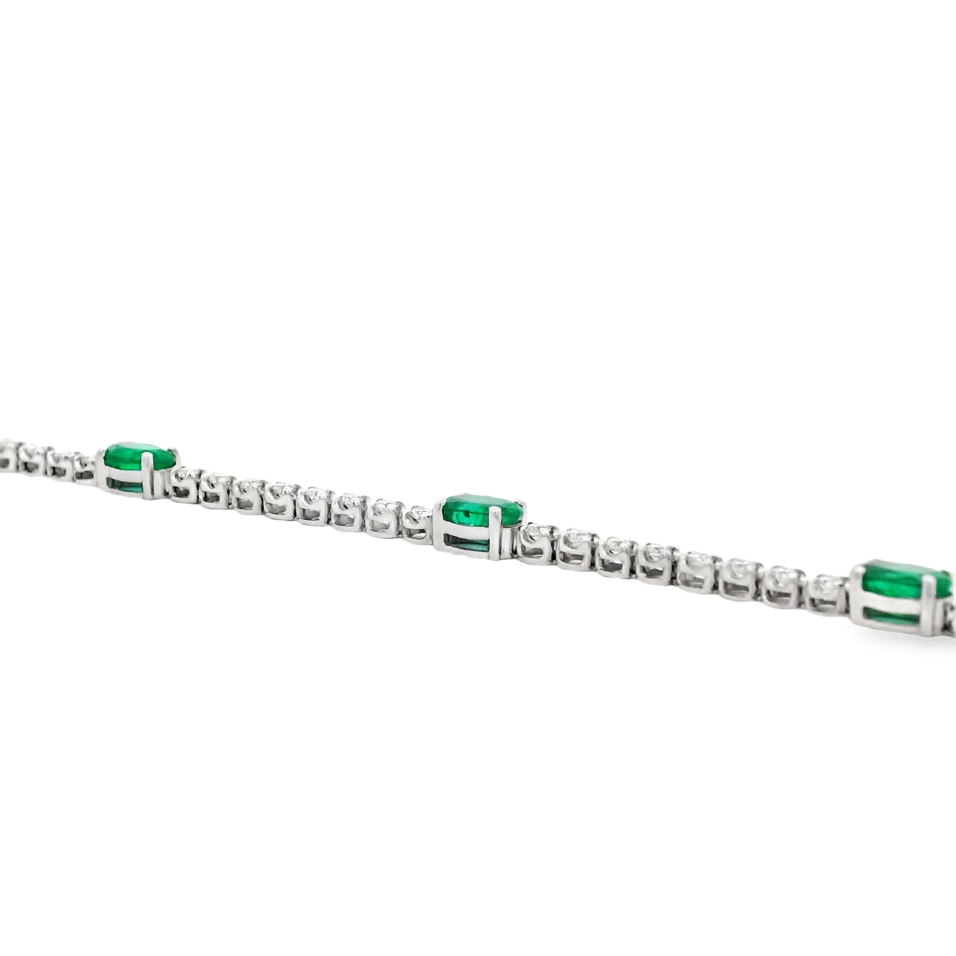 14K White Gold Tennis Bracelet with 3.23ct Emeralds and 2.65ct Round Brilliant Diamonds