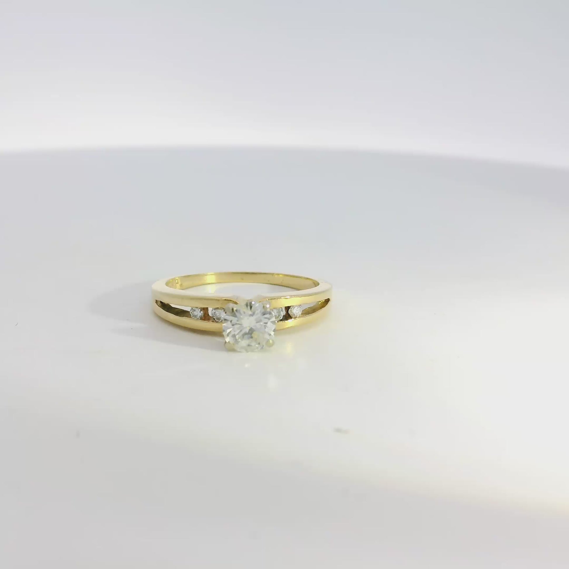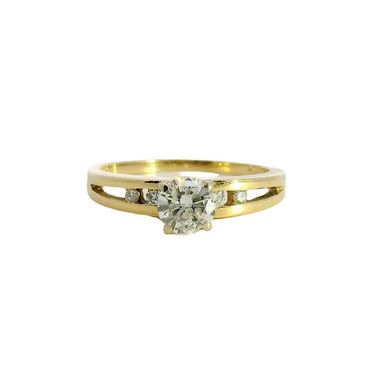14k Yellow Gold 0.50ct Round Brilliant Diamond Ring with 0.04ctw Accent Diamonds
