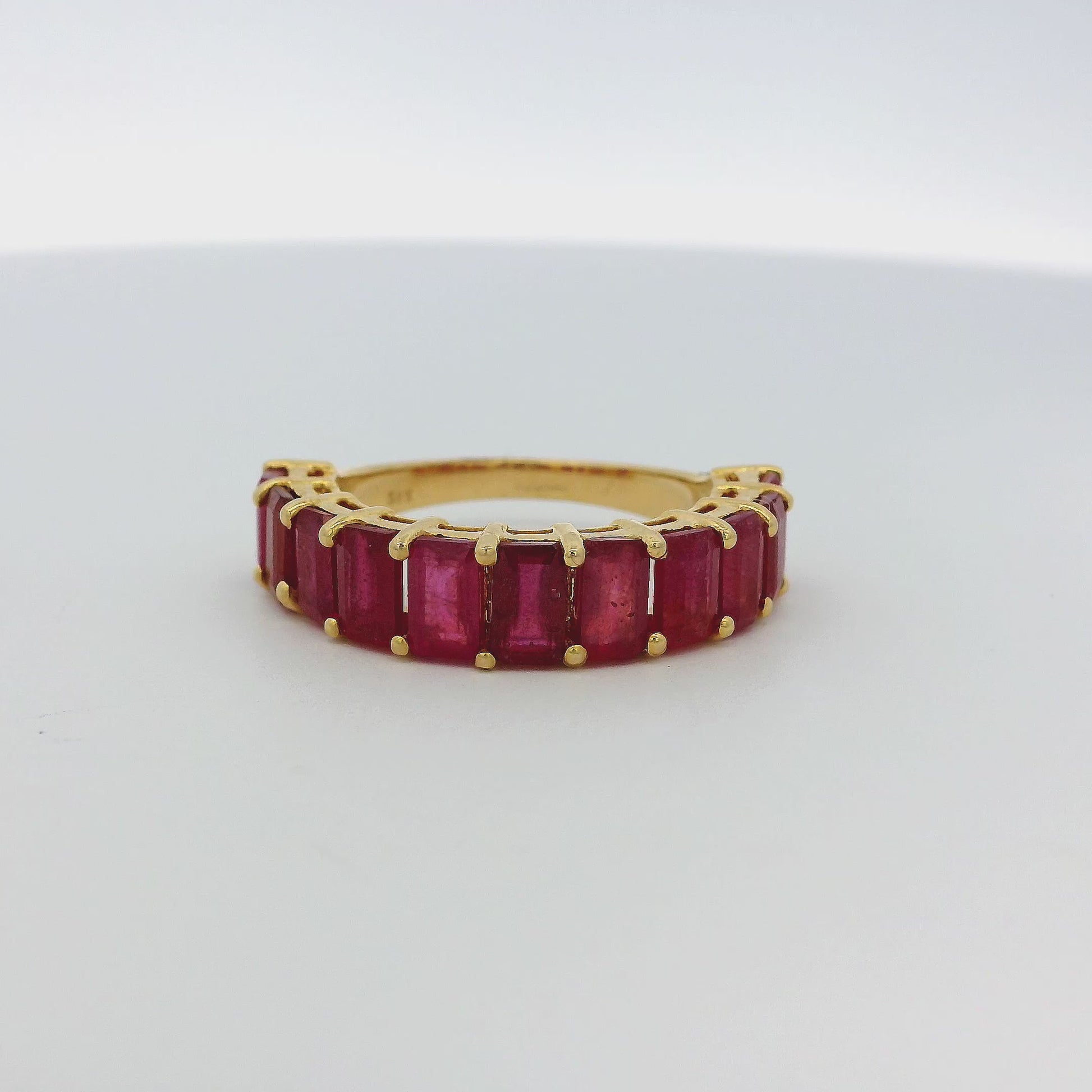 14k Yellow Gold 1.60ctw Emerald Cut Ruby Halfway Band Ring