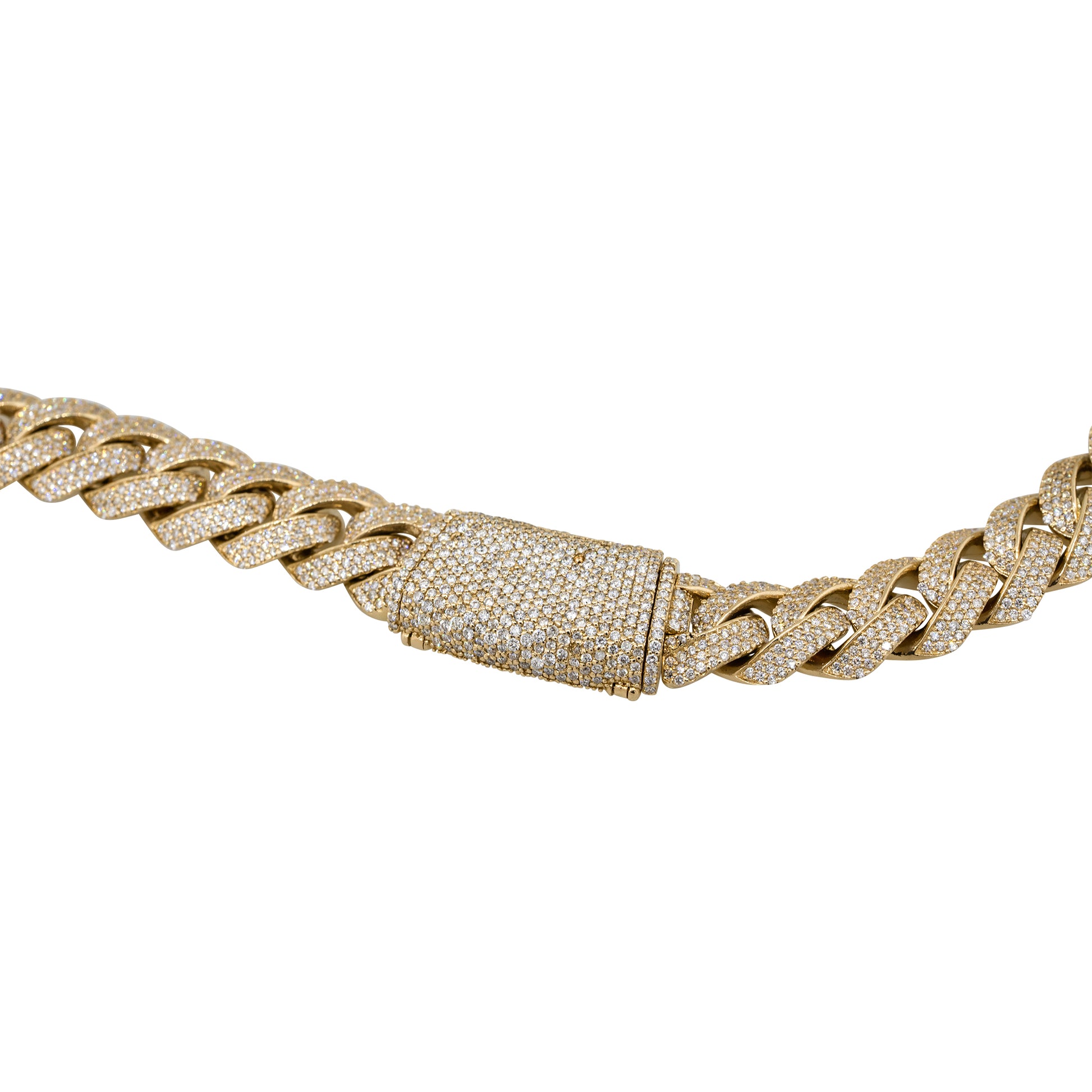 14k Yellow Gold 23.27ctw Diamond Pave Cuban Link Necklace