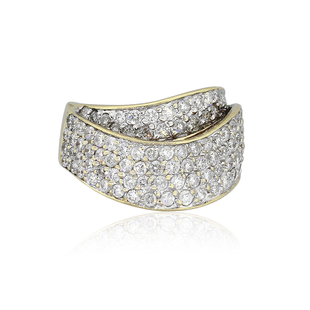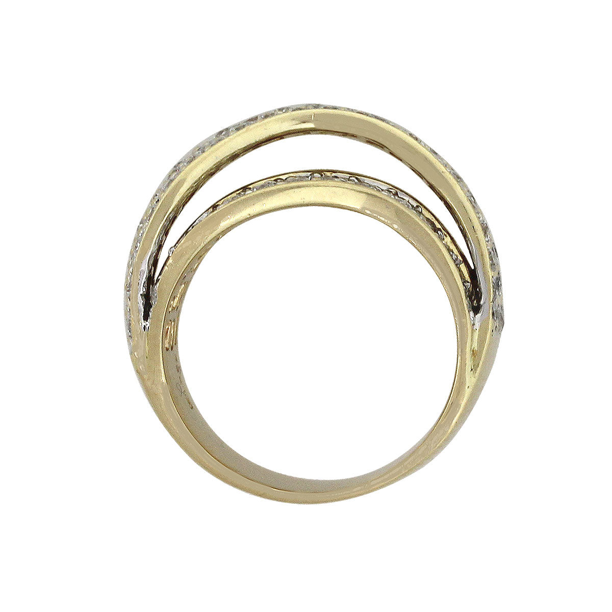 14k Yellow Gold 2ctw Round Cut Diamond Pave Crossover Ring