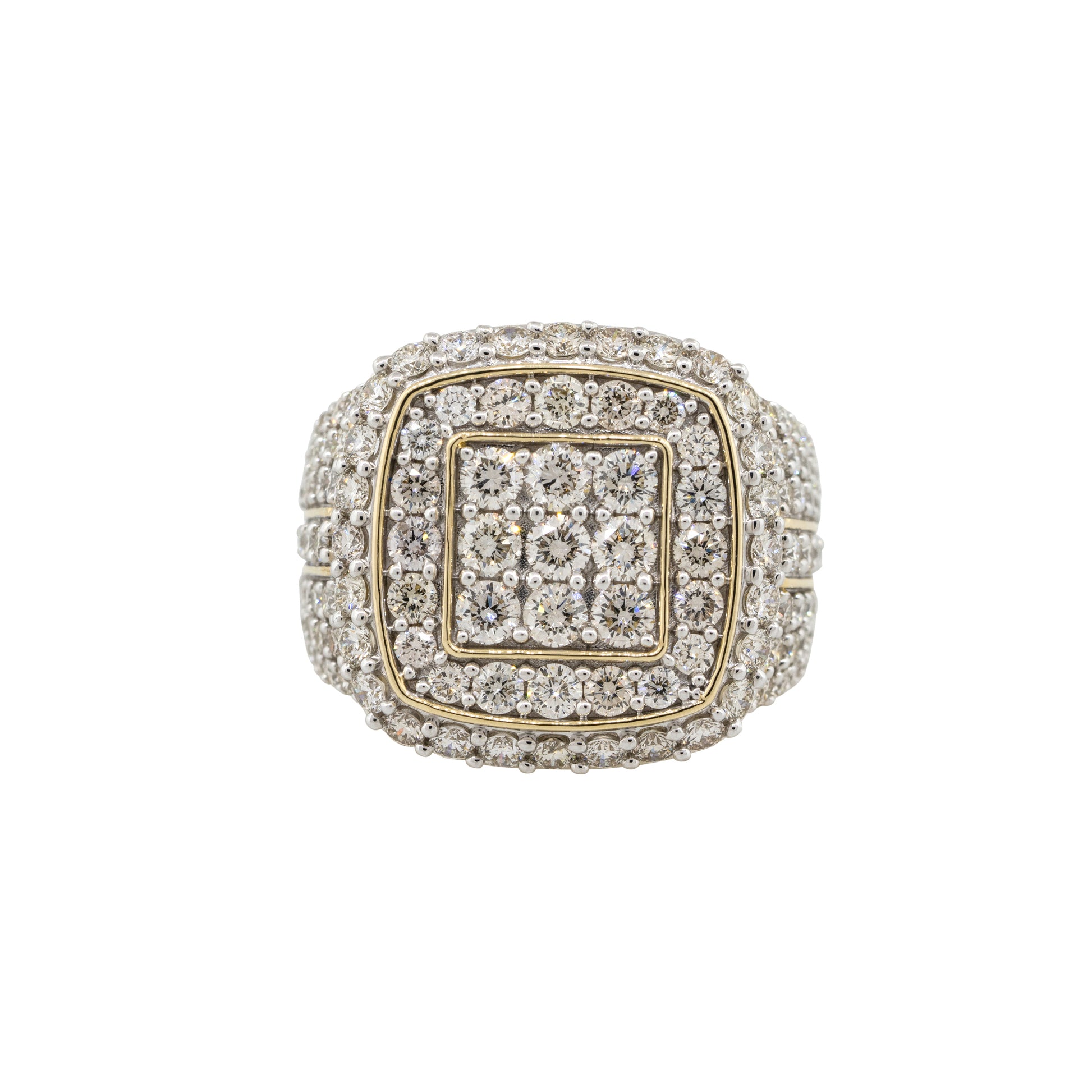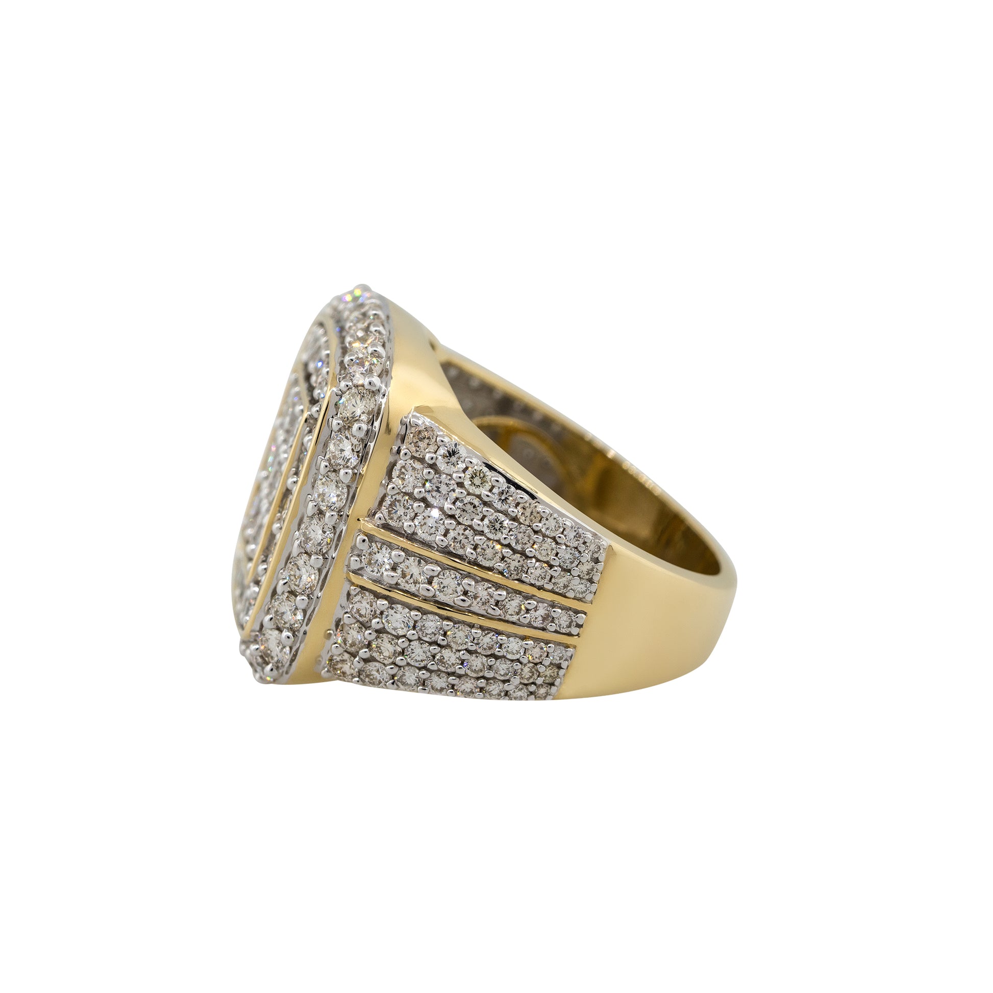 Make a powerful impression with this vintage-inspired 14k yellow gold men’s ring featuring a striking 5.00ctw of round and baguette cut diamonds. The pave setting is masterfully designed to reflect bold symmetry, rich texture, and brilliance from every angle.
