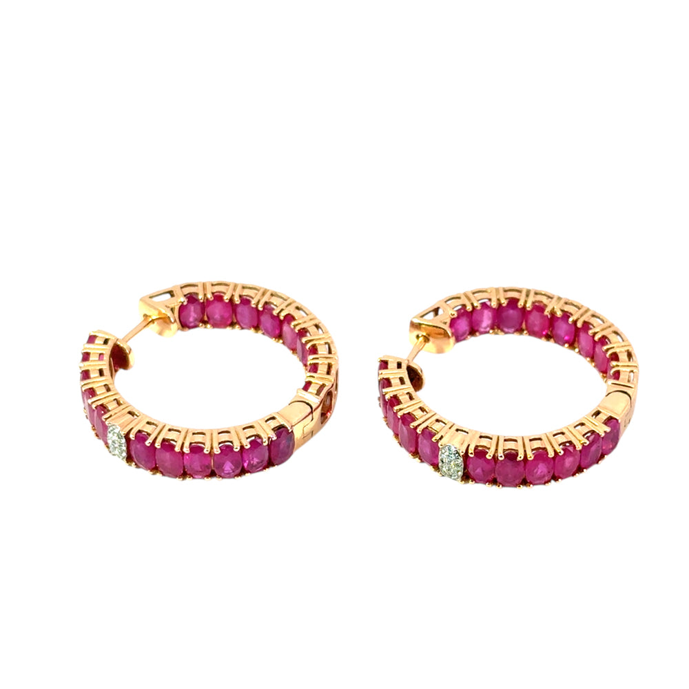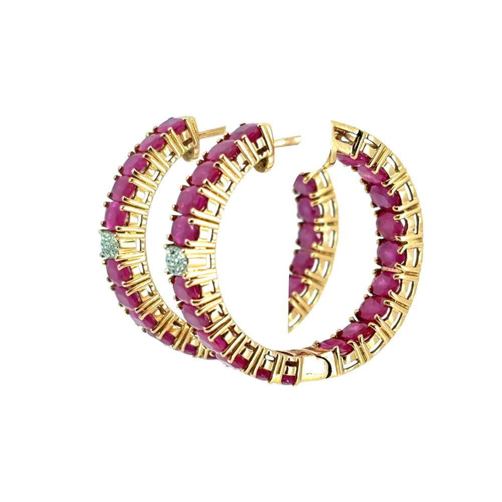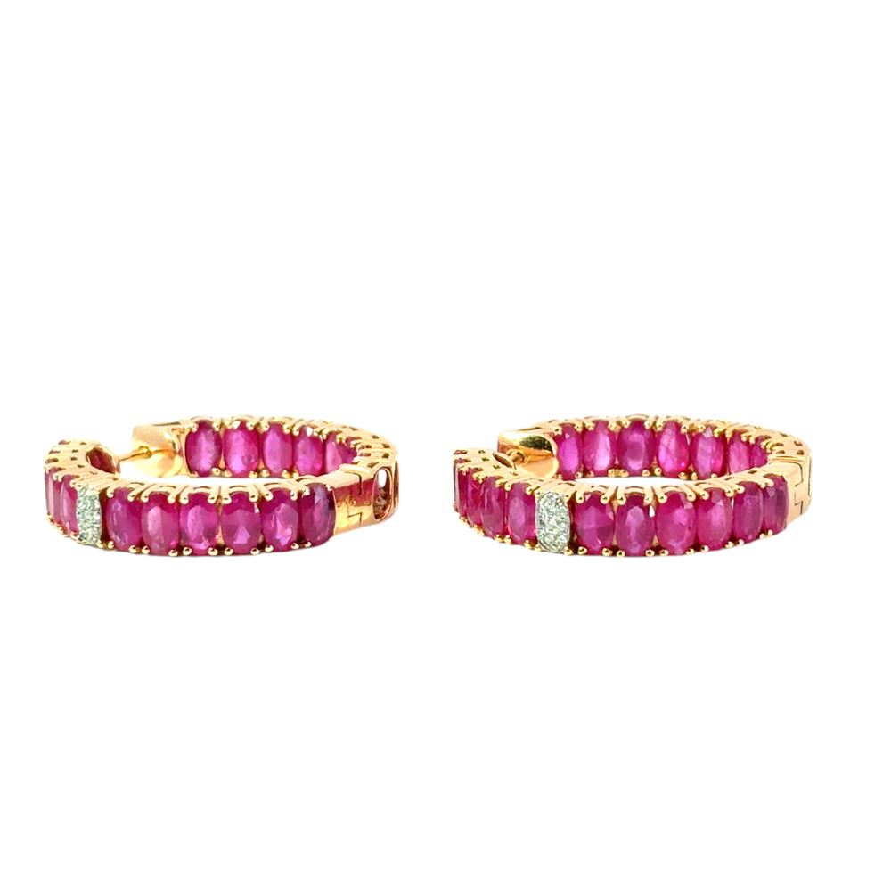 14k Yellow Gold approx. 10ctw Ruby and 0.11ctw Diamond Hoop Earrings