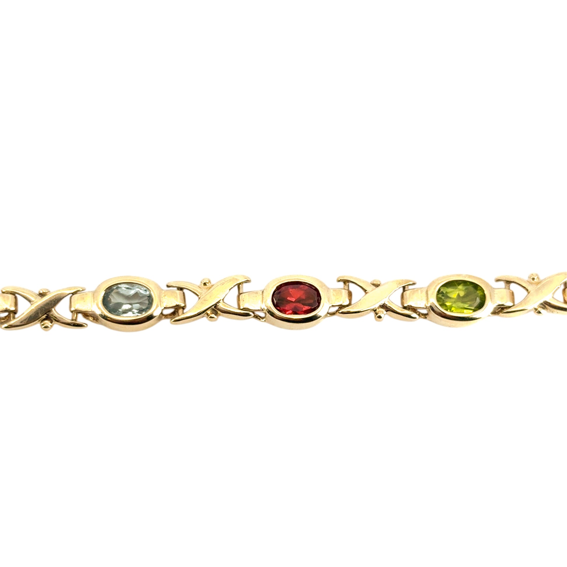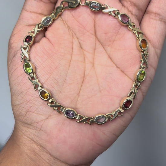 Colorful Sophistication – 14k Yellow Gold Colored Stone “X” Bracelet