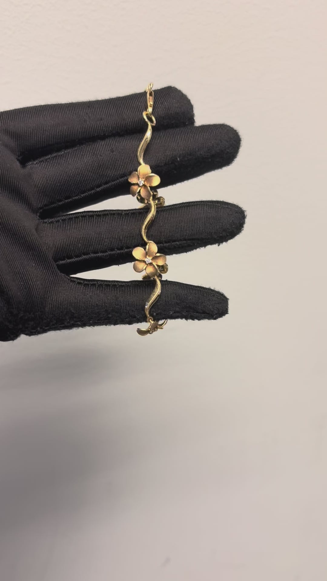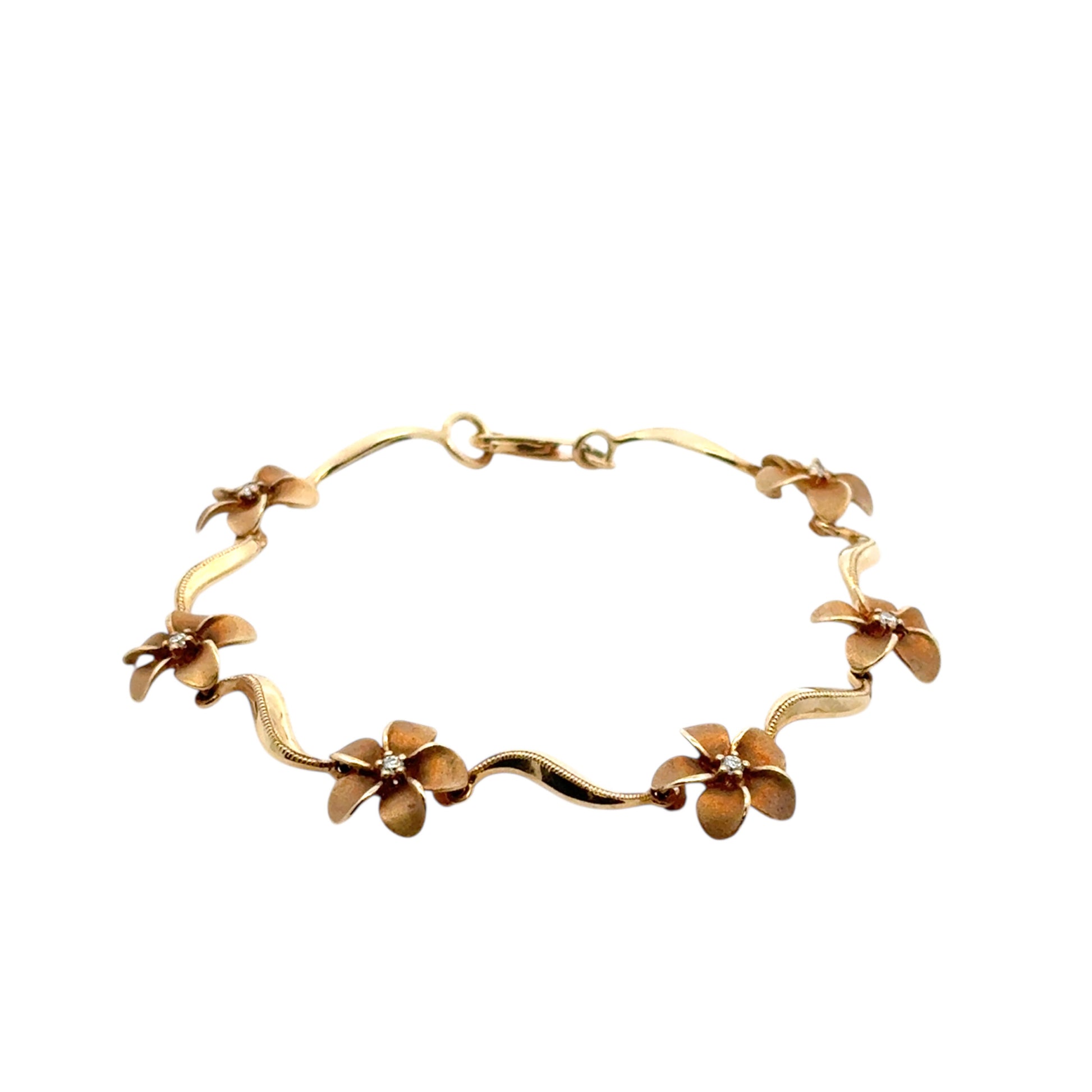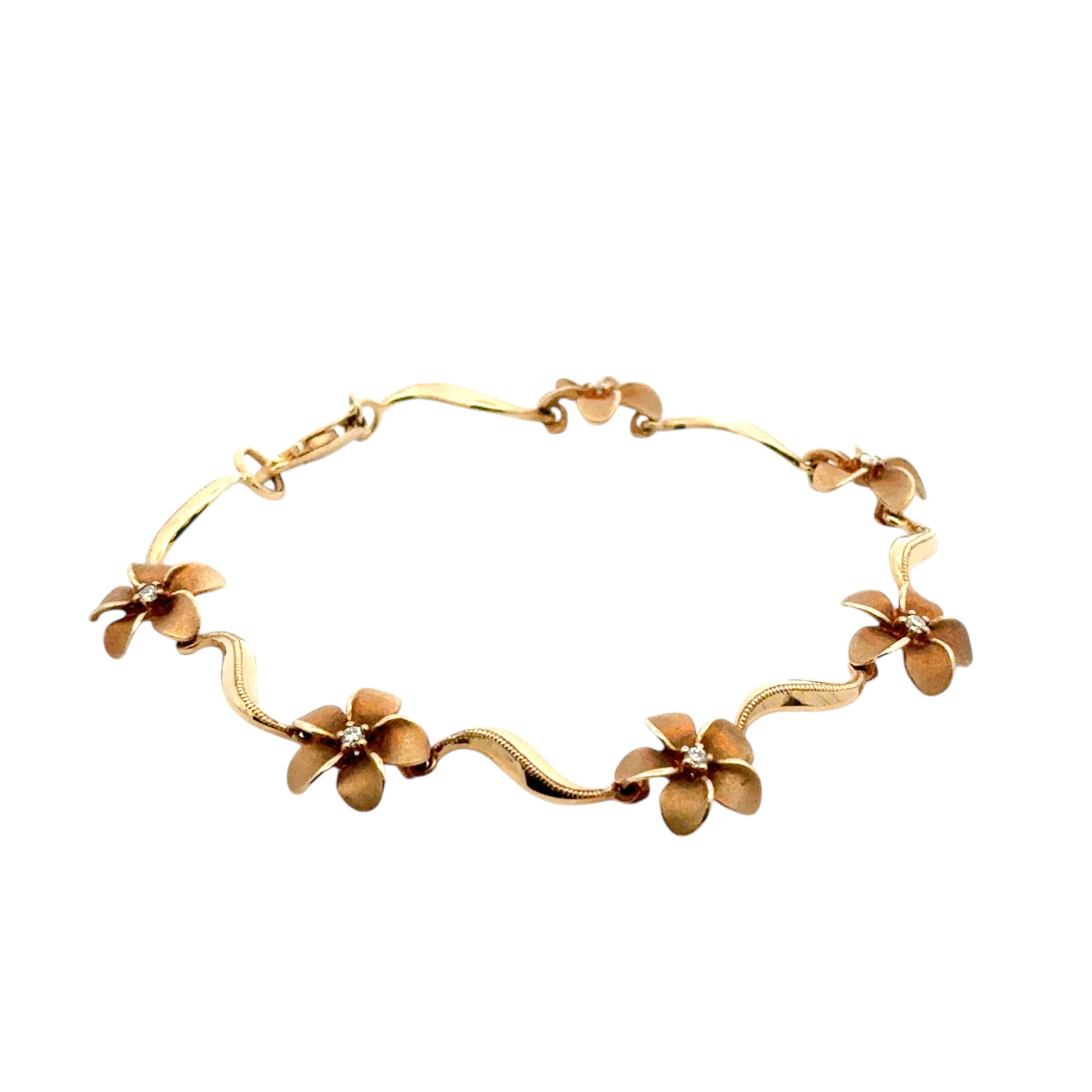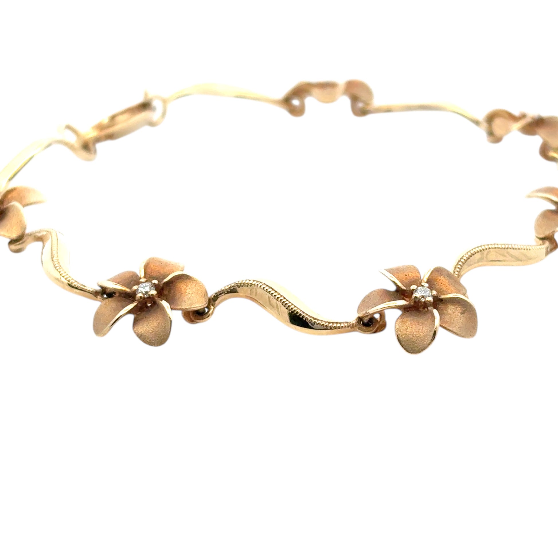 14k Yellow Gold Diamond Plumeria Flower Bracelet