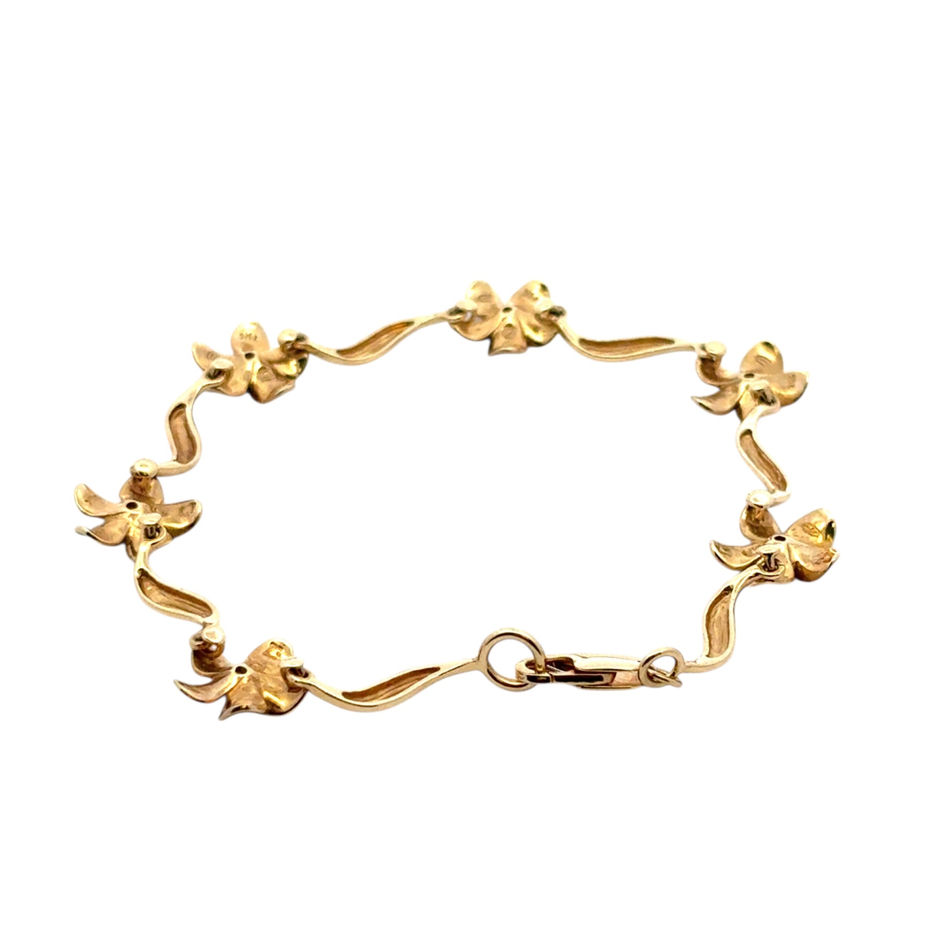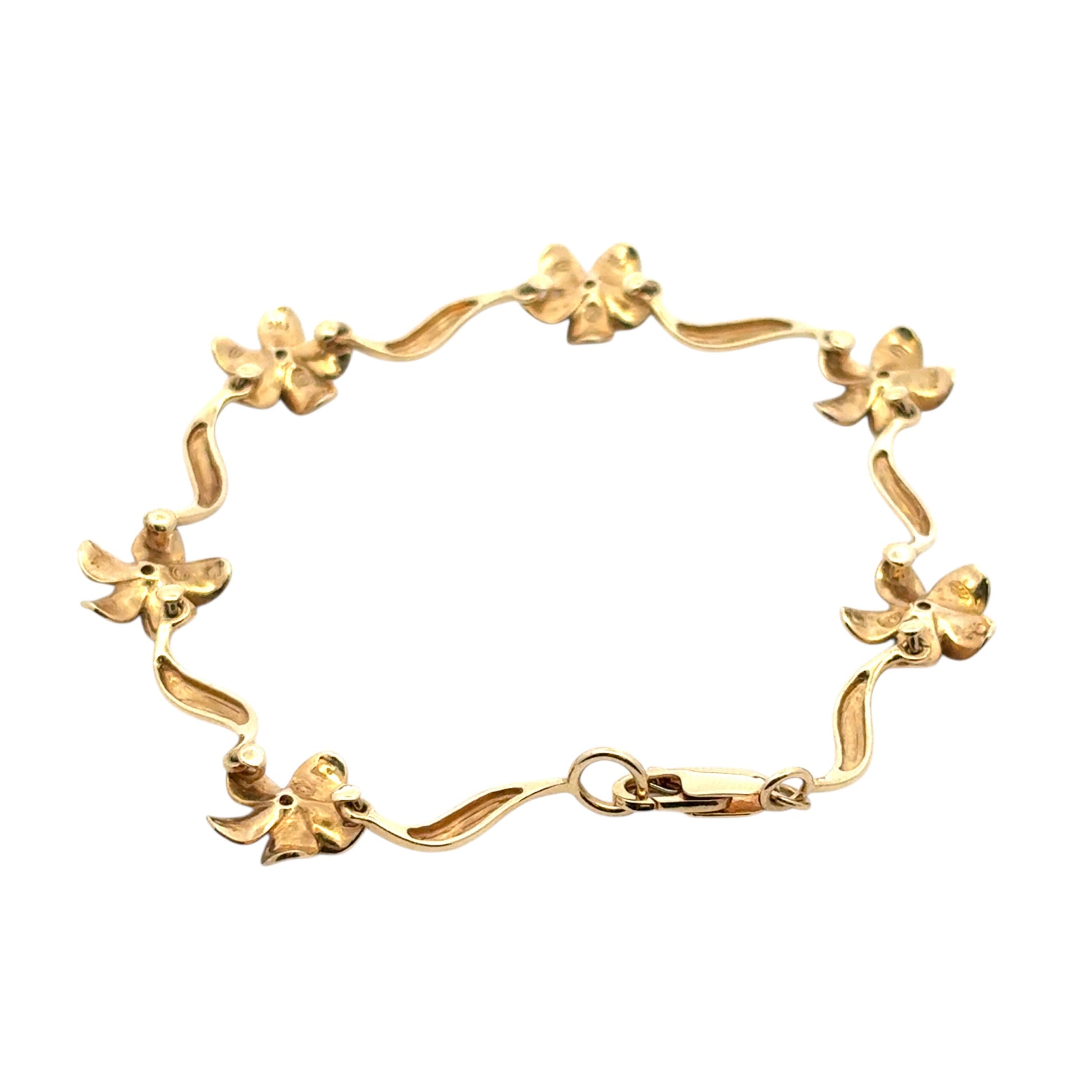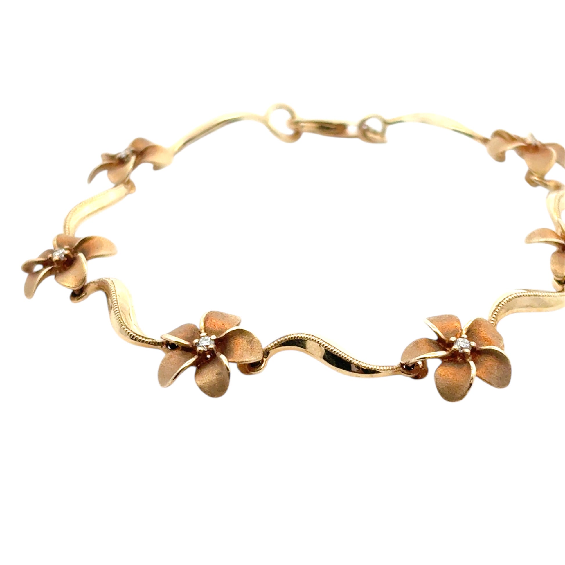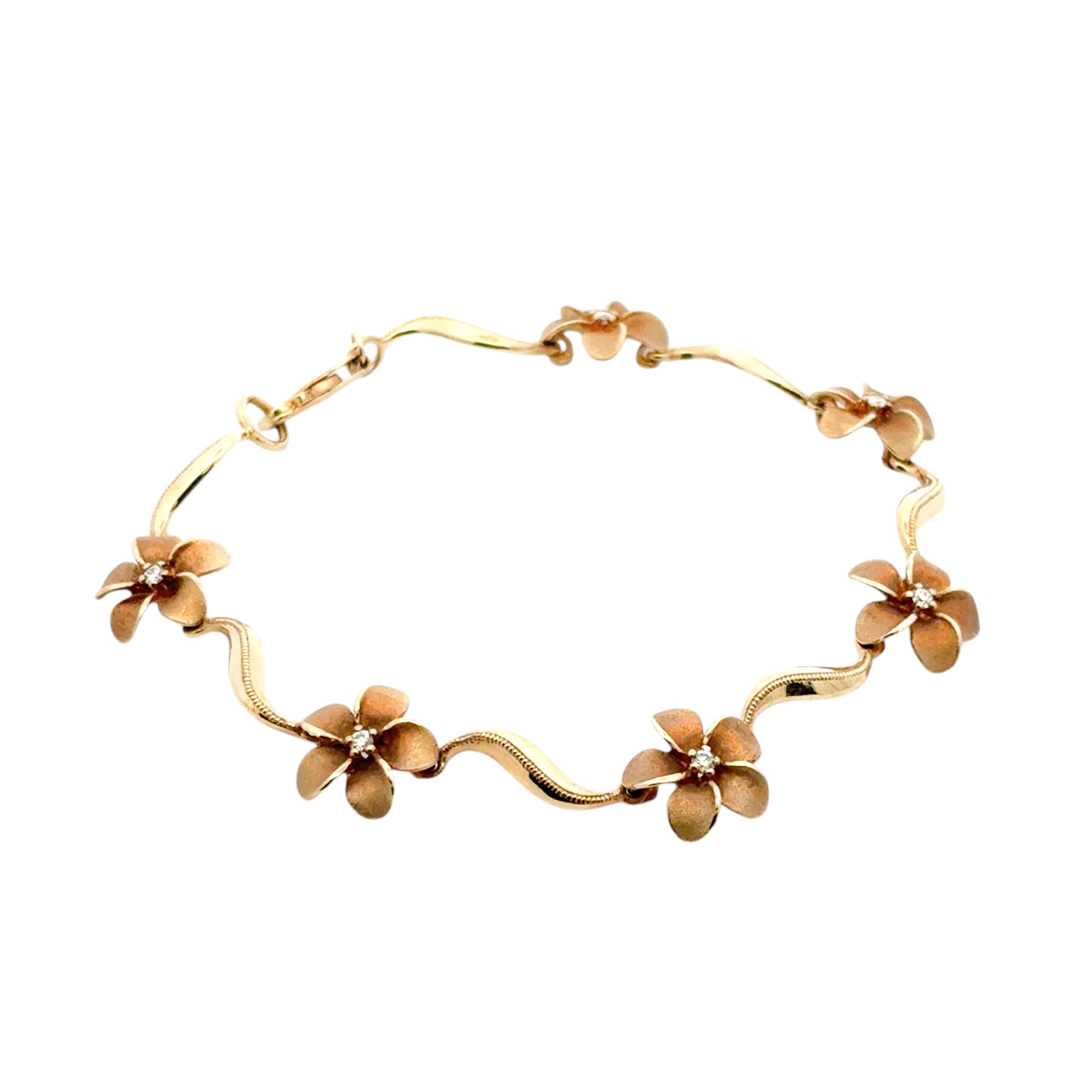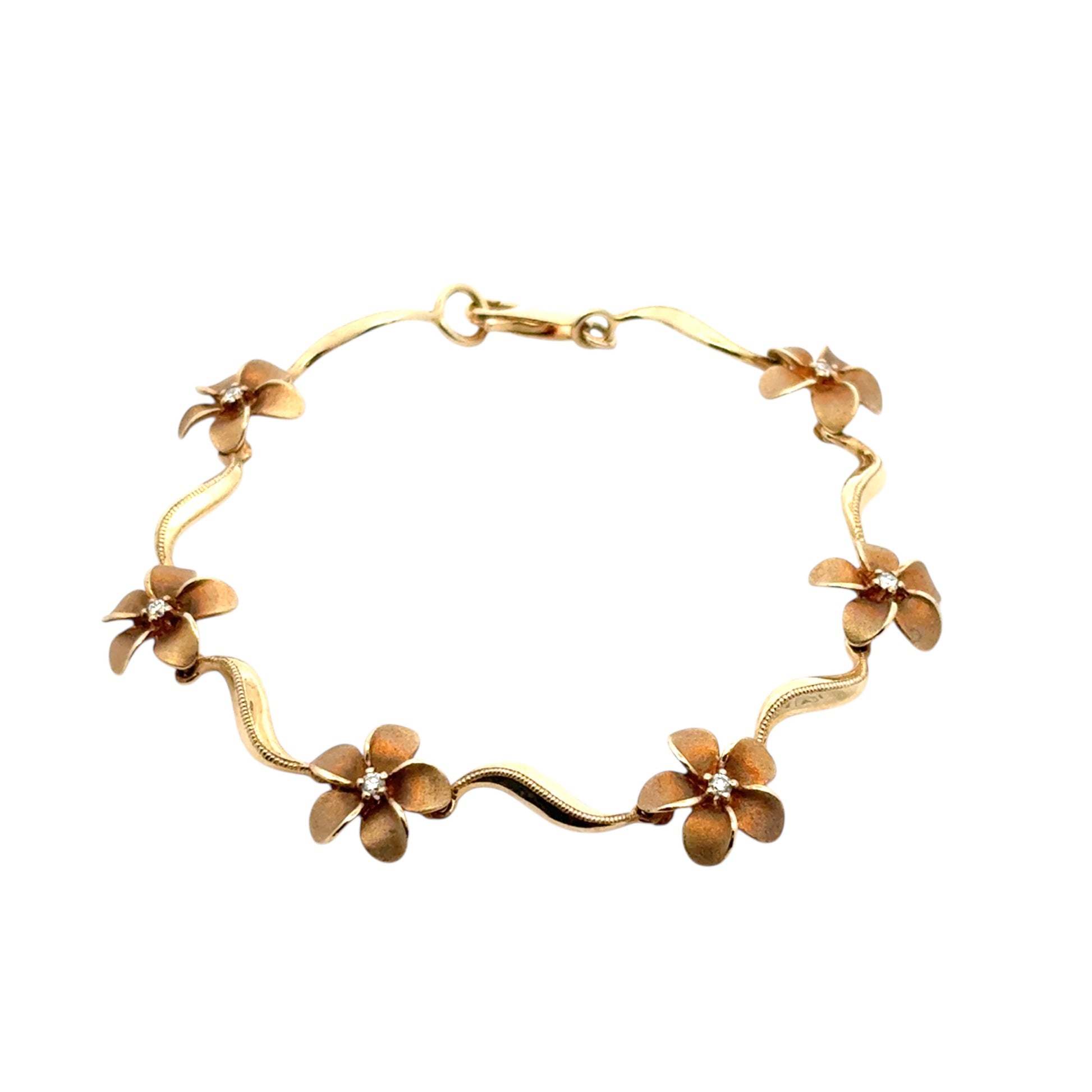 14k Yellow Gold Diamond Plumeria Flower Bracelet