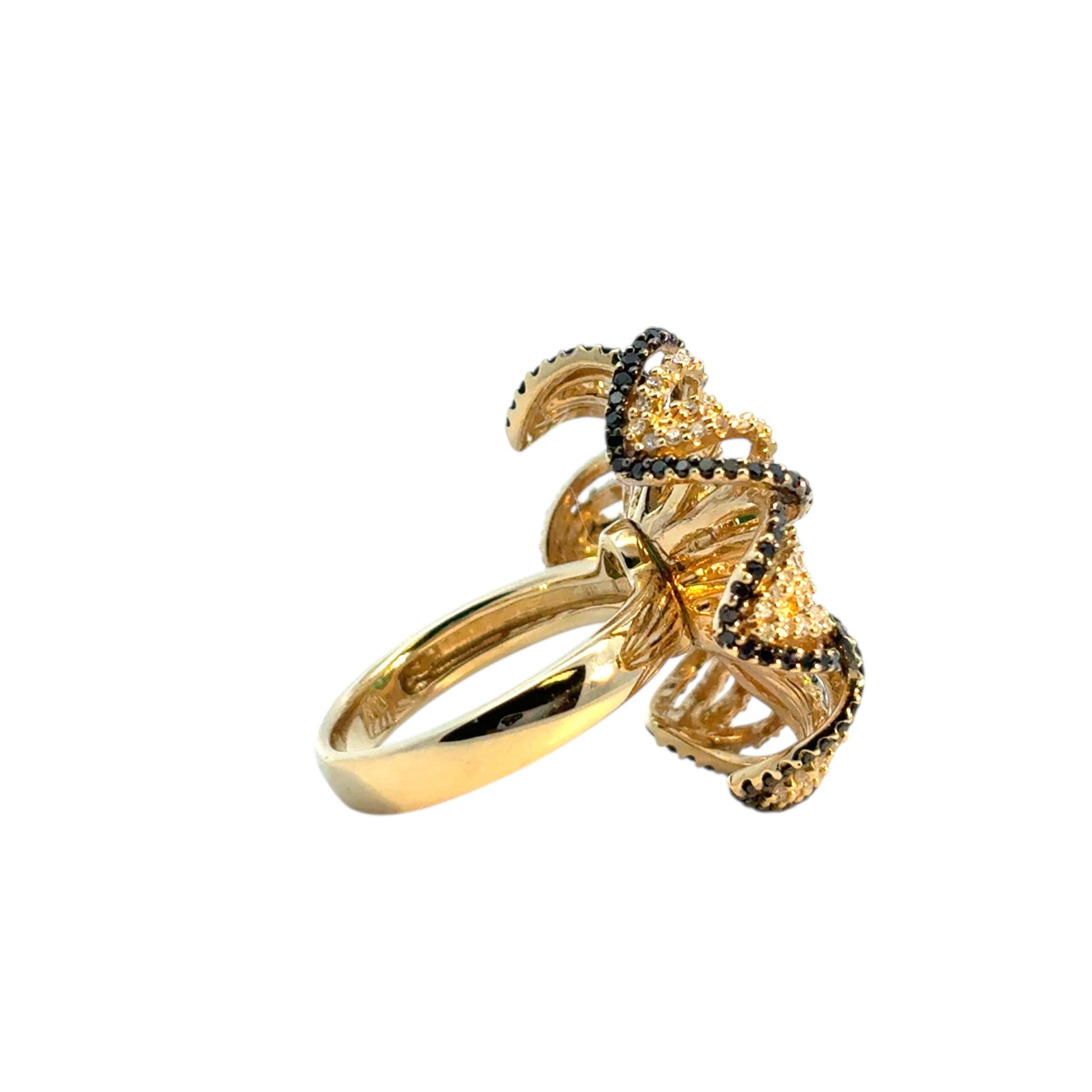| Diamond Details | This ring features Natural Round Cut Black and White Diamonds, weighing approximately 2 carats. |