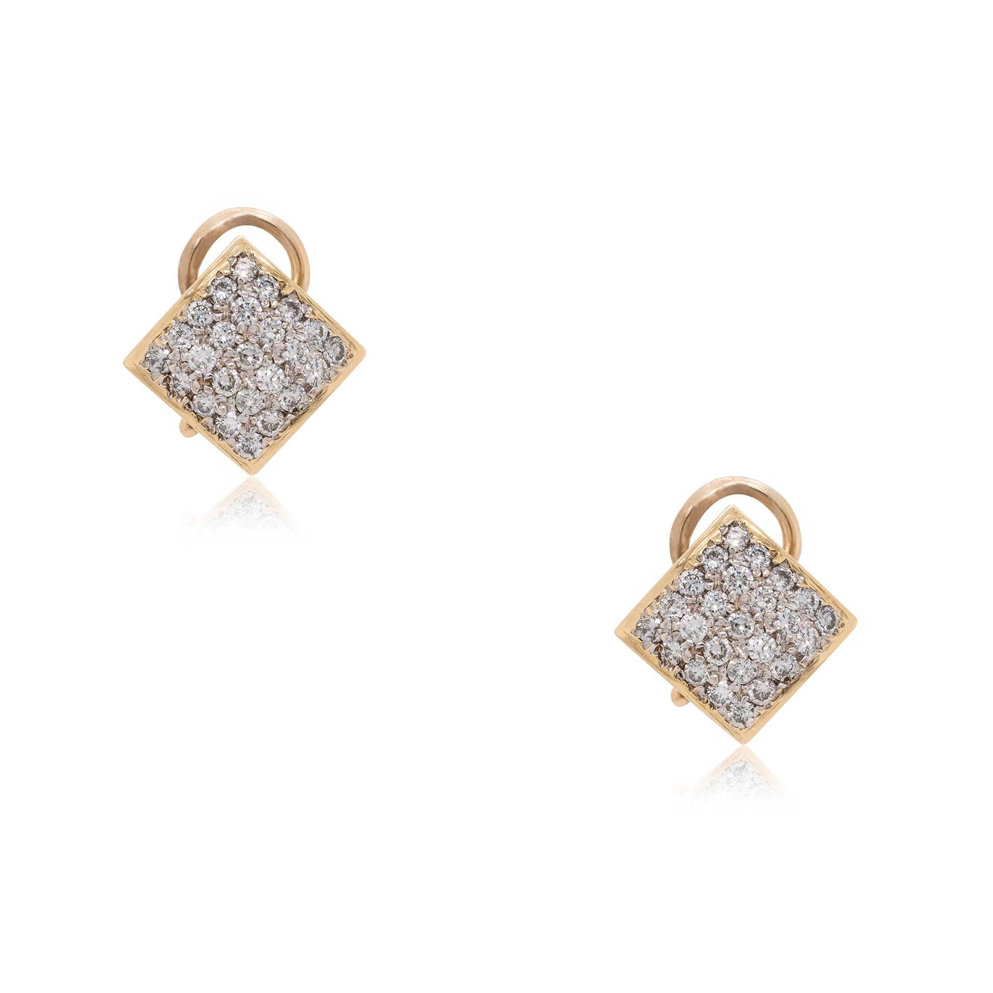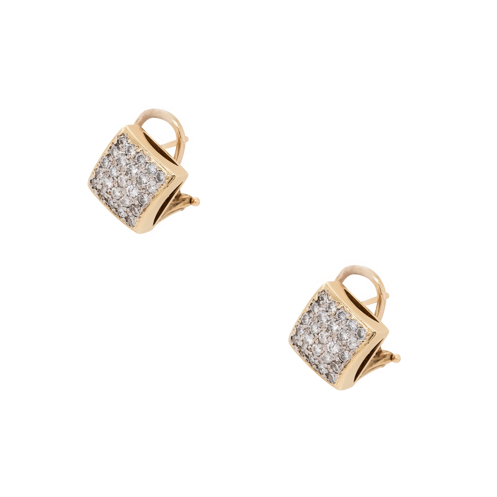 14k Yellow Gold Pave Diamond Square Stud Earrings