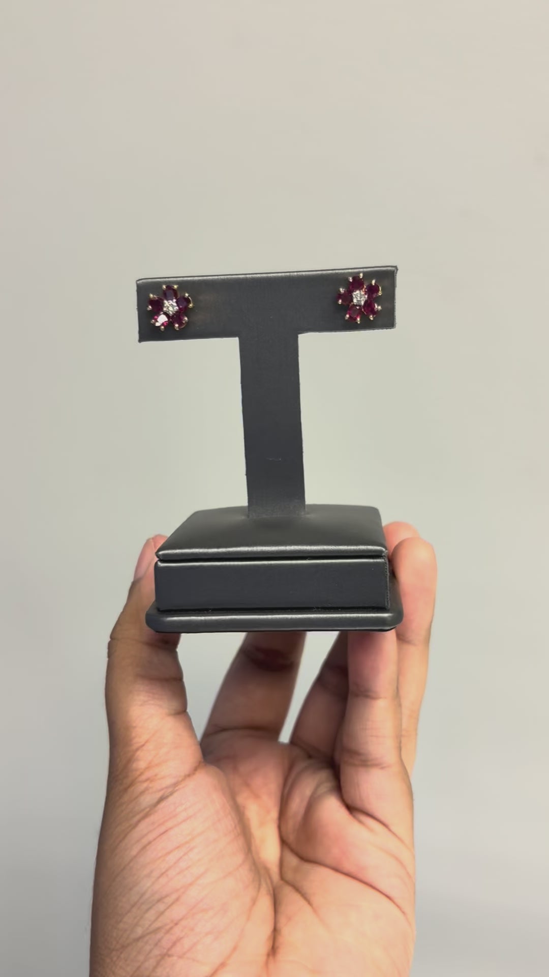 These stunning Ruby Diamond Flower Earrings are in excellent condition and are ready to ship!