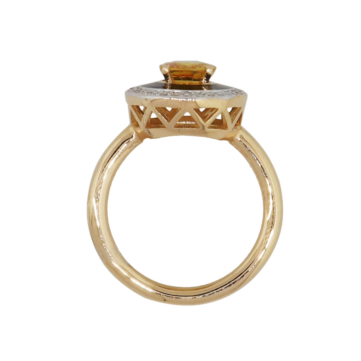 18k Rose Gold 1.46ct Oval Yellow Sapphire and 0.18ctw Diamond Ring