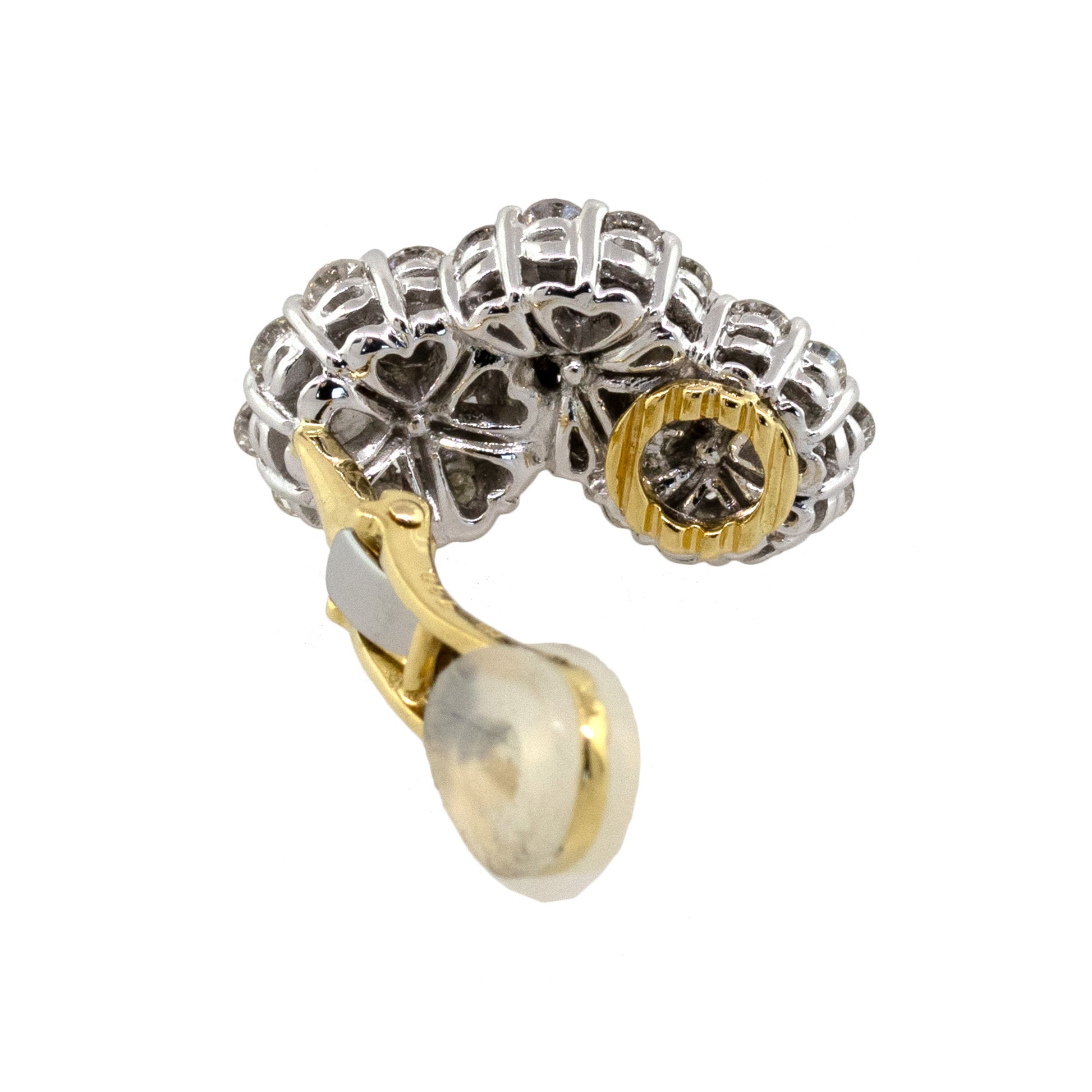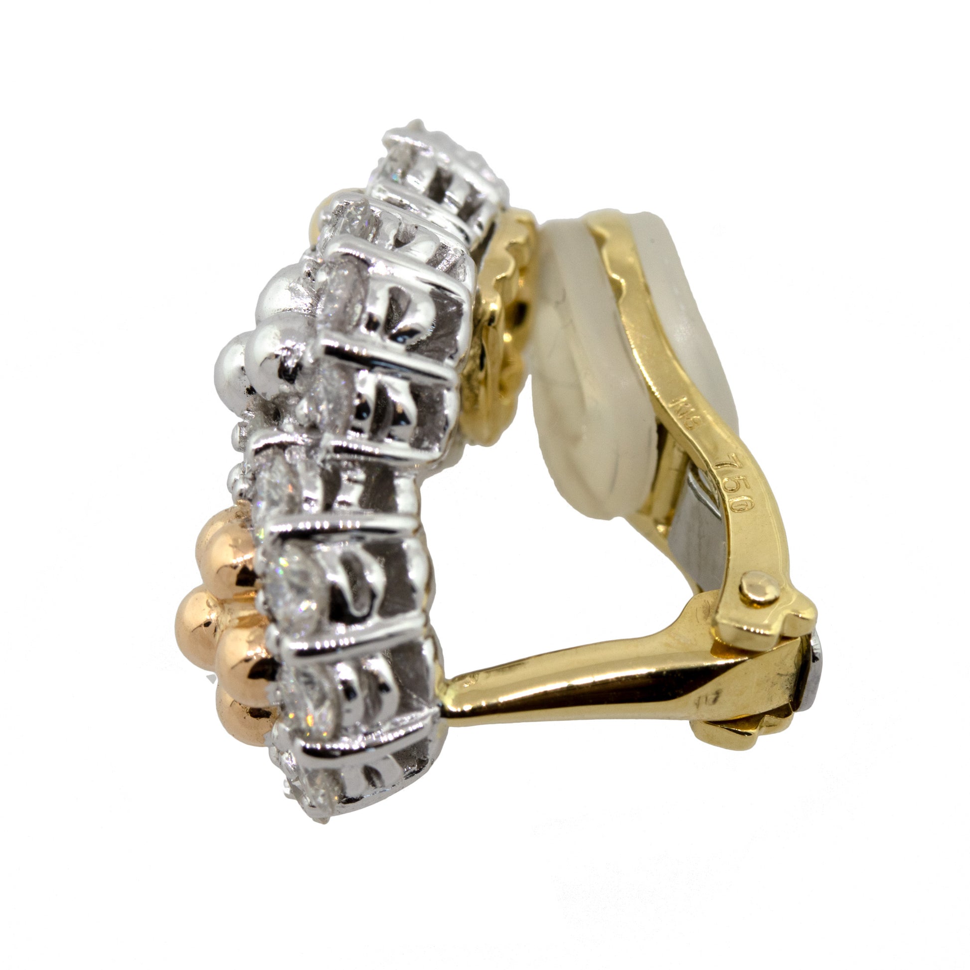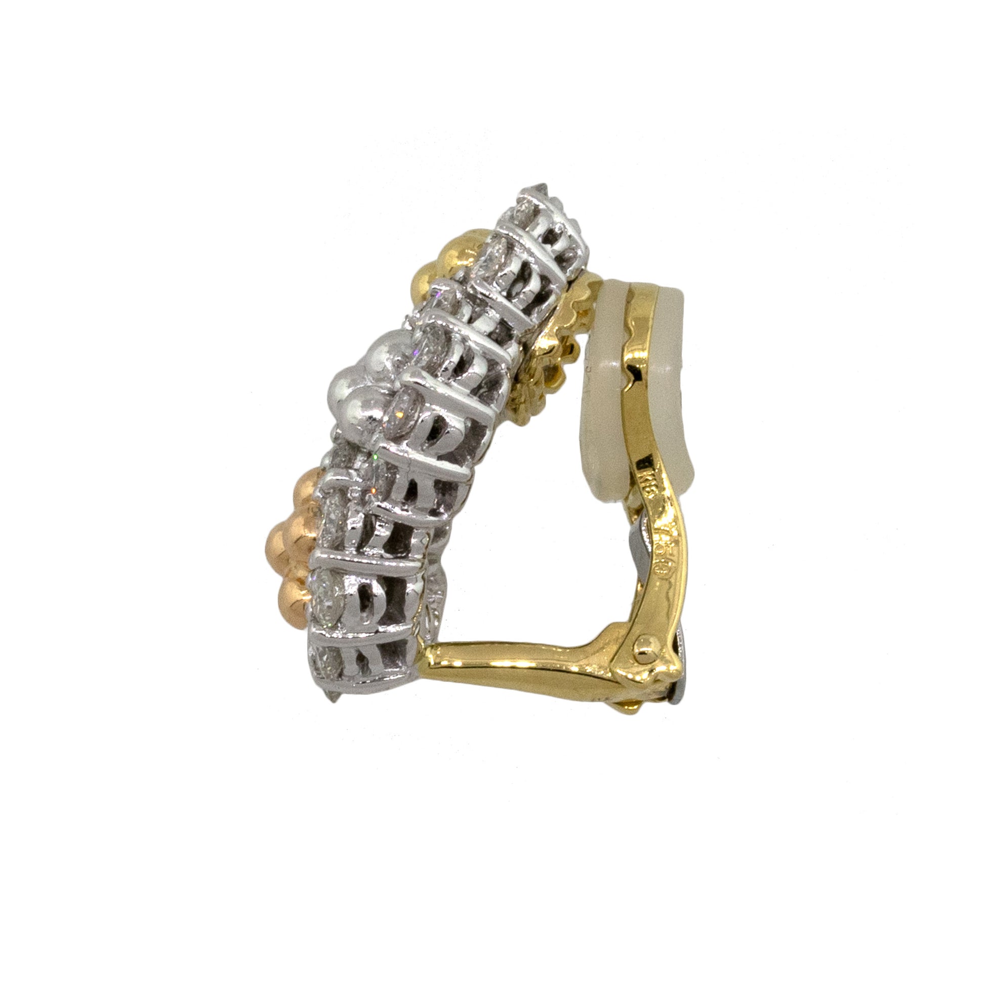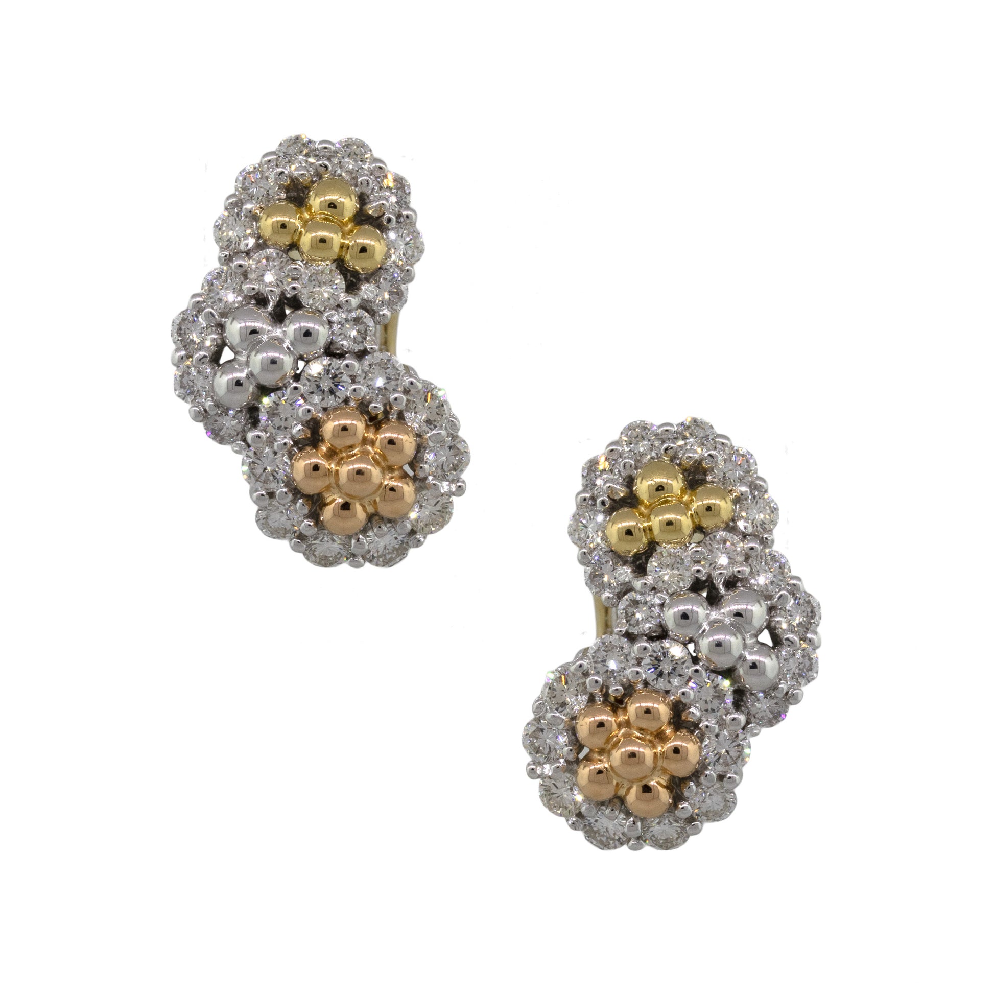 18k Tri-Tone Three Section Diamond Cluster Earrings
