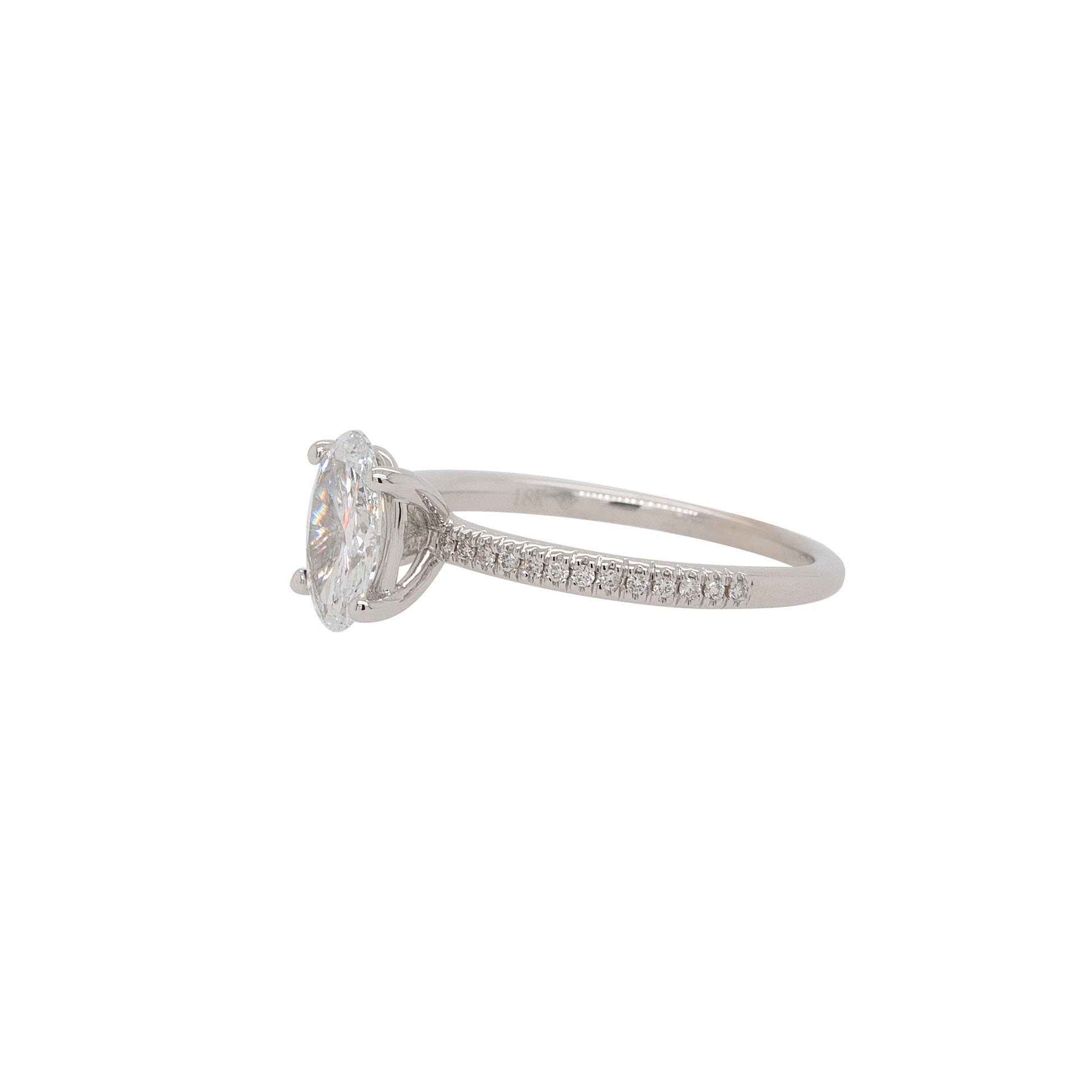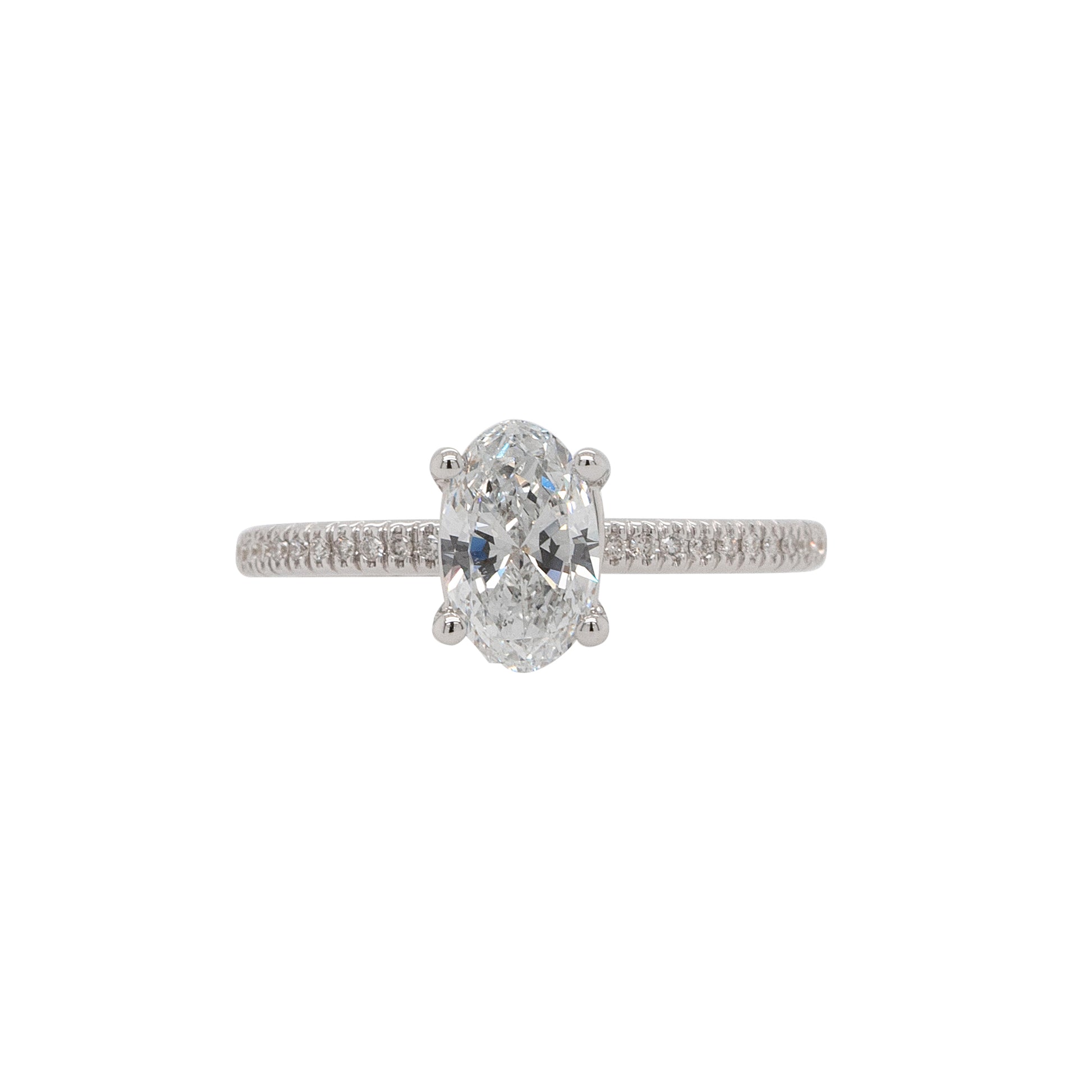18k White Gold 0.90ct GIA Oval Cut Halfway Diamond Engagement Ring