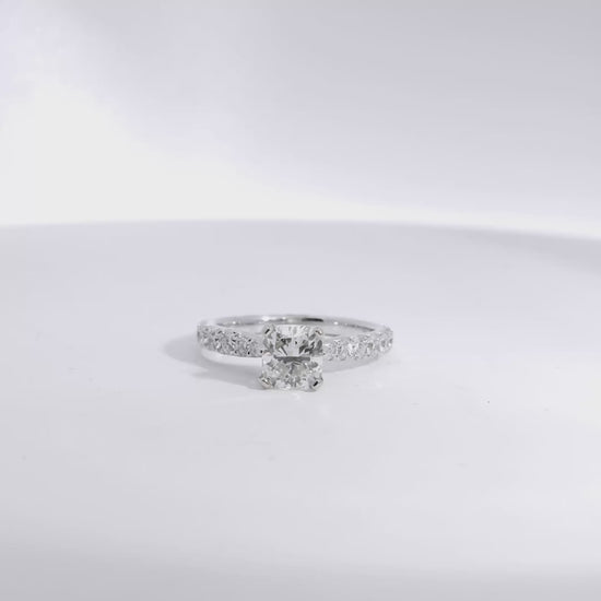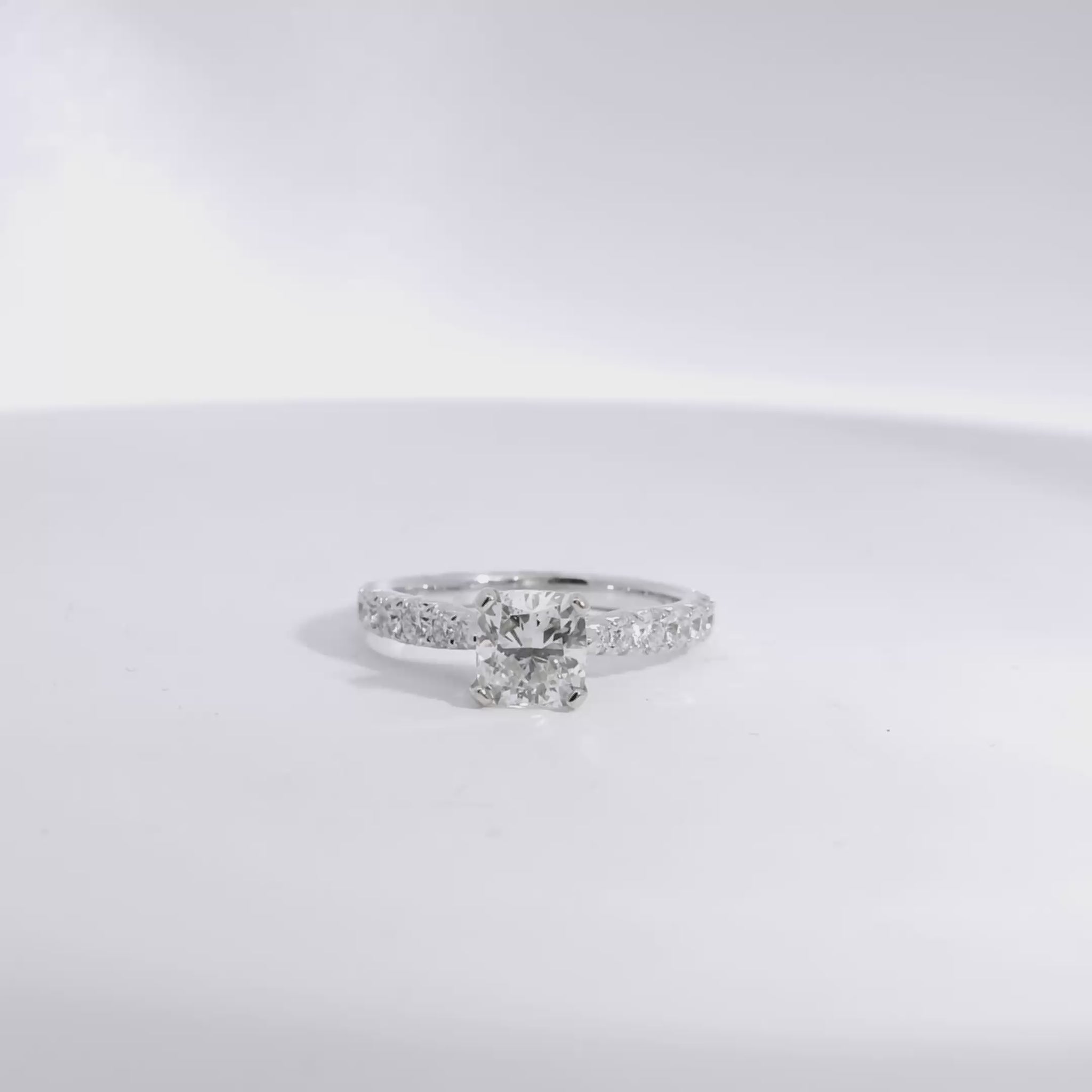 Experience timeless elegance with this stunning 18k white gold diamond engagement ring, showcasing a GIA certified 1.20ct cushion cut natural diamond at its center. Graded G in color and VS2 in clarity, the center stone offers exceptional brilliance, fire, and eye-clean beauty in a soft, romantic shape.