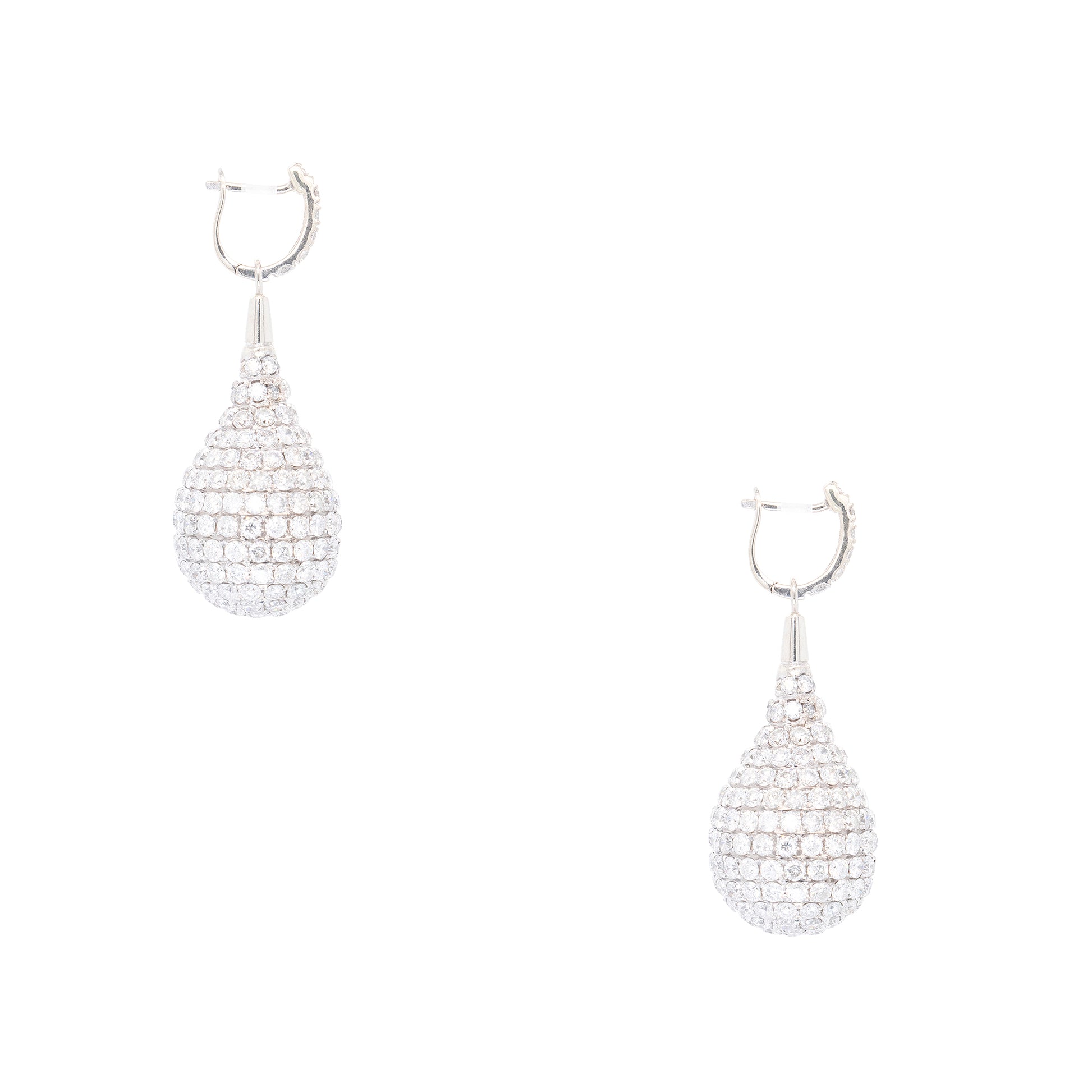 | Diamond Details | These earrings feature approximately 10.96 carats total weight of natural pave-set diamonds. The diamonds are carefully arranged to create brilliant sparkle with every movement. |