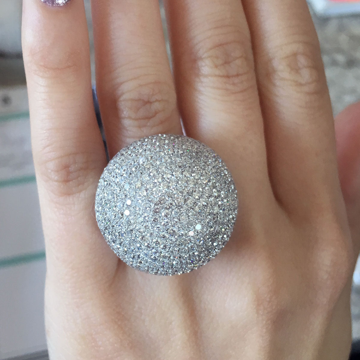 18k White Gold 13.2ctw Diamond Pave Dome Ring