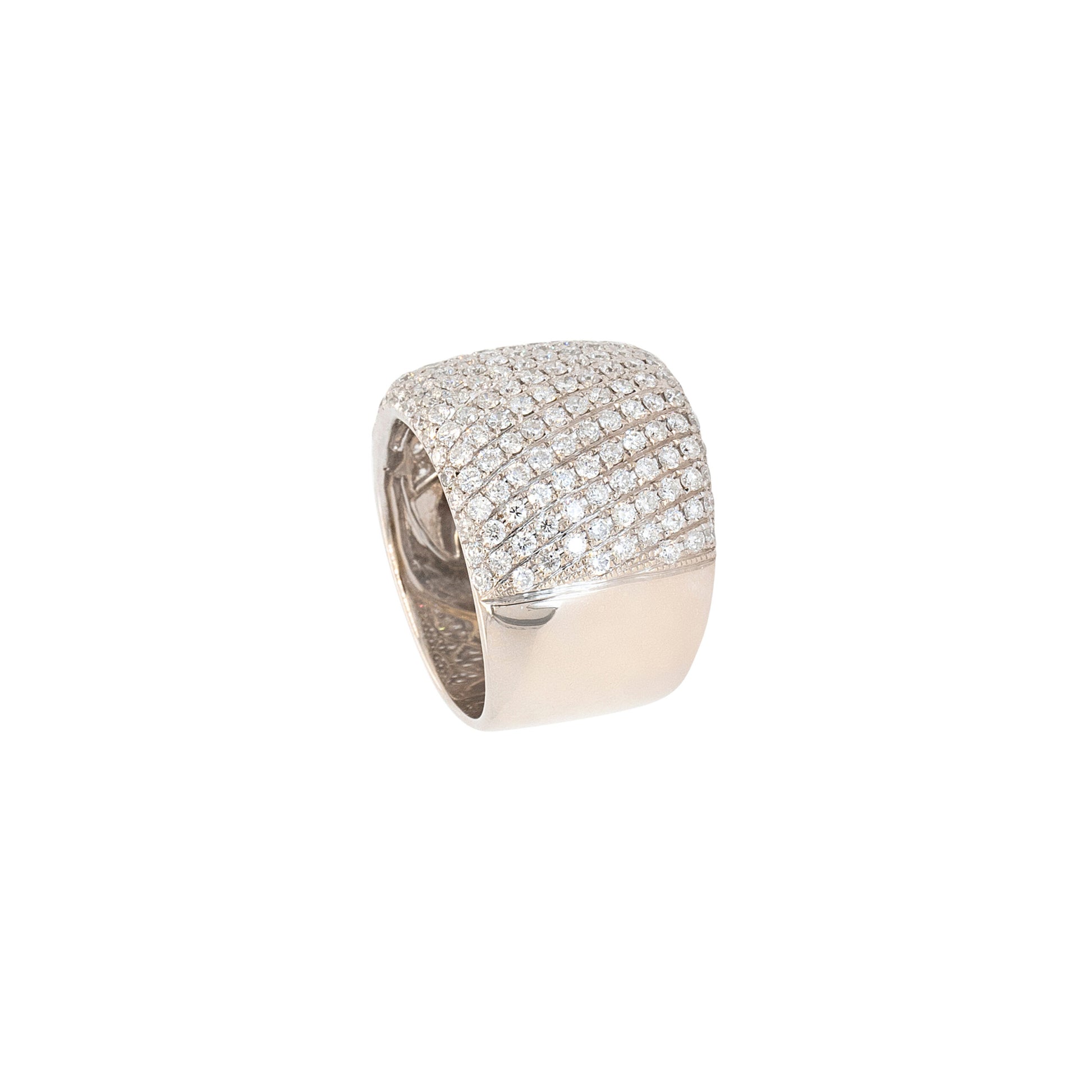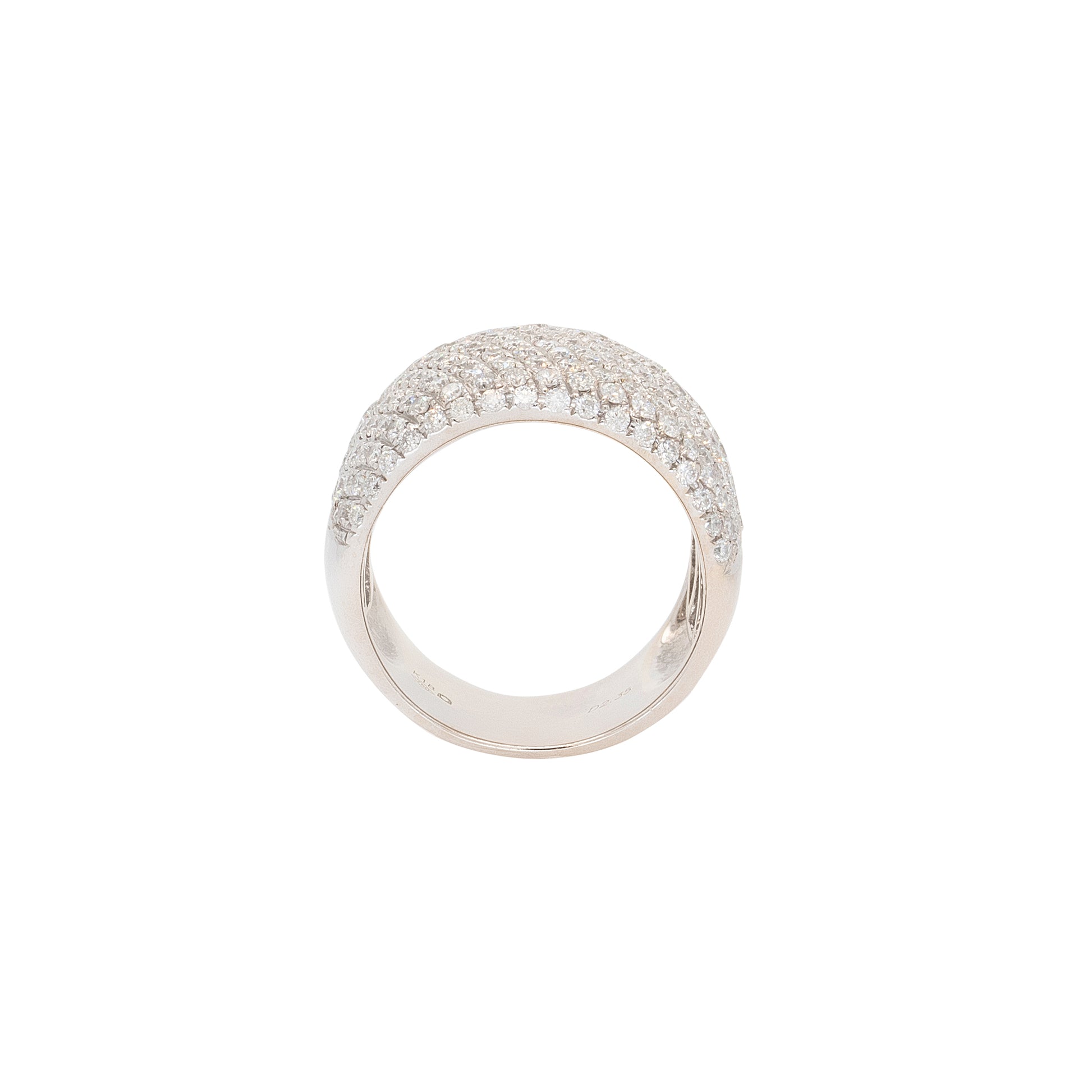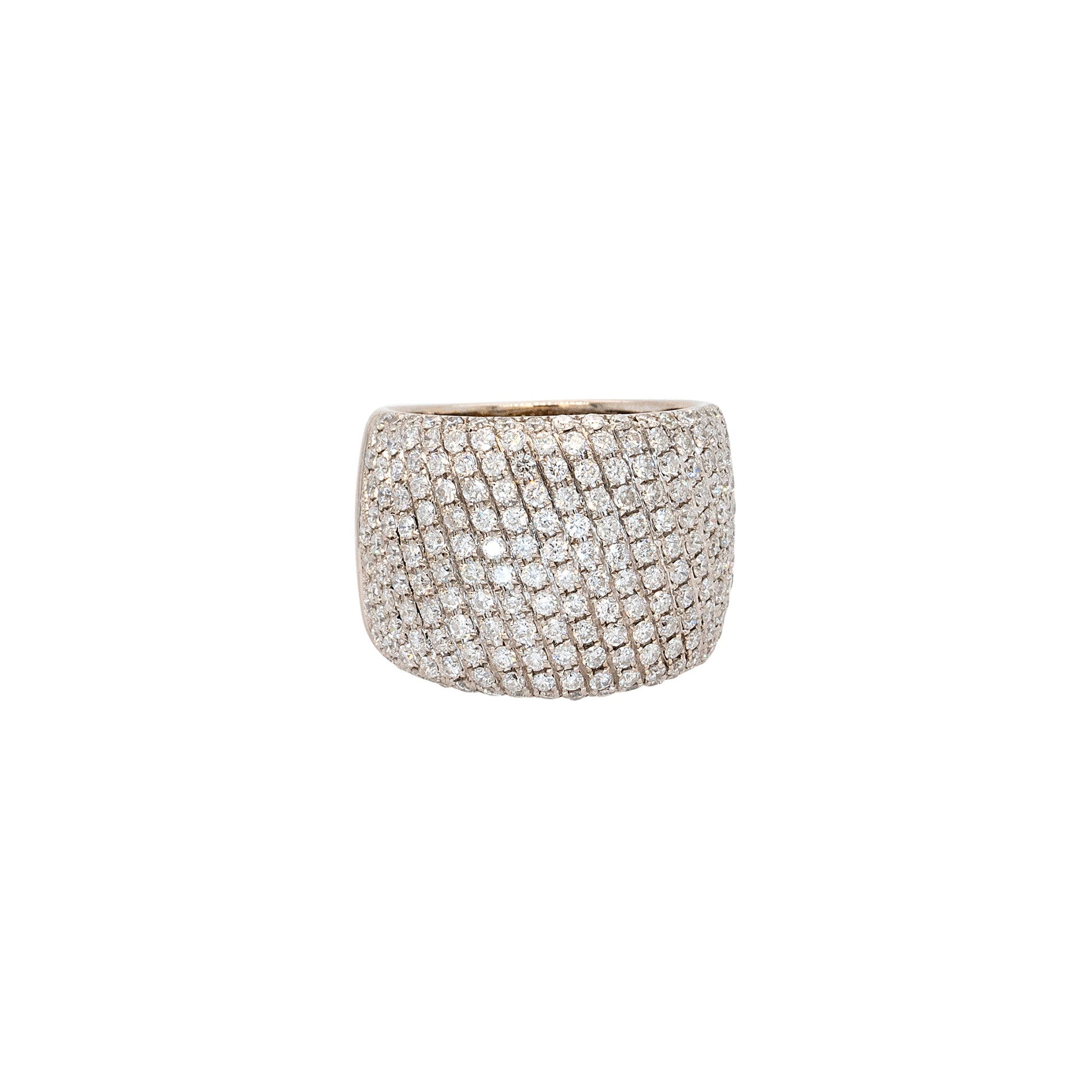 This stunning pave ring is crafted in polished 18k white gold and adorned with 2.35 carats of round brilliant diamonds. Its full-coverage diamond layout delivers maximum sparkle and timeless elegance from every angle.