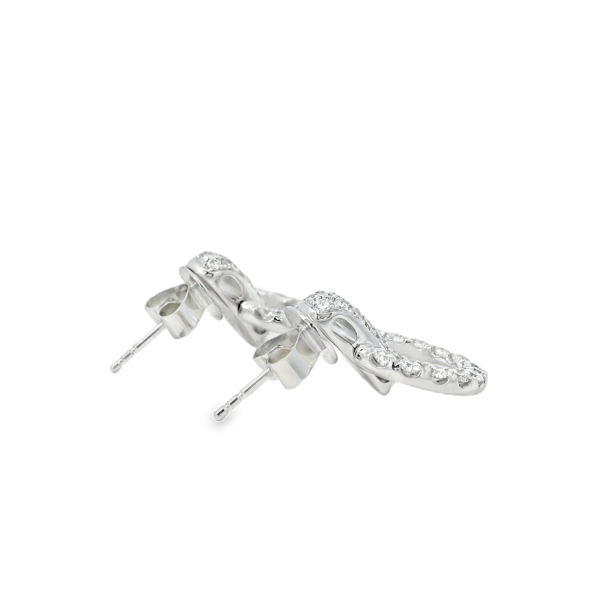 These elegant 18k White Gold Diamond Interlocking Dangle Earrings are in excellent condition and are ready to ship.