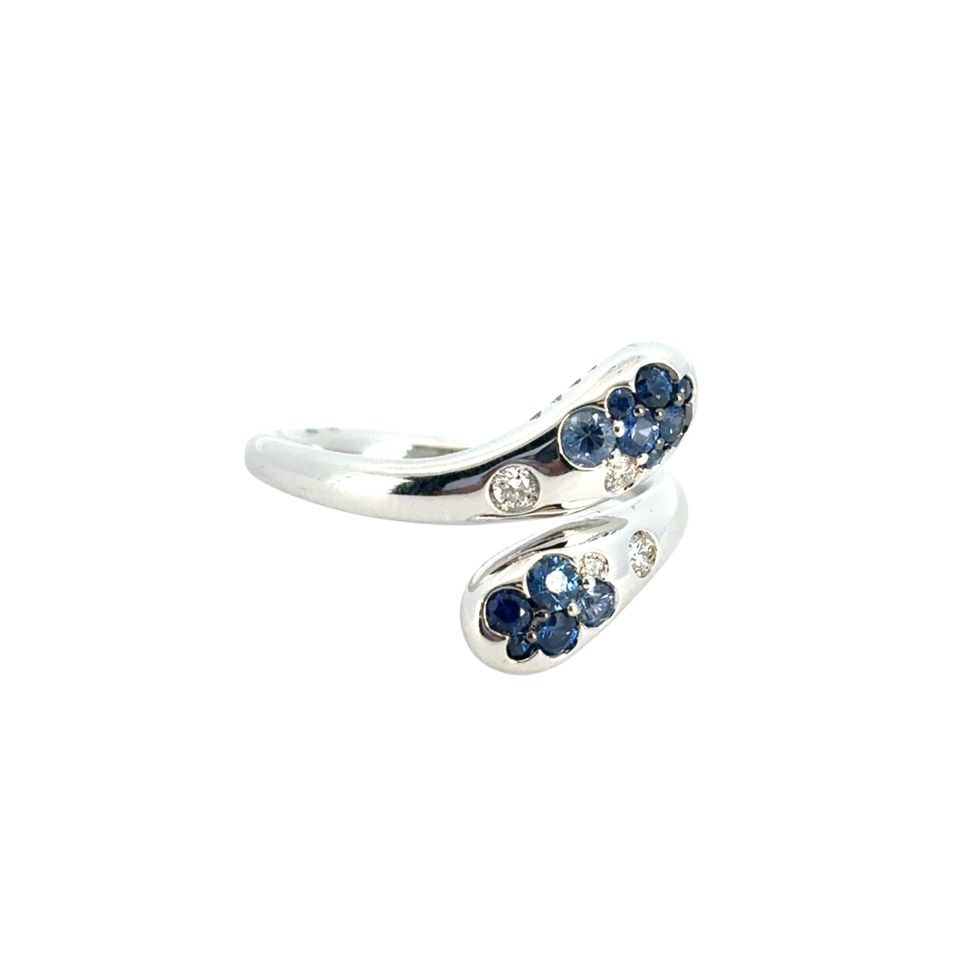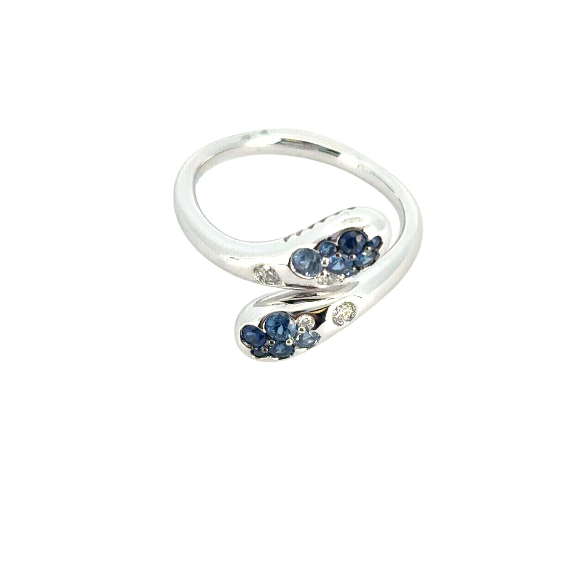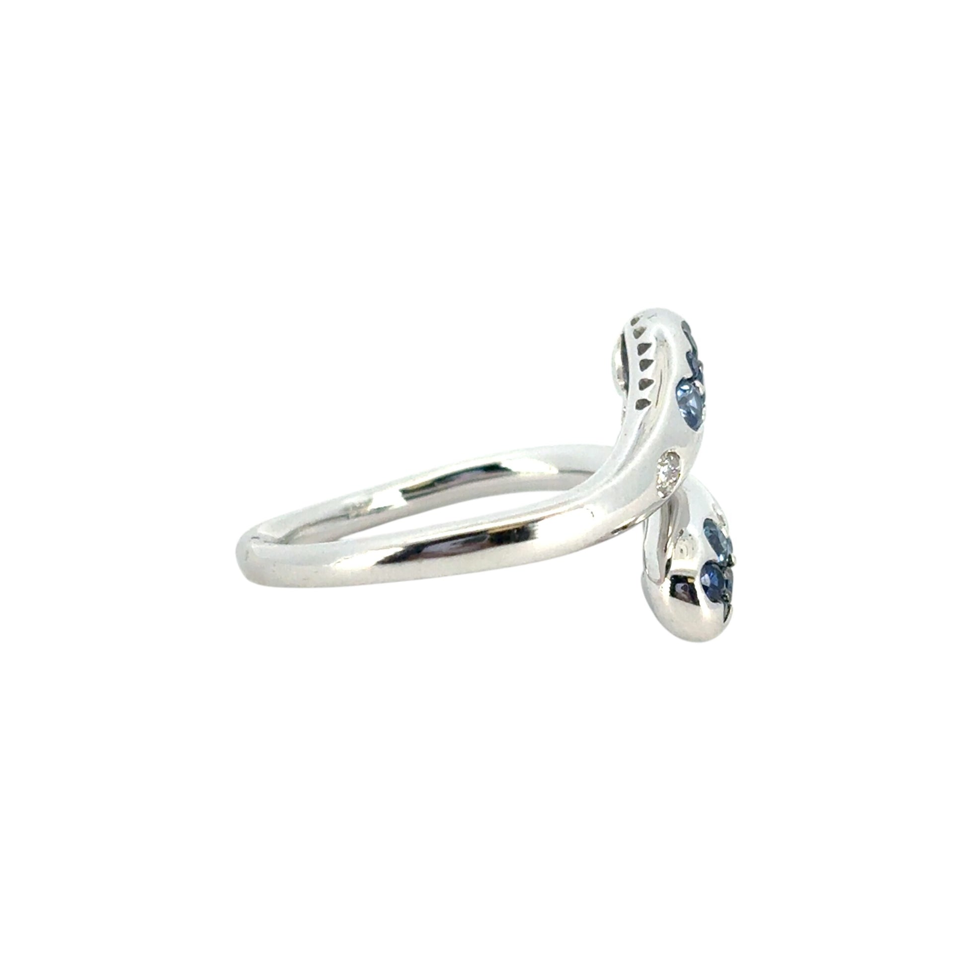 18k White Gold Blue Sapphire and Diamond Snake Ring
