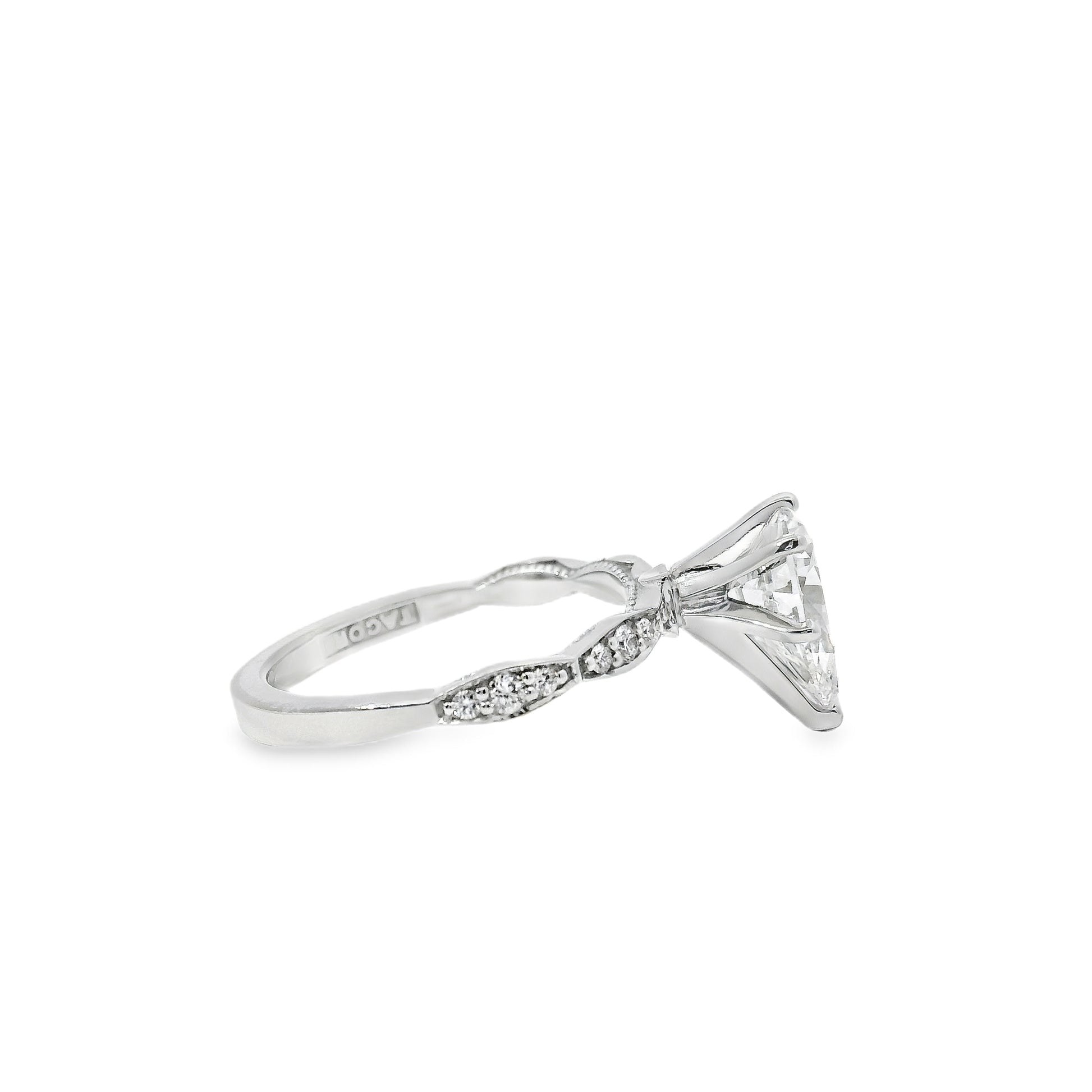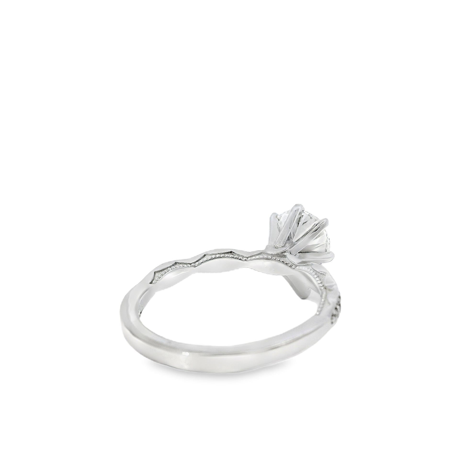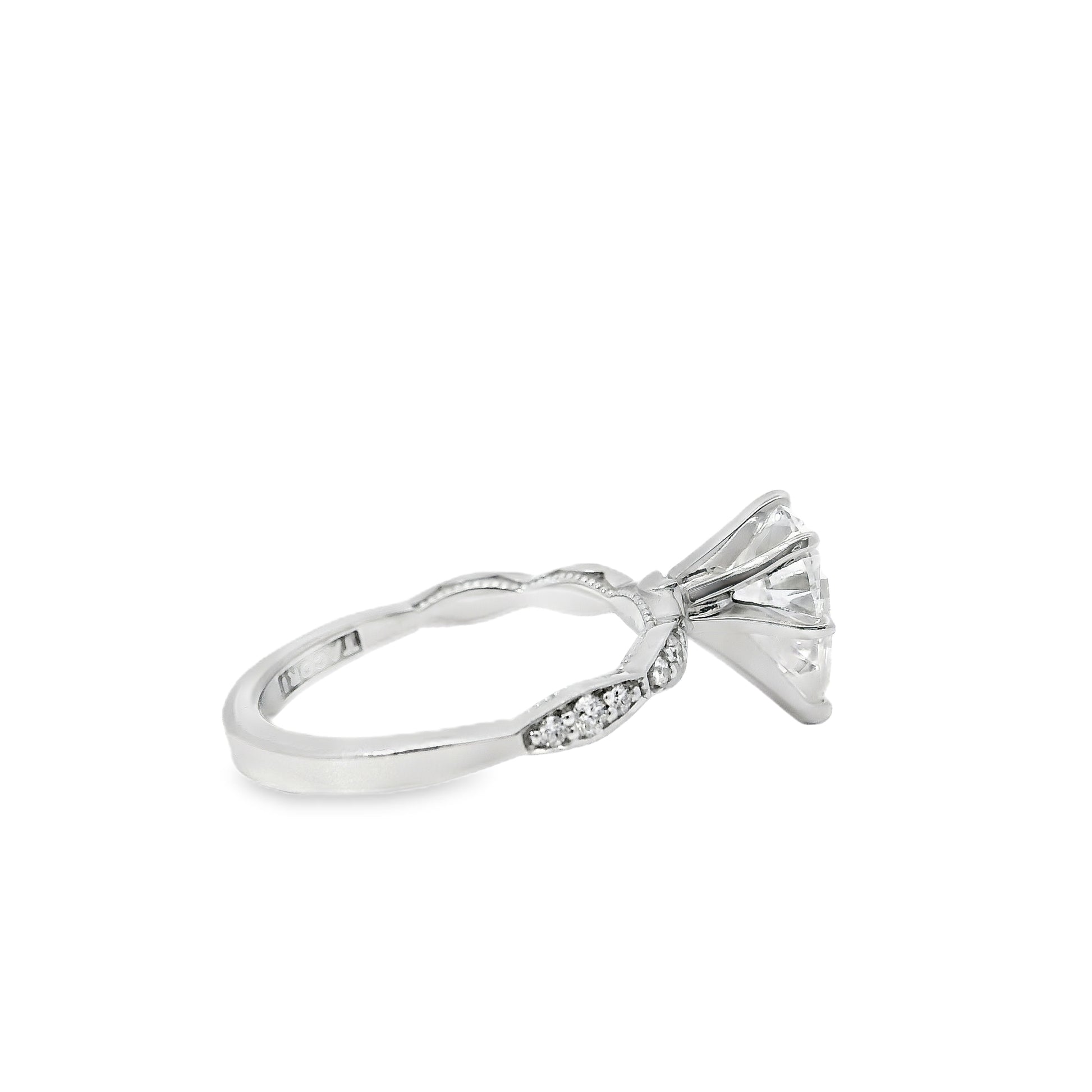 GIA certified and graded H in color and VS2 in clarity, the center stone combines bright, near-colorless beauty with impressive clarity and sparkle. Enhancing its radiance, 0.15ctw of natural accent diamonds add extra shimmer, creating a cohesive display of brilliance from every angle.