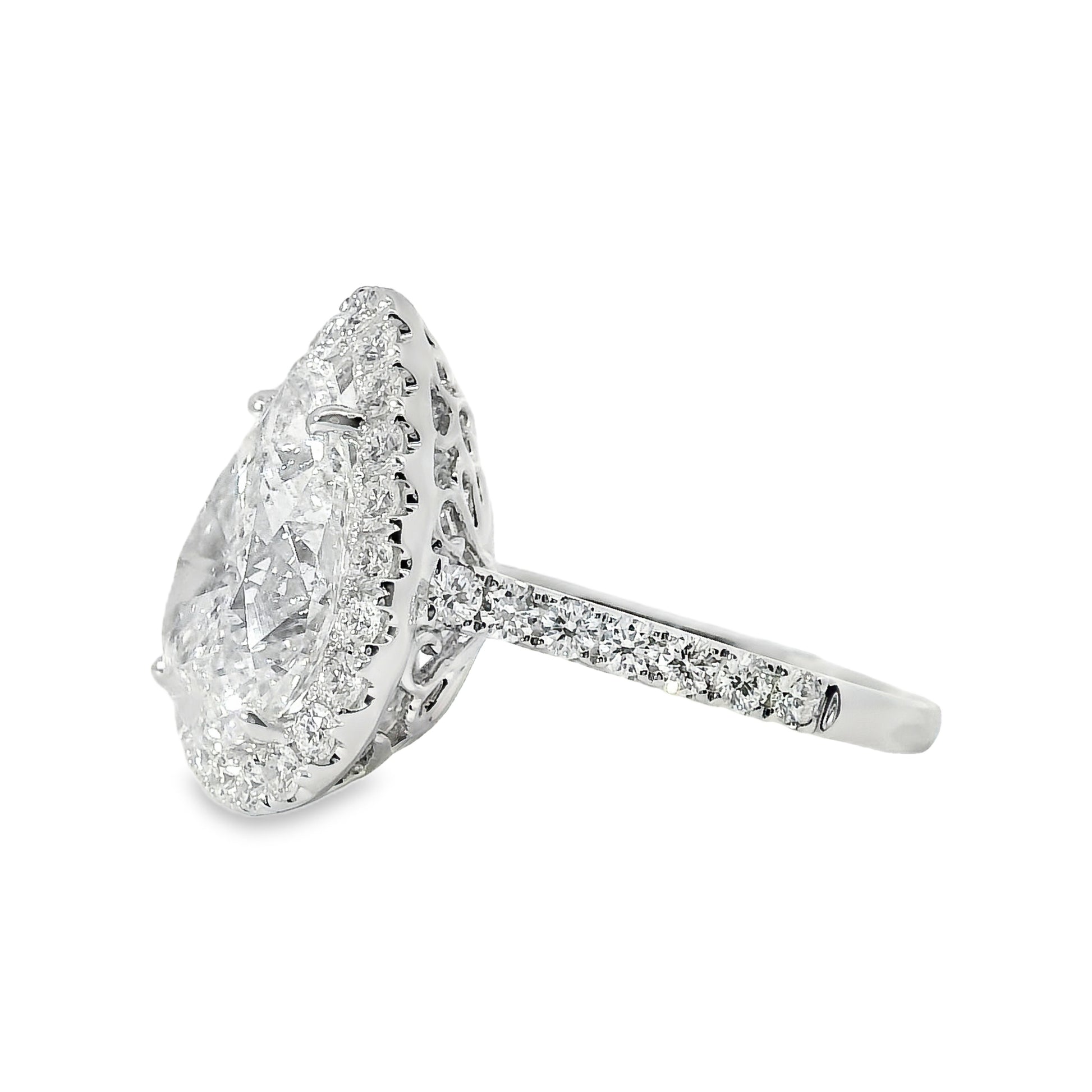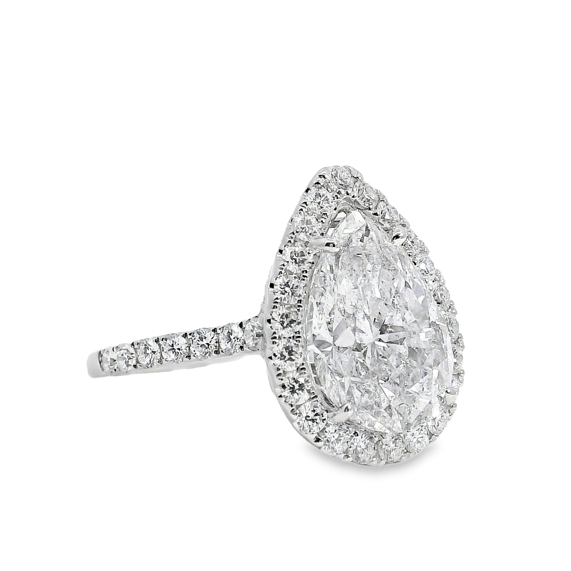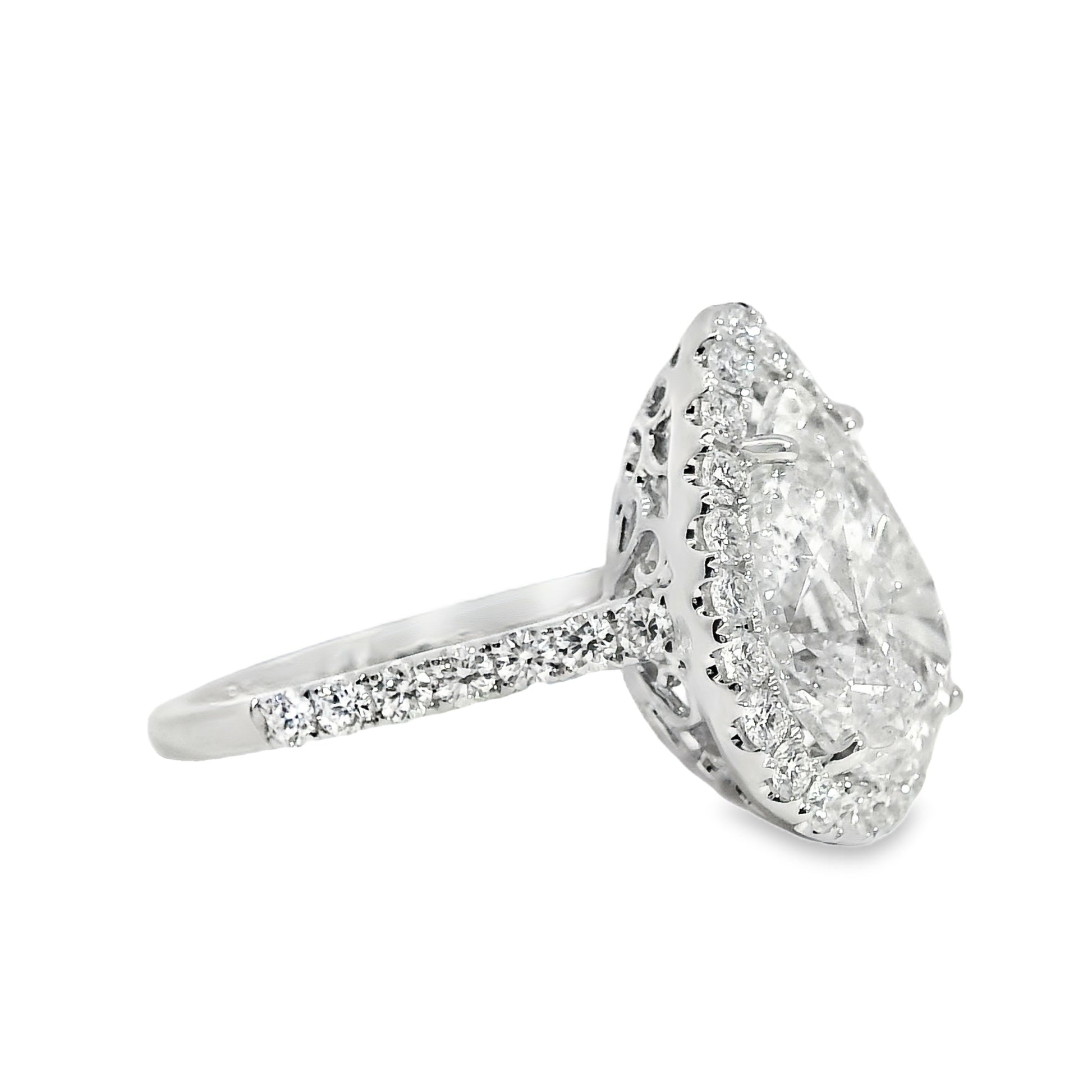 18k White Gold GIA Certified 4.02ct Pear Cut Diamond Engagement Ring