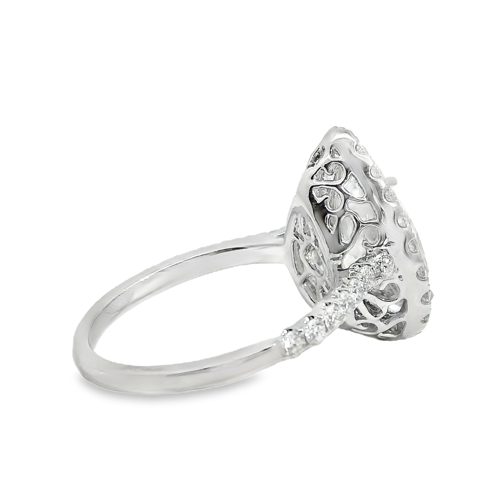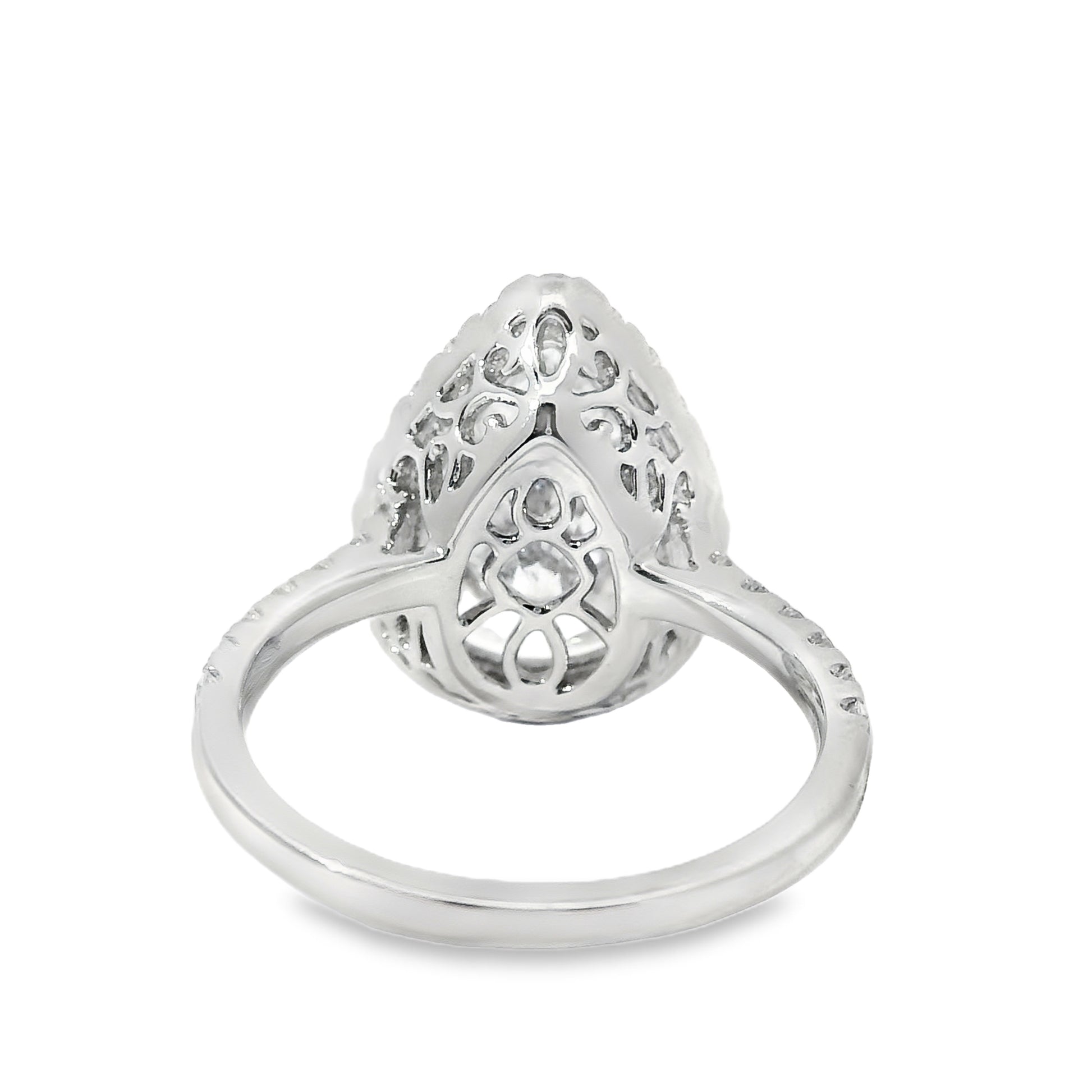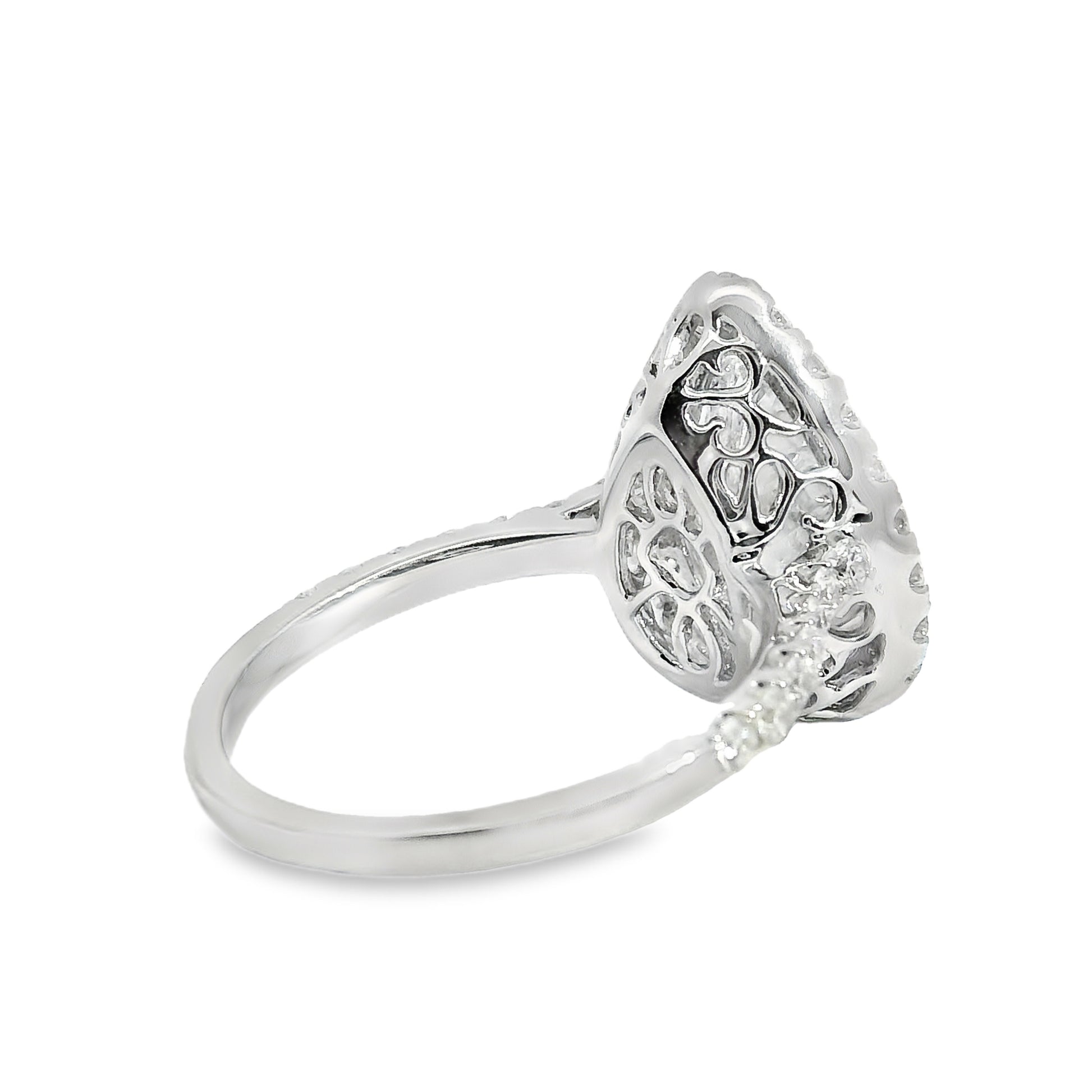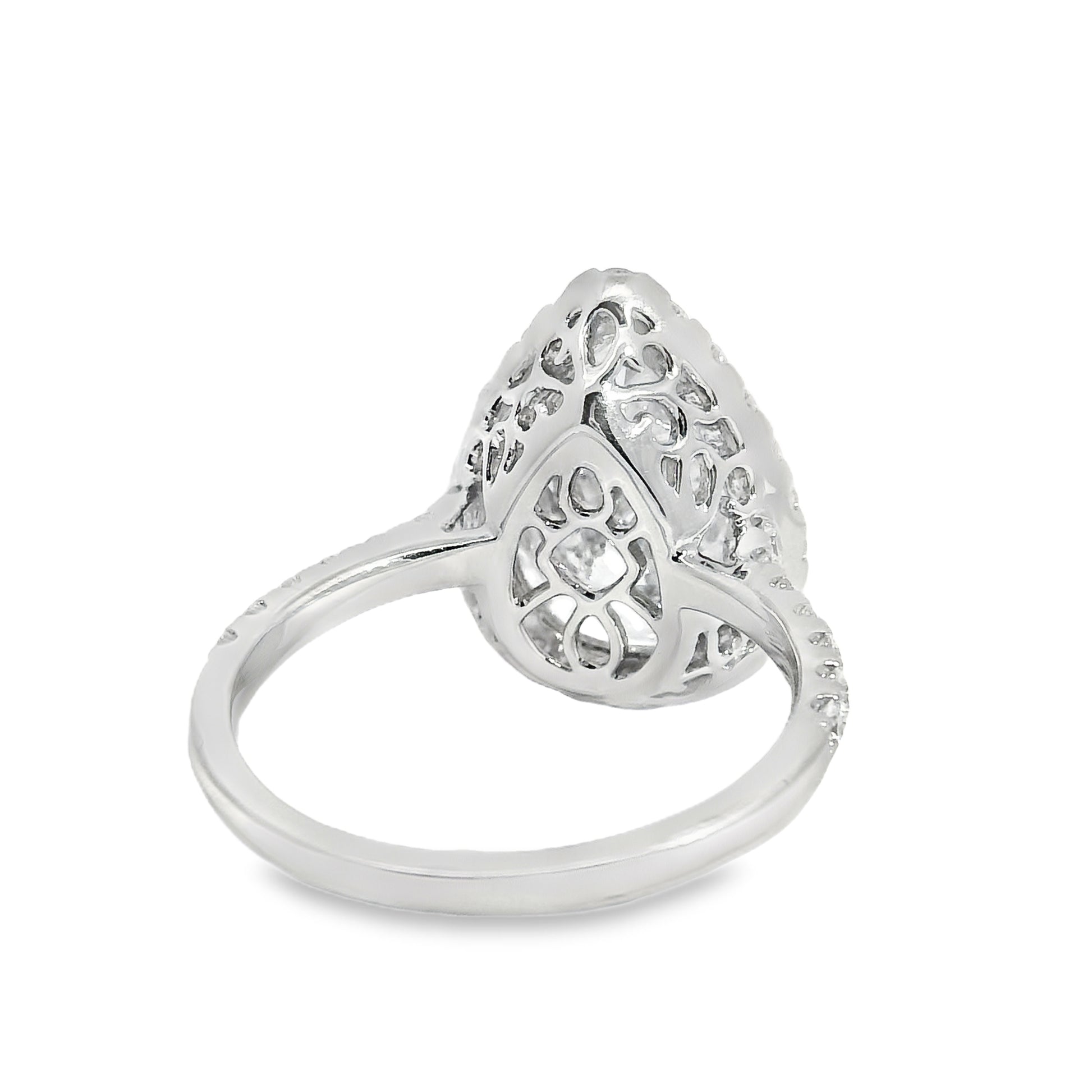 Expertly crafted in 18k white gold, the setting highlights the brilliance of the pear-shaped diamond with a sleek, modern design that exudes sophistication. Measuring 20.0mm x 16.7mm x 26.4mm and weighing 5.4 grams, this ring offers a balanced feel—substantial yet comfortable for everyday wear.